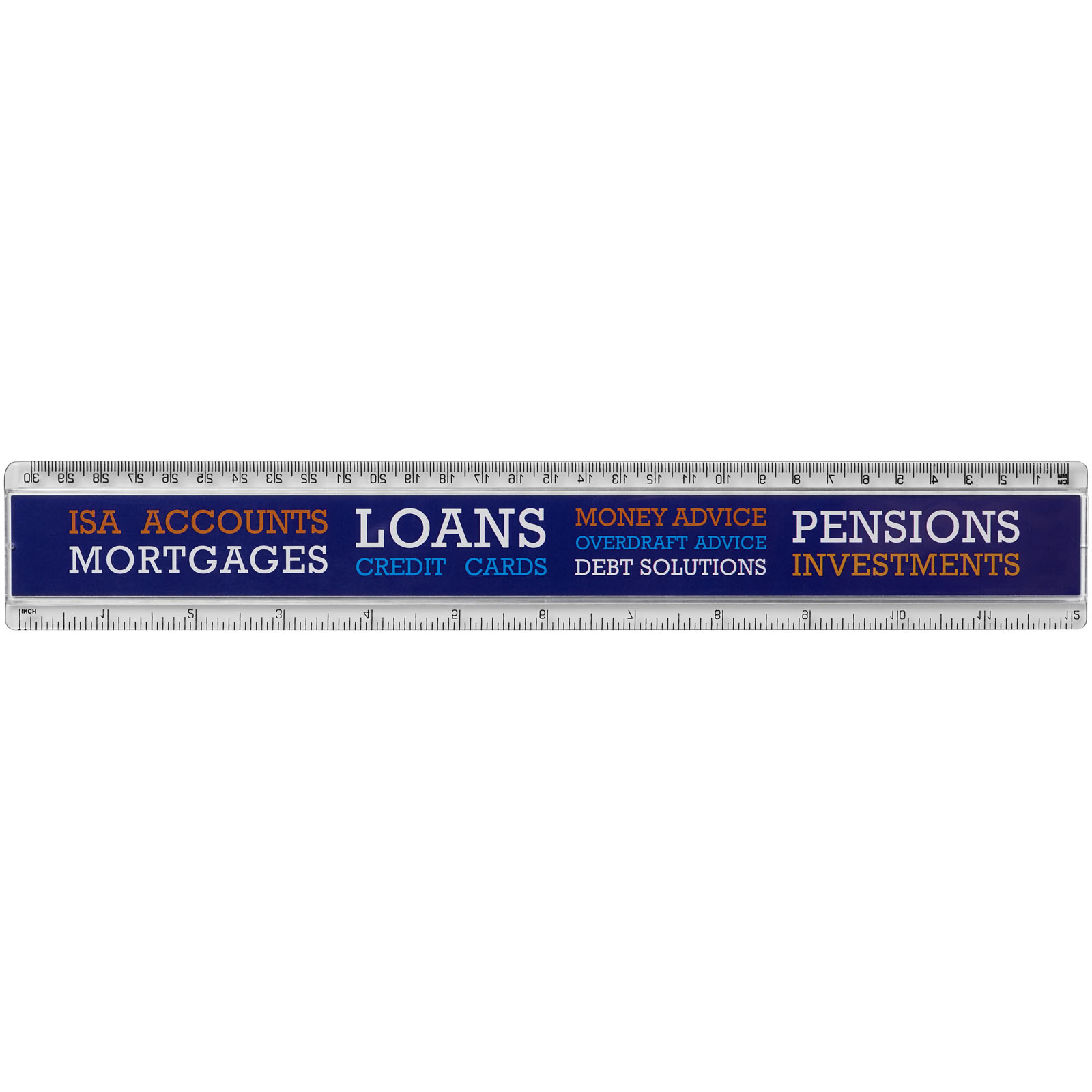 Linijka Ellison o długości 30 cm wykonana z tworzywa sztucznego z papierową wkładką