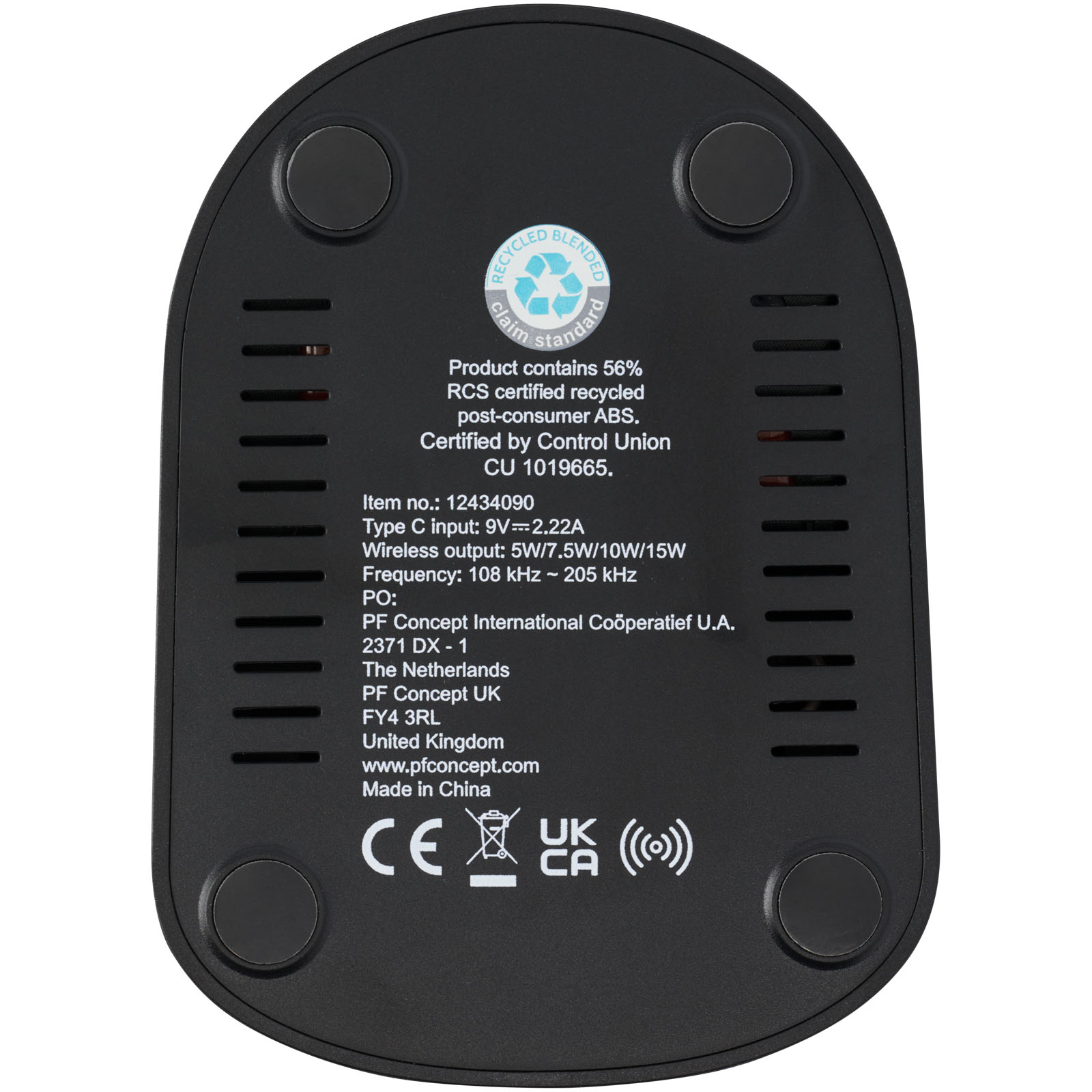 Loop bezprzewodowa podstawka ładująca o mocy 15 W z podwójną cewką wykonana z tworzyw sztucznych pochodzących z recyklingu z certyfikatem RCS, sprawdzi się na każdym biurku lub stoliku nocnym. Podstawka jest wyposażona w gumową, antypoślizgową podstawę, która zapobiega zsuwaniu się urządzenia. Dzięki podwójnym cewkom zapewnia szybkie zasilanie kompatybilnego urządzenia bezprzewodowego zarówno w orientacji pionowej, jak i poziomej. Kompatybilna ze wszystkimi urządzeniami obsługującym technologię Qi (iPhone 8 lub nowszy oraz urządzenia z systemem Android obsługujące ładowanie bezprzewodowe). Wbudowana funkcja FOD (ang. Foreign Object Detection — wykrywanie obcych obiektów) pozwala zidentyfikować niepożądane obiekty i zapewnić płynny przebieg procesu ładowania. Dostarczana z instrukcją obsługi i kablem ładującym USB-A do USB typu C o długości 100 cm i zapakowana w pudełko z papieru Kraft pochodzącego w 100% z recyklingu. Niektóre pokrowce/obudowy na telefon mogą wpływać na możliwość ładowania bezprzewodowego.