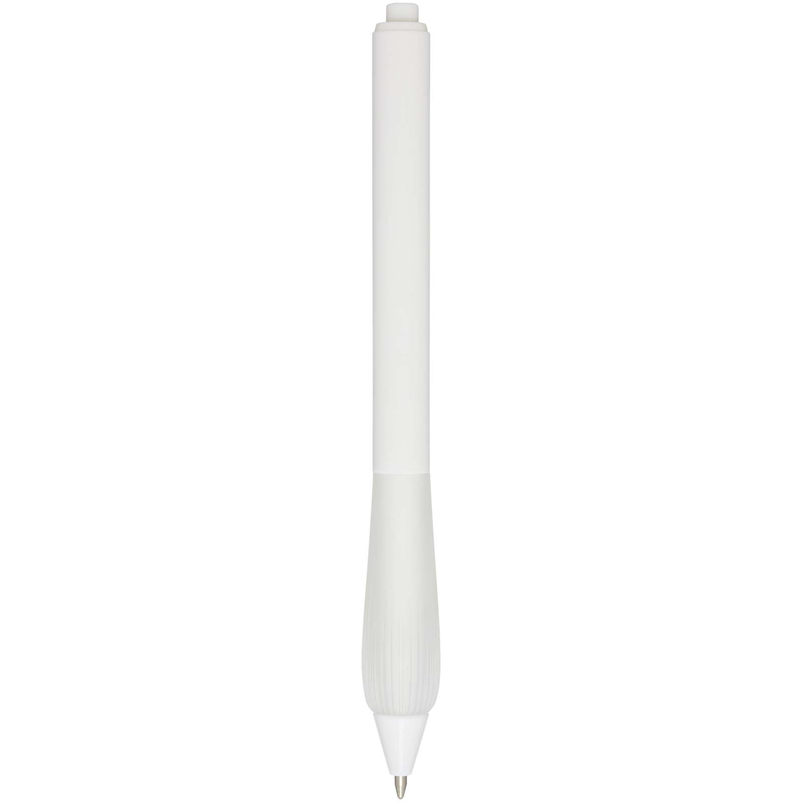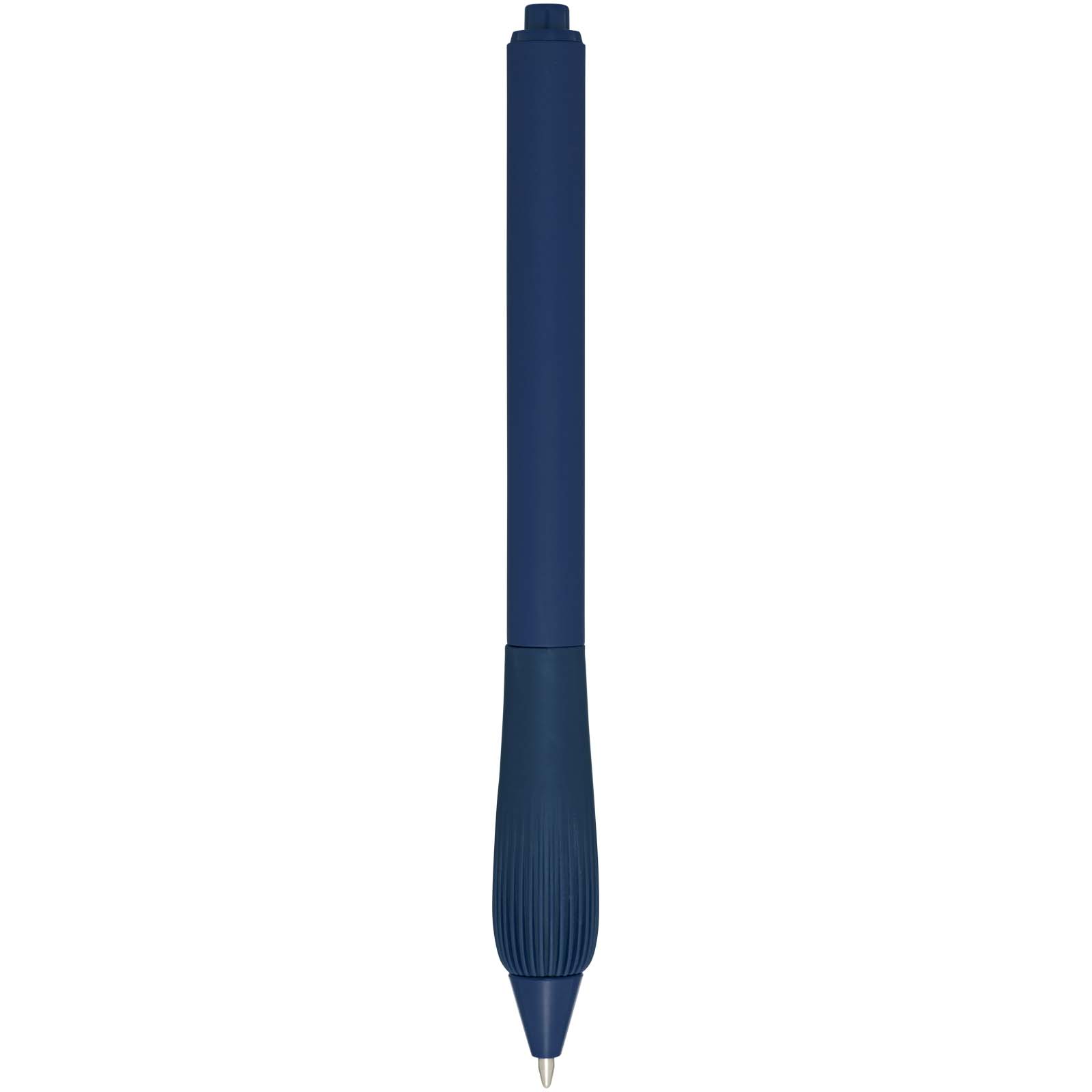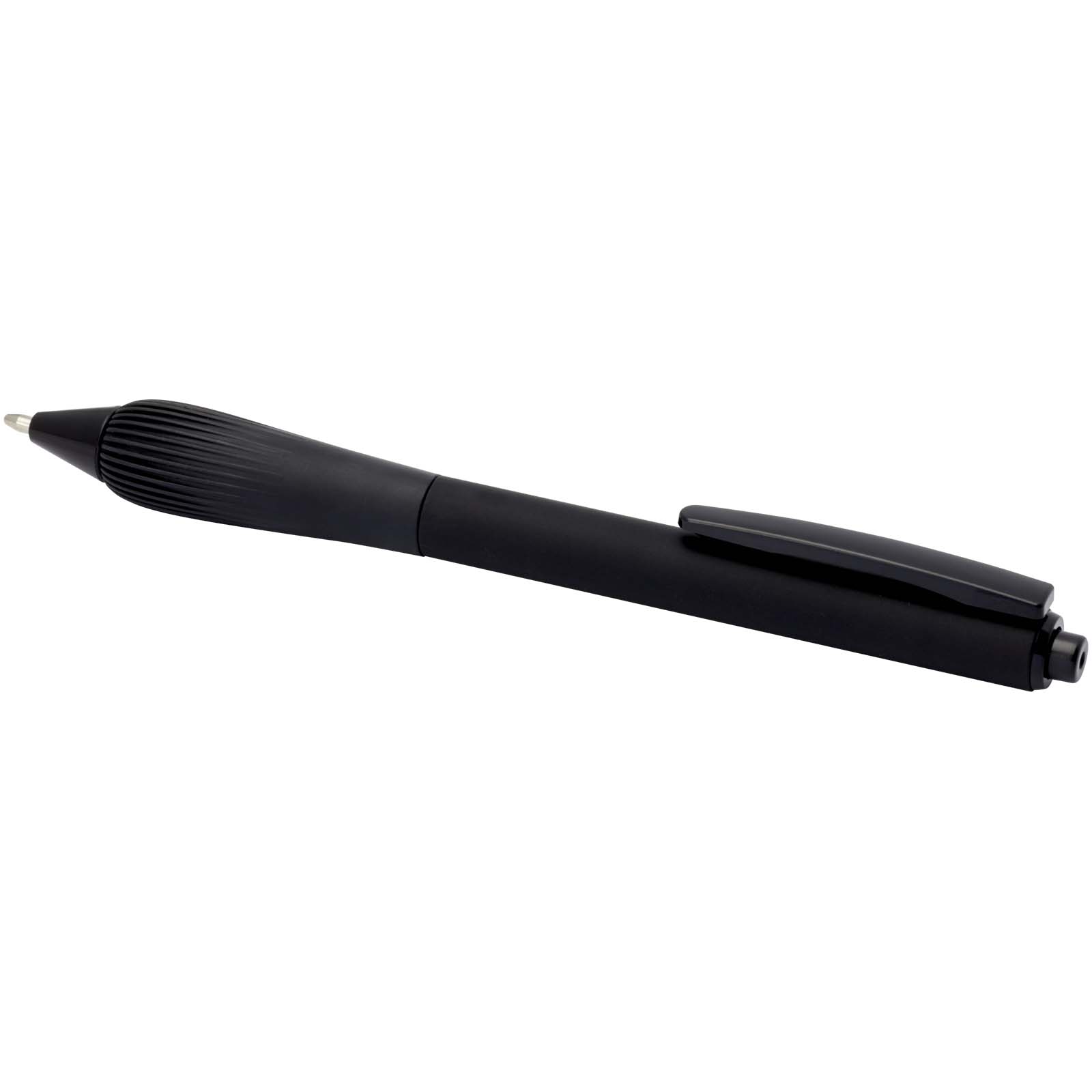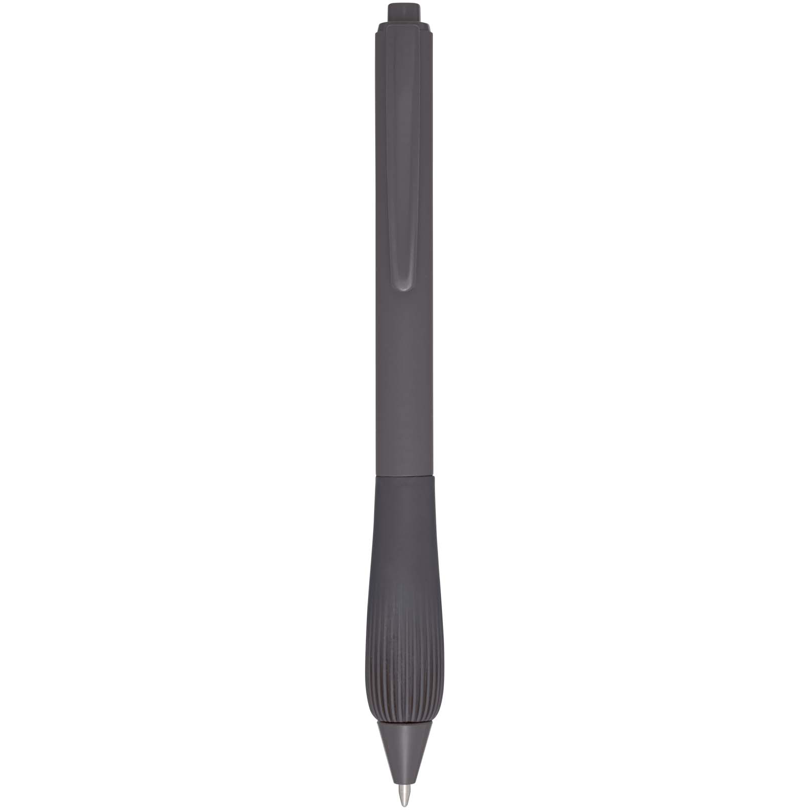 Długopis z tworzyw sztucznych pochodzących z recyklingu, z gumowanym korpusem i uchwytem wykonanym z TPR. Kolor tuszu: Czarny. Żywotność: 1000 metrów. Rozmiar stalówki: 1,0 mm.