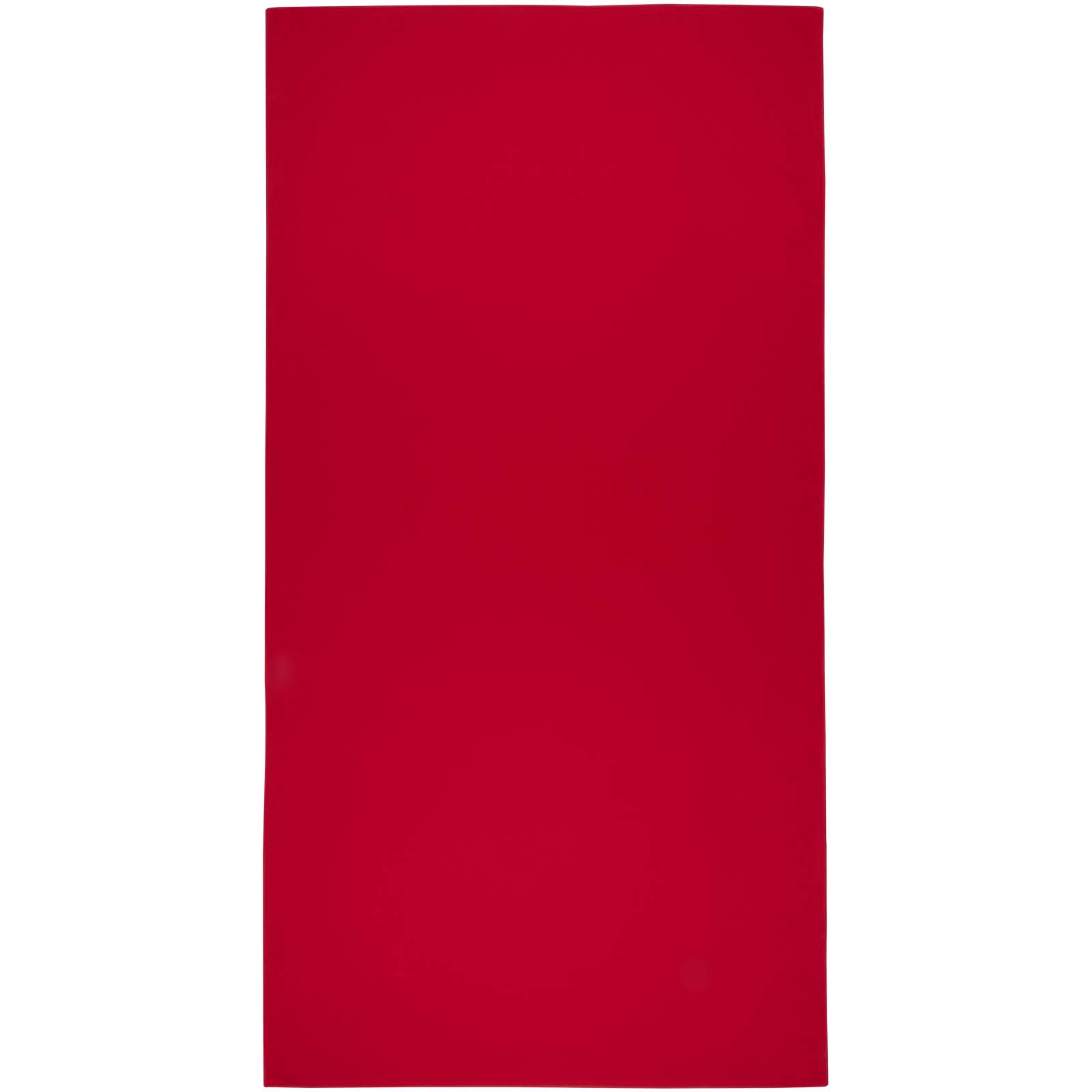 Ręcznik sportowy Lucas jest wykonany w 100% z poliestru pochodzącego z recyklingu (RPET), dzięki czemu ma miękką i chłonną powierzchnię, idealną do treningu lub aktywności na świeżym powietrzu. Gramatura 140 g/m² zapewnia równowagę między wytrzymałością a lekkością i wygodą. Ręcznik jest wyposażony w praktyczny plastikowy sznurek, który zabezpiecza zarówno ręcznik, jak i etui, ułatwiając przenoszenie i przechowywanie. Dostarczany w etui z włókniny (16 x 21 cm), które jest również wykonane w 100% z poliestru pochodzącego z recyklingu. Wymiary ręcznika: 70 x 140 cm.