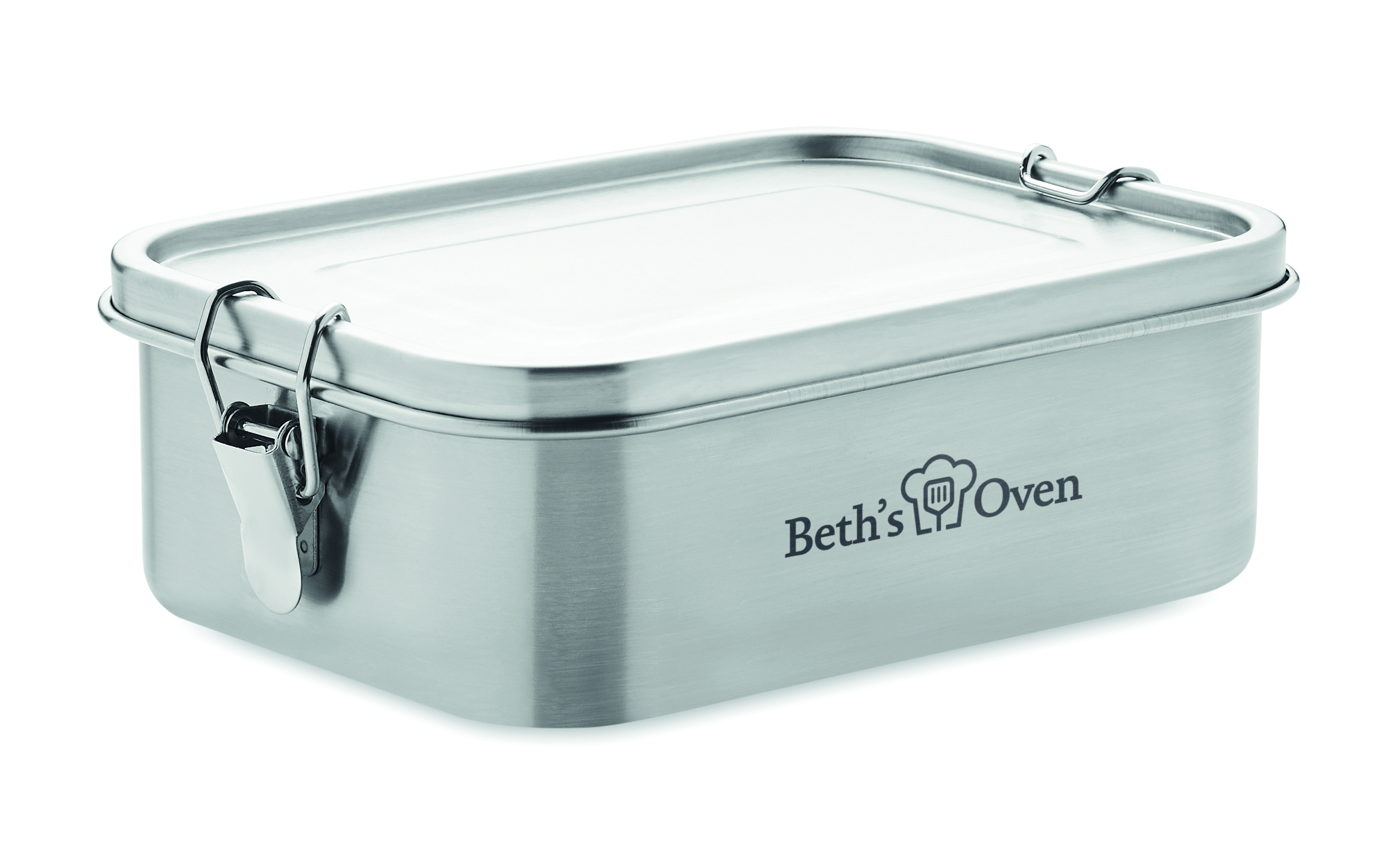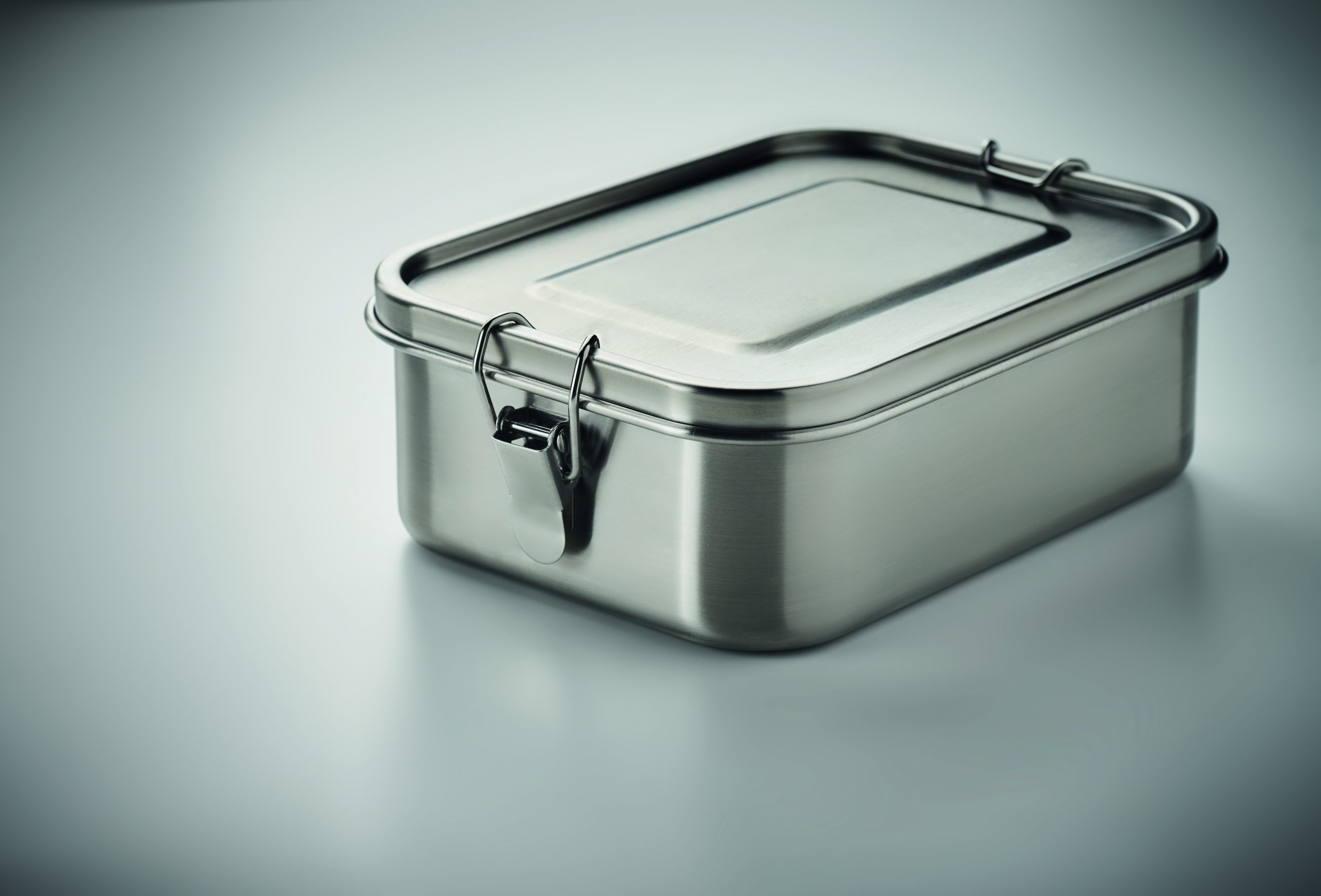Pudełko na lunch ze stali nierdzewnej z mocnymi i bezpiecznymi klamrami bocznymi. Zawiera wewnętrzną przegródkę. Pojemność: 1200 ml.
