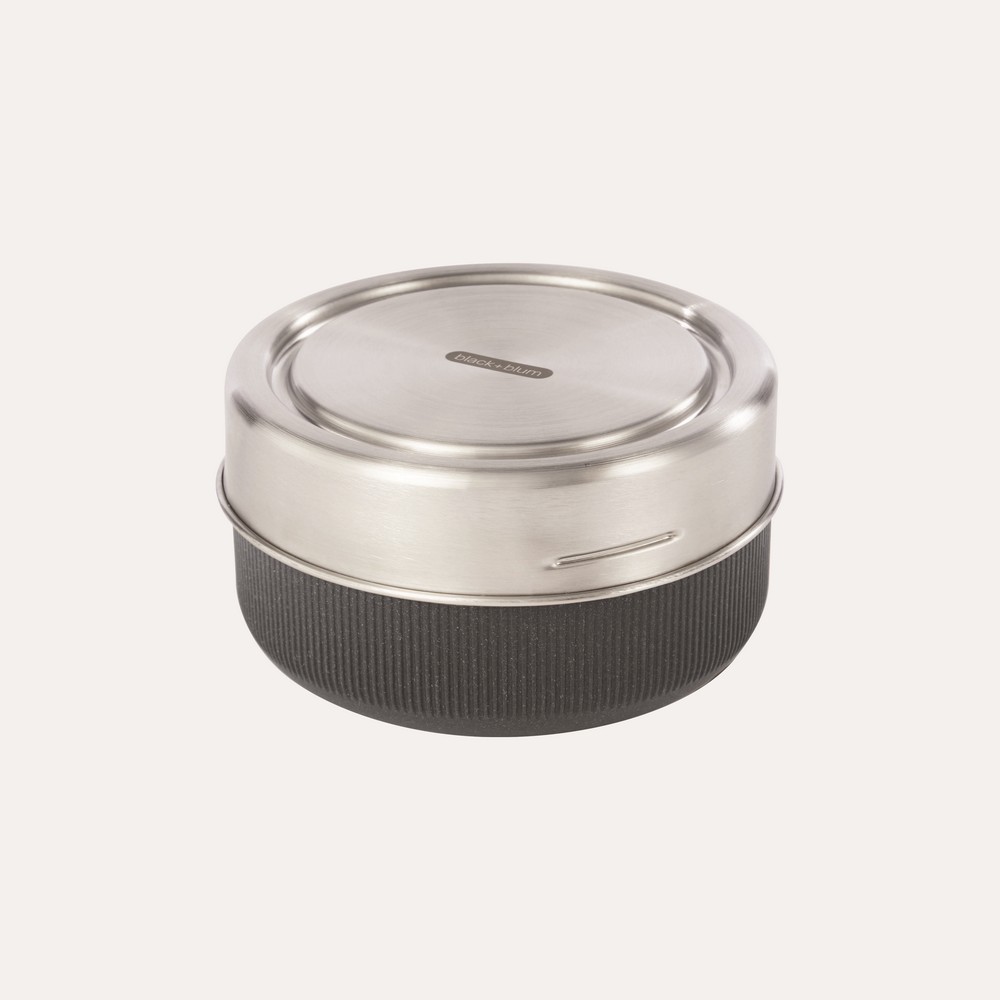 Pudełko śniadaniowe 750 ml wykonane ze szkła, podstawa pojemnika wykonana jest z polipropylenu połączonego z włóknem drzewnym, co zapewnia ochronę szklanej miski i ułatwia trzymanie po podgrzaniu, można myć w zmywarce