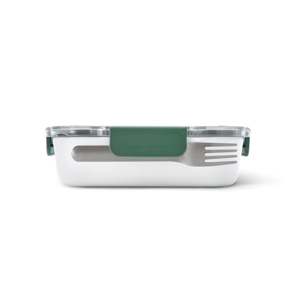 Pudełko śniadaniowe, zawiera wewnętrzny pojemnik, pojemnik na sos, widelec ze stali nierdzewnej, można myć w zmywarce i używać w kuchence mikrofalowej