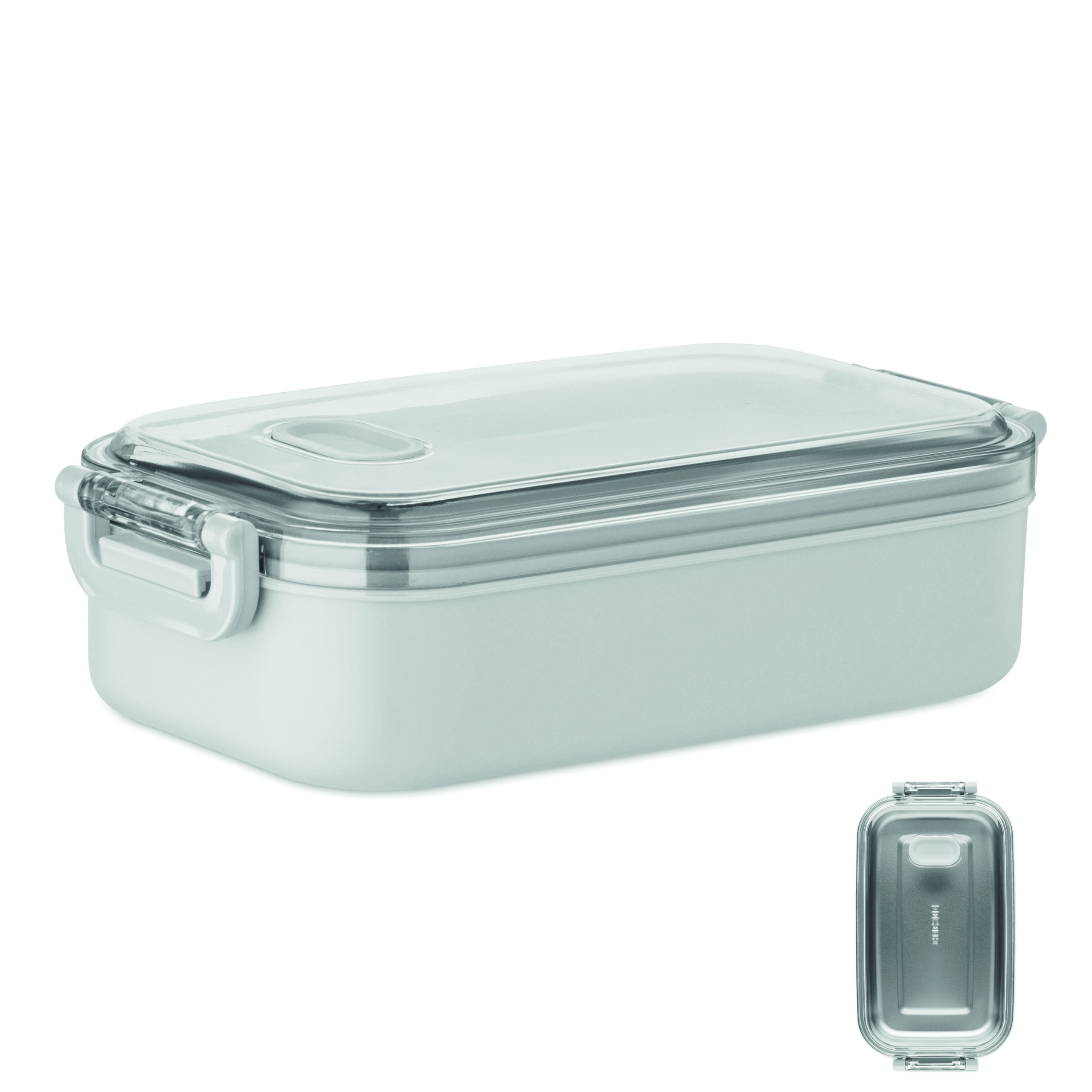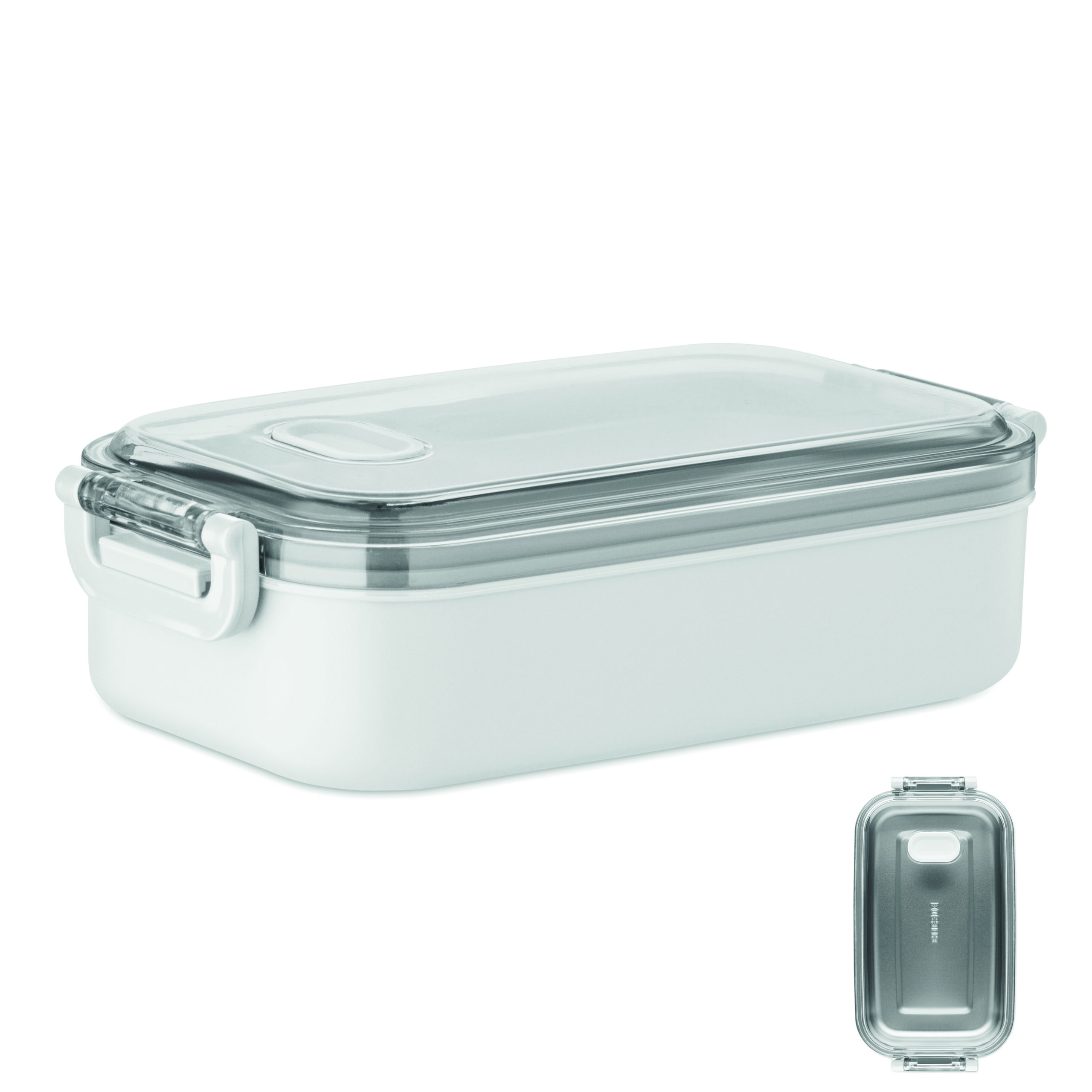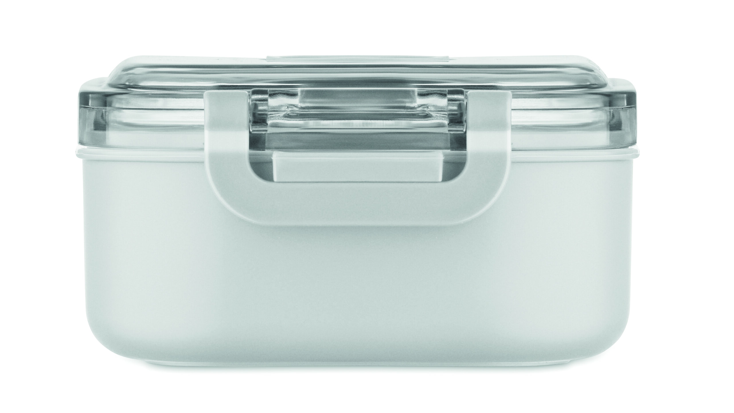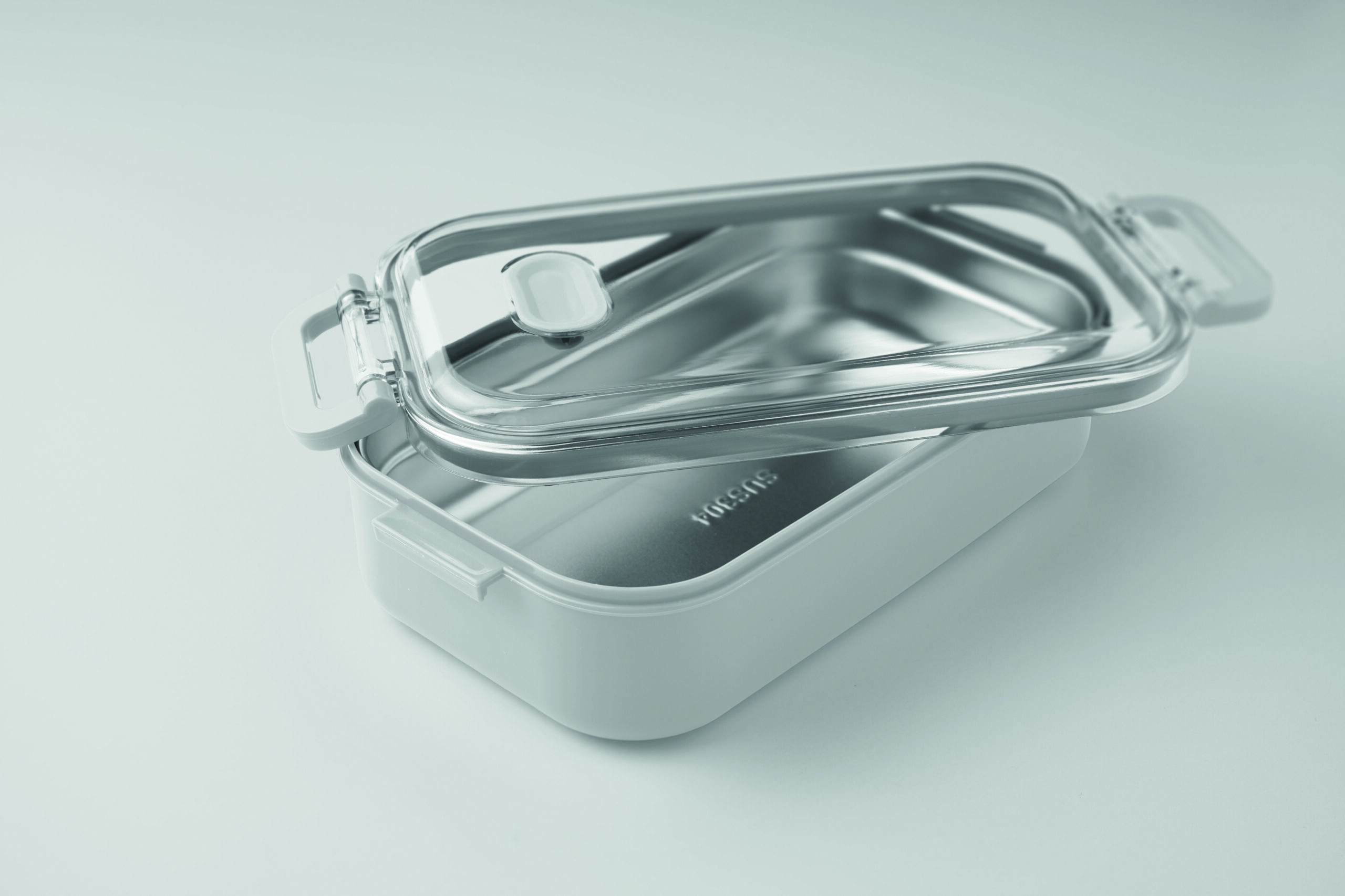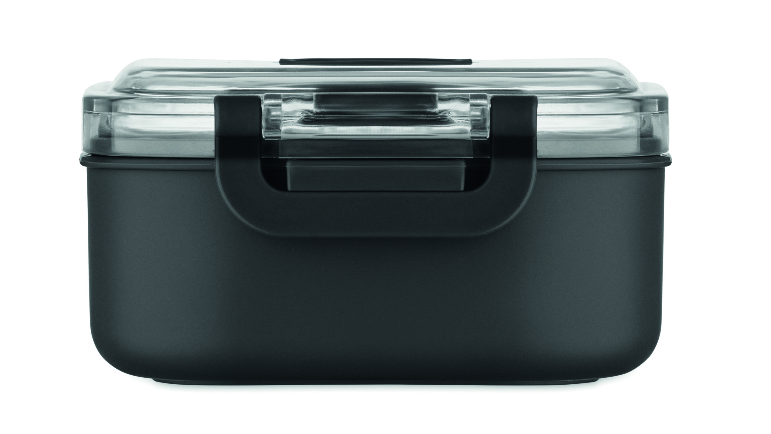 Lunchbox z PP z dodatkową warstwą wewnętrzną z recyklingowanej stali nierdzewnej. Szczelna pokrywa AS zapewnia świeżość i bezpieczeństwo żywności. Pojemność 750 ml bez tacki i 650 ml z tacką.