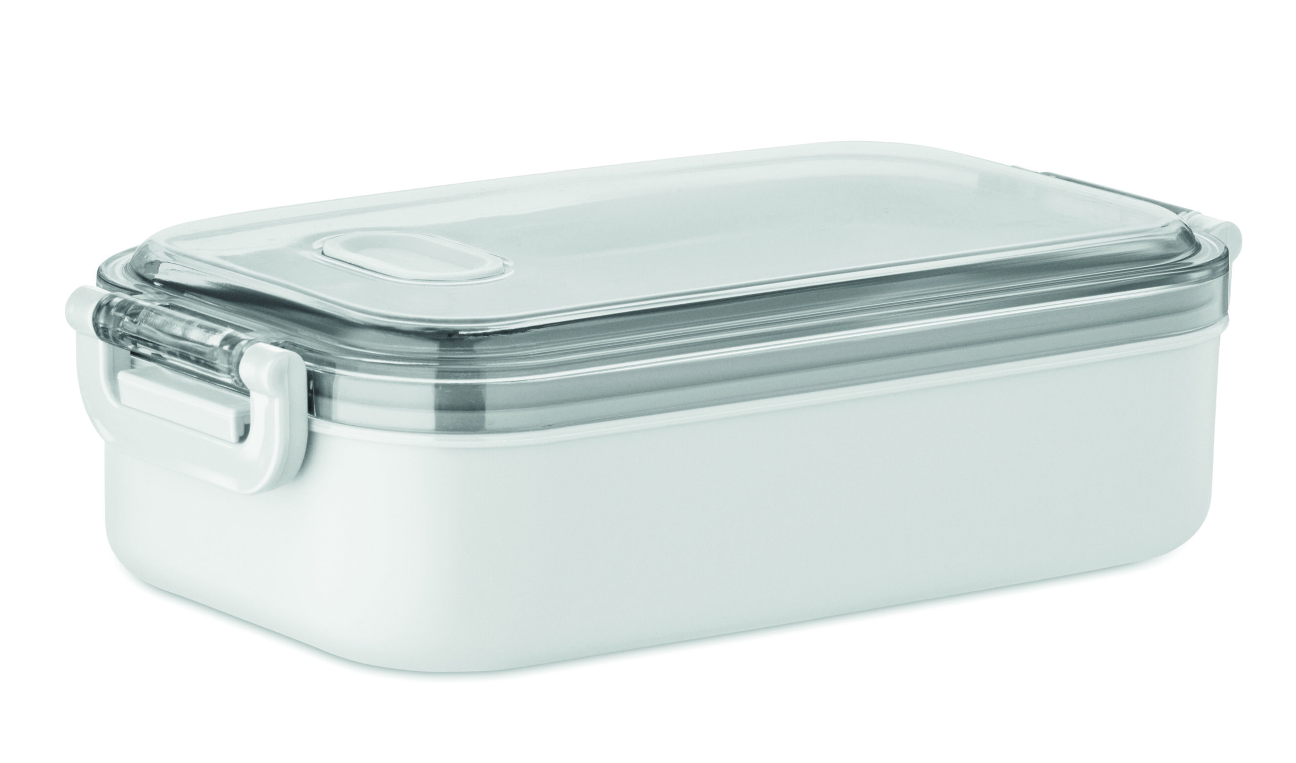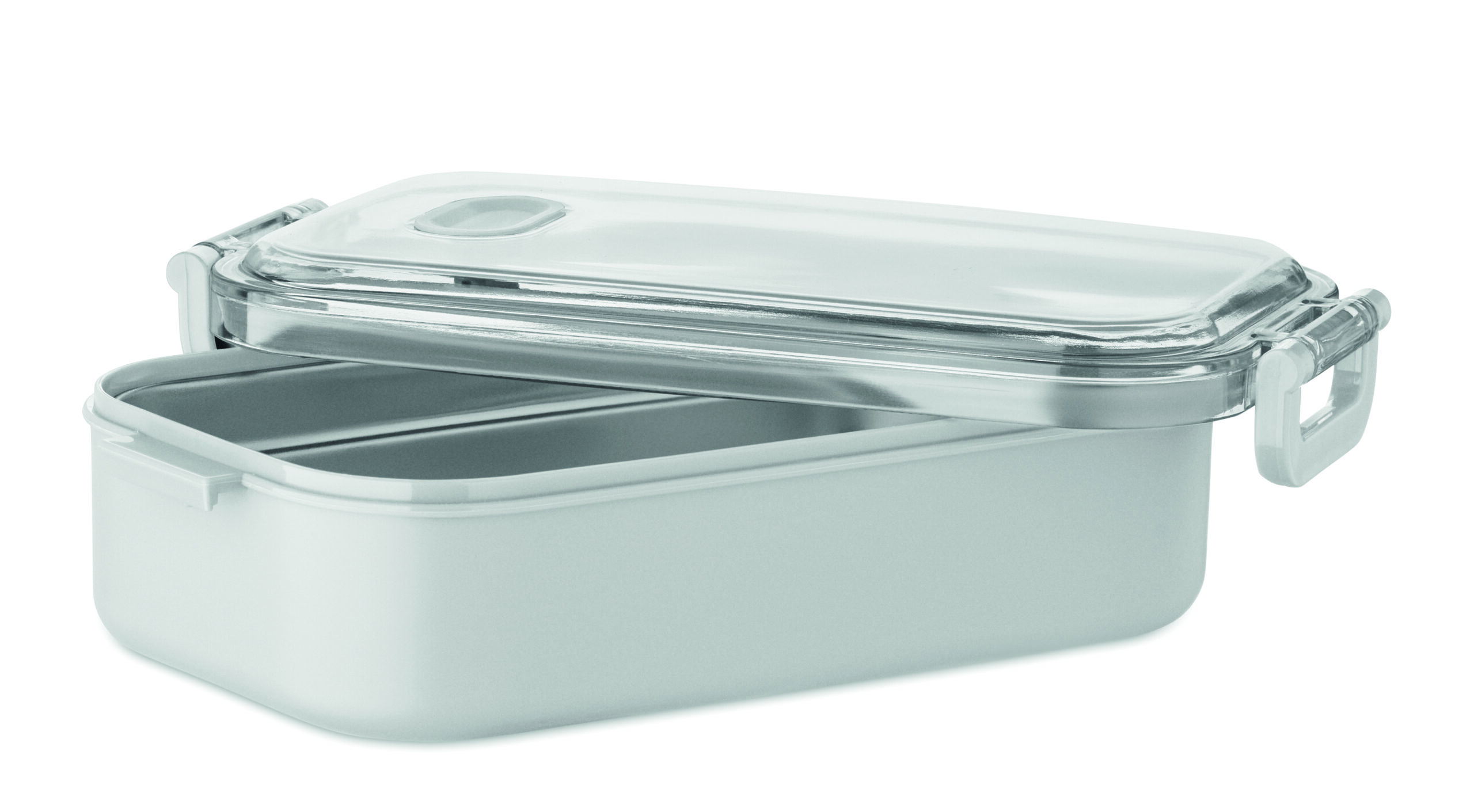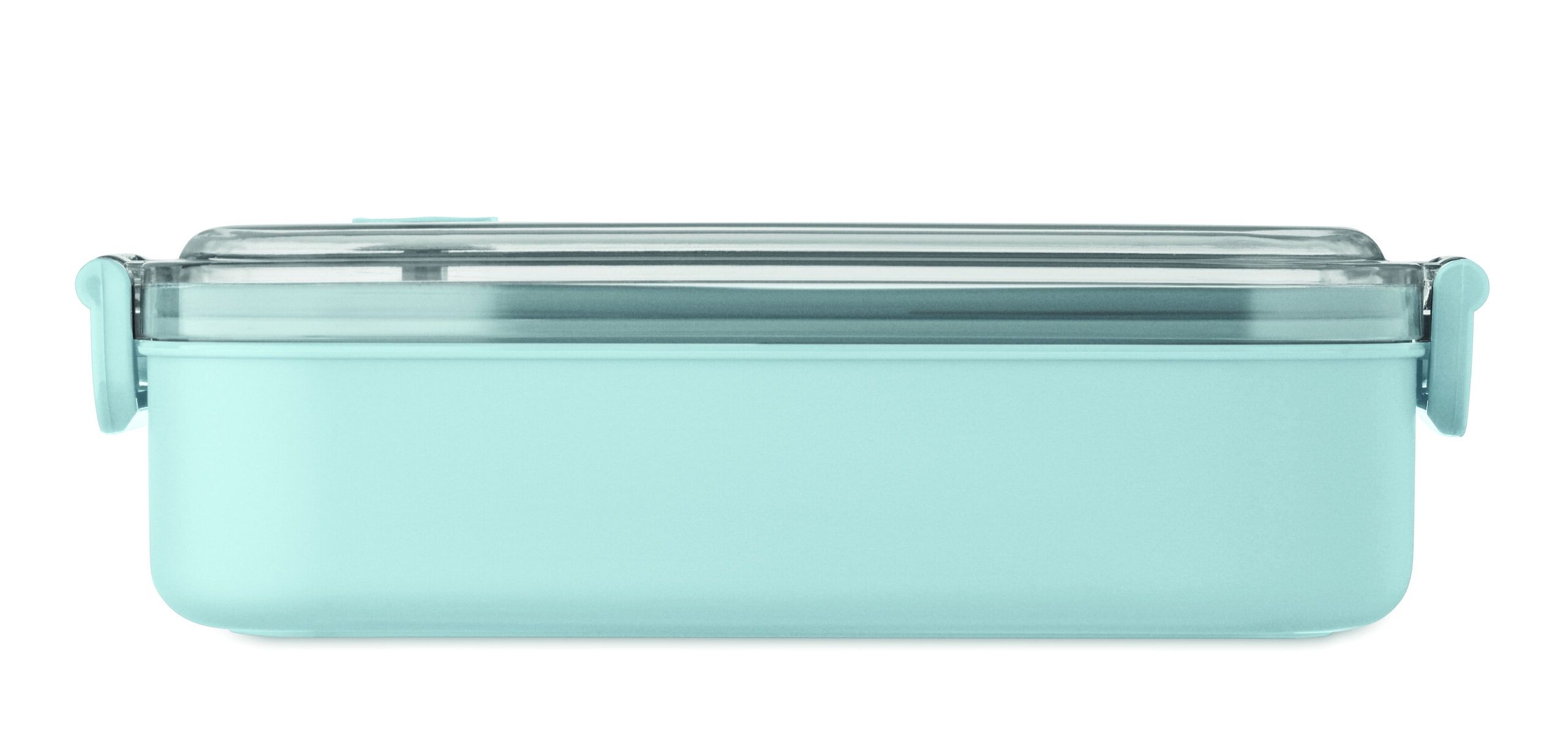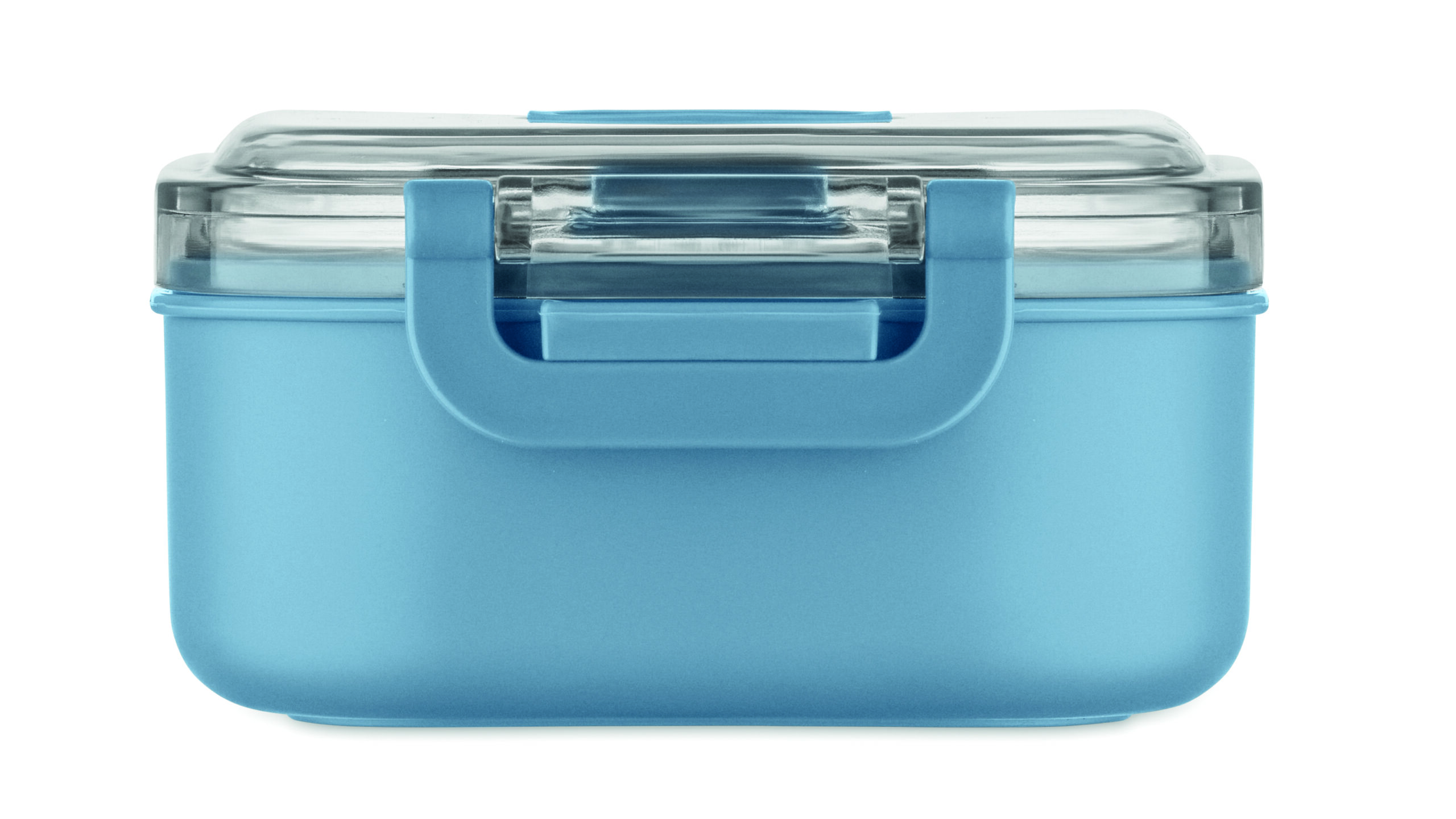 Lunchbox z PP z dodatkową warstwą wewnętrzną z recyklingowanej stali nierdzewnej. Szczelna pokrywa AS zapewnia świeżość i bezpieczeństwo żywności. Pojemność 750 ml bez tacki i 650 ml z tacką.