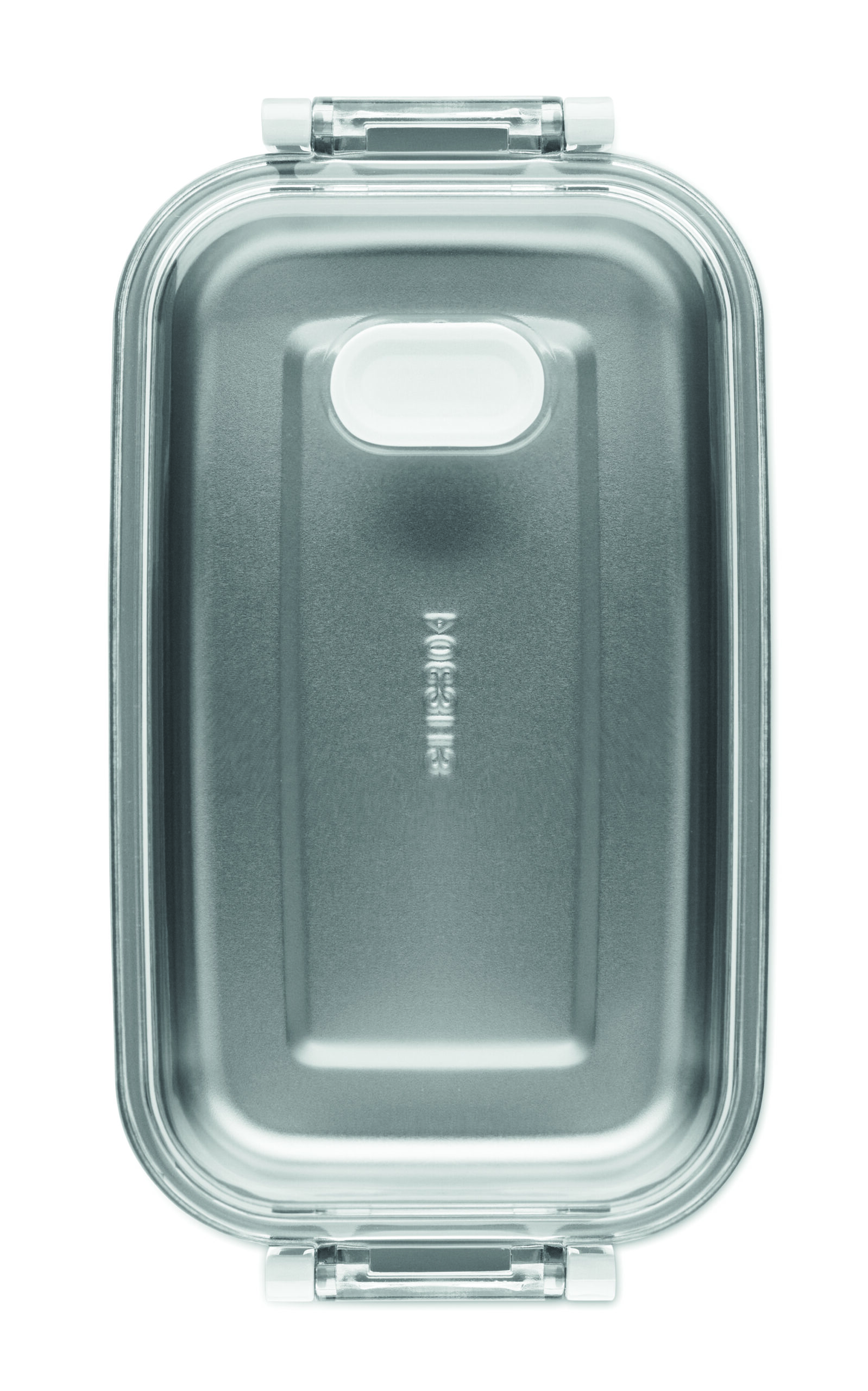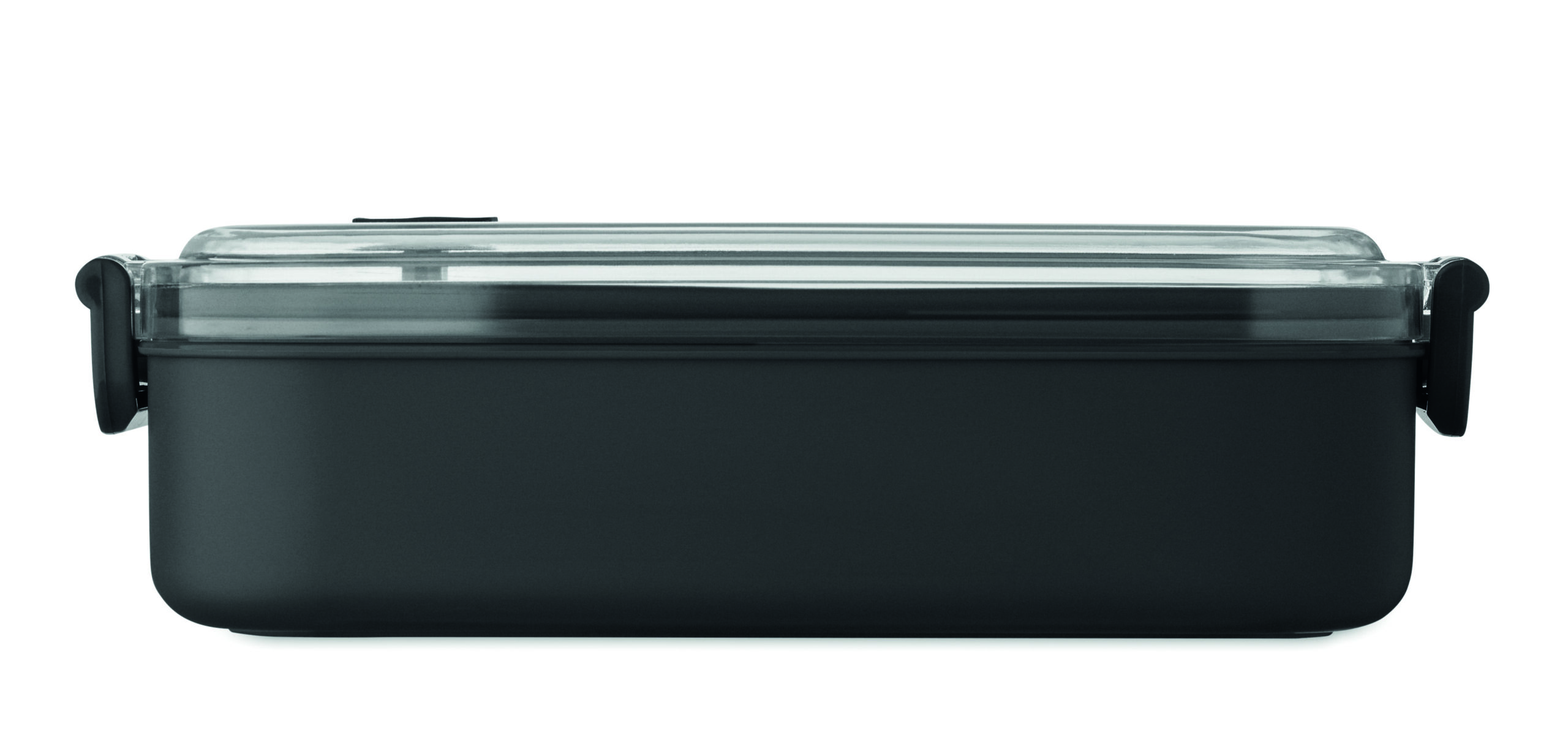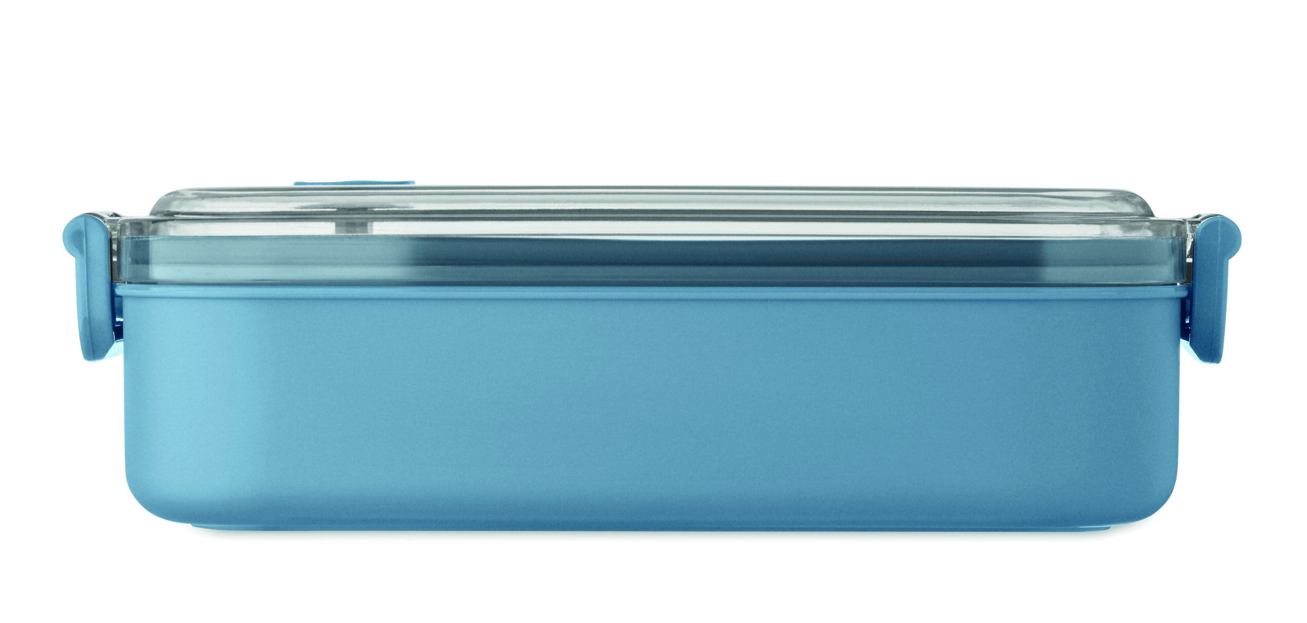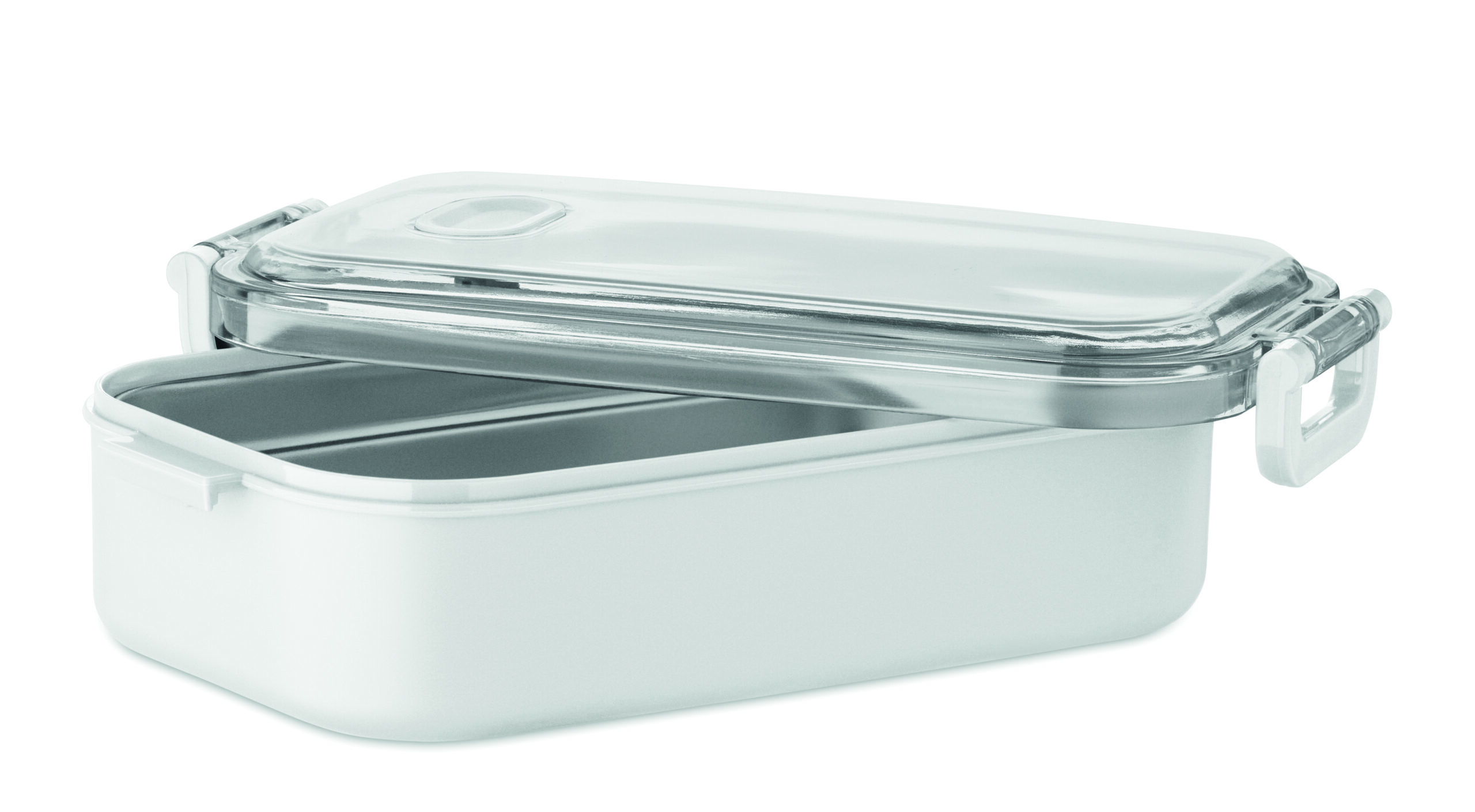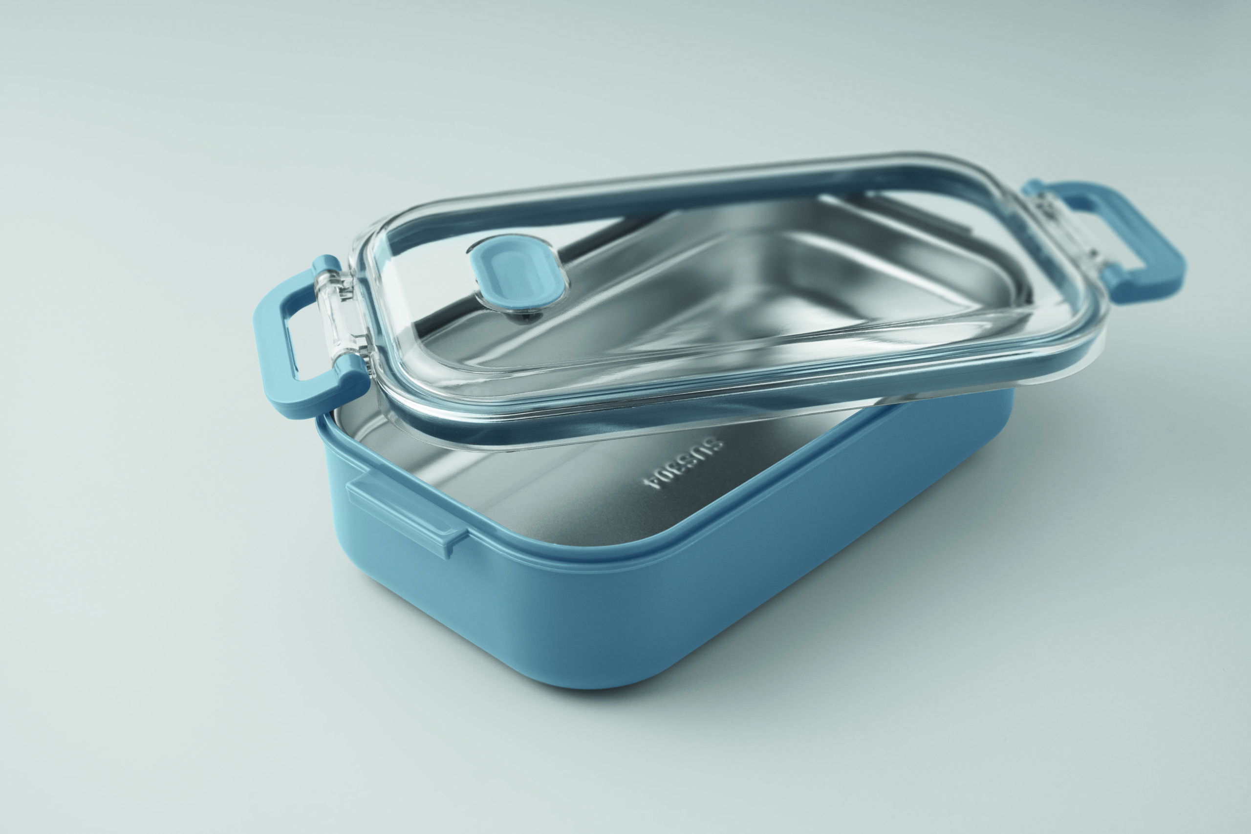 Lunchbox z PP z dodatkową warstwą wewnętrzną z recyklingowanej stali nierdzewnej. Szczelna pokrywa AS zapewnia świeżość i bezpieczeństwo żywności. Pojemność 750 ml bez tacki i 650 ml z tacką.