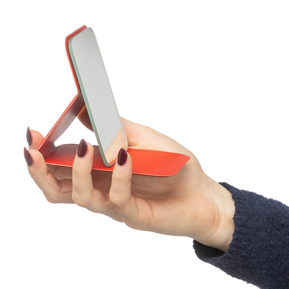 Lustro prostokątne, ikona recyklingu na produkcie, zapakowany w papierową torebkę, produkt wykonany ze szkła z obudową z PU z recyklingu