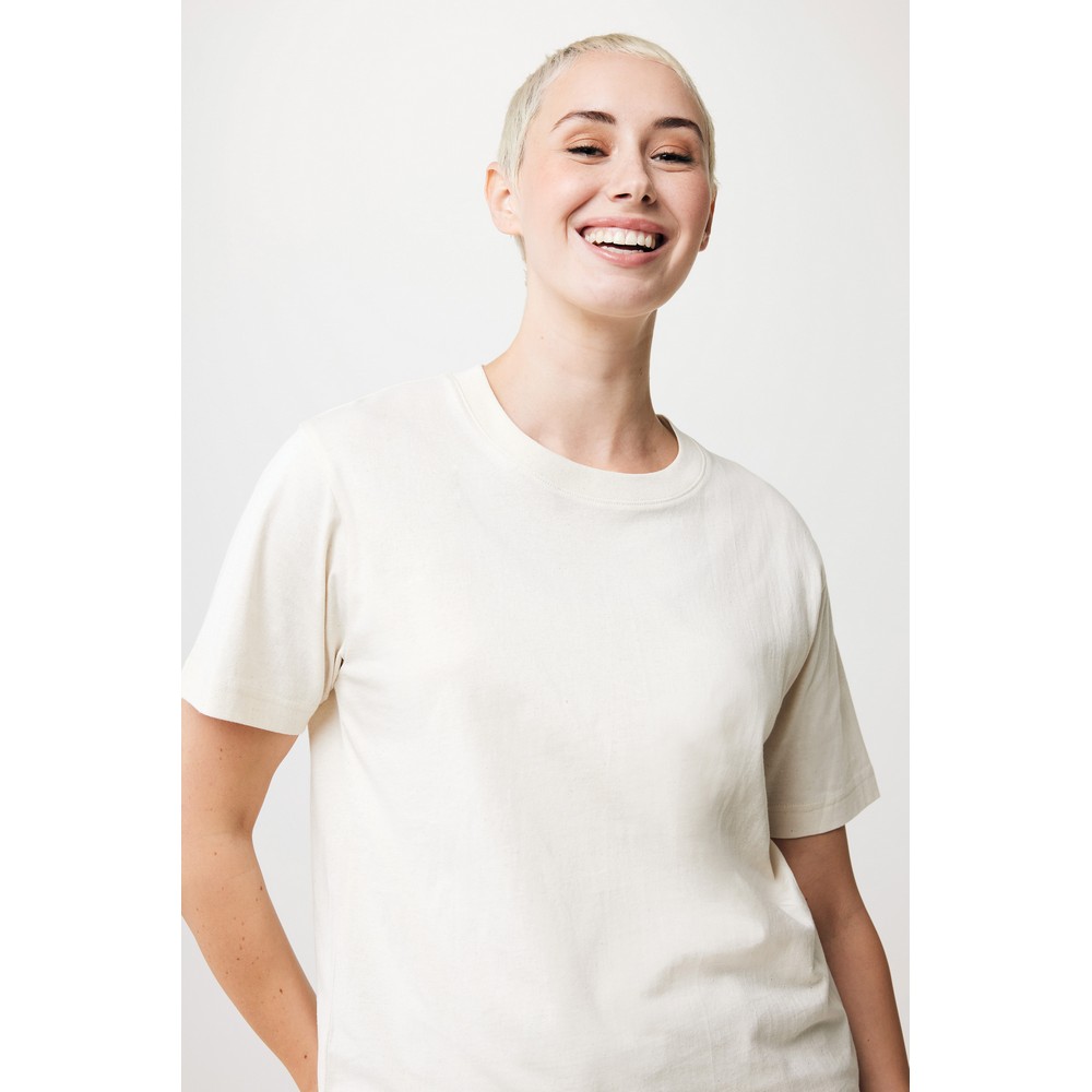 Koszulka, unisex, luźny krój, okrągły dekolt, krótkie rękawy, wykonana w 50% z bawełny z recyklingu i w 50% z bawełny organicznej o gramaturze 180 g/m2, posiada wbudowany znacznik AWARE™, który potwierdza wykorzystanie materiałów z recyklingu, posiada kod QR na metce, który prowadzi do cyfrowego paszportu produktu, 2% wpływów z każdego sprzedanego produktu z kolekcji Impact jest przekazywane na rzecz Water.org