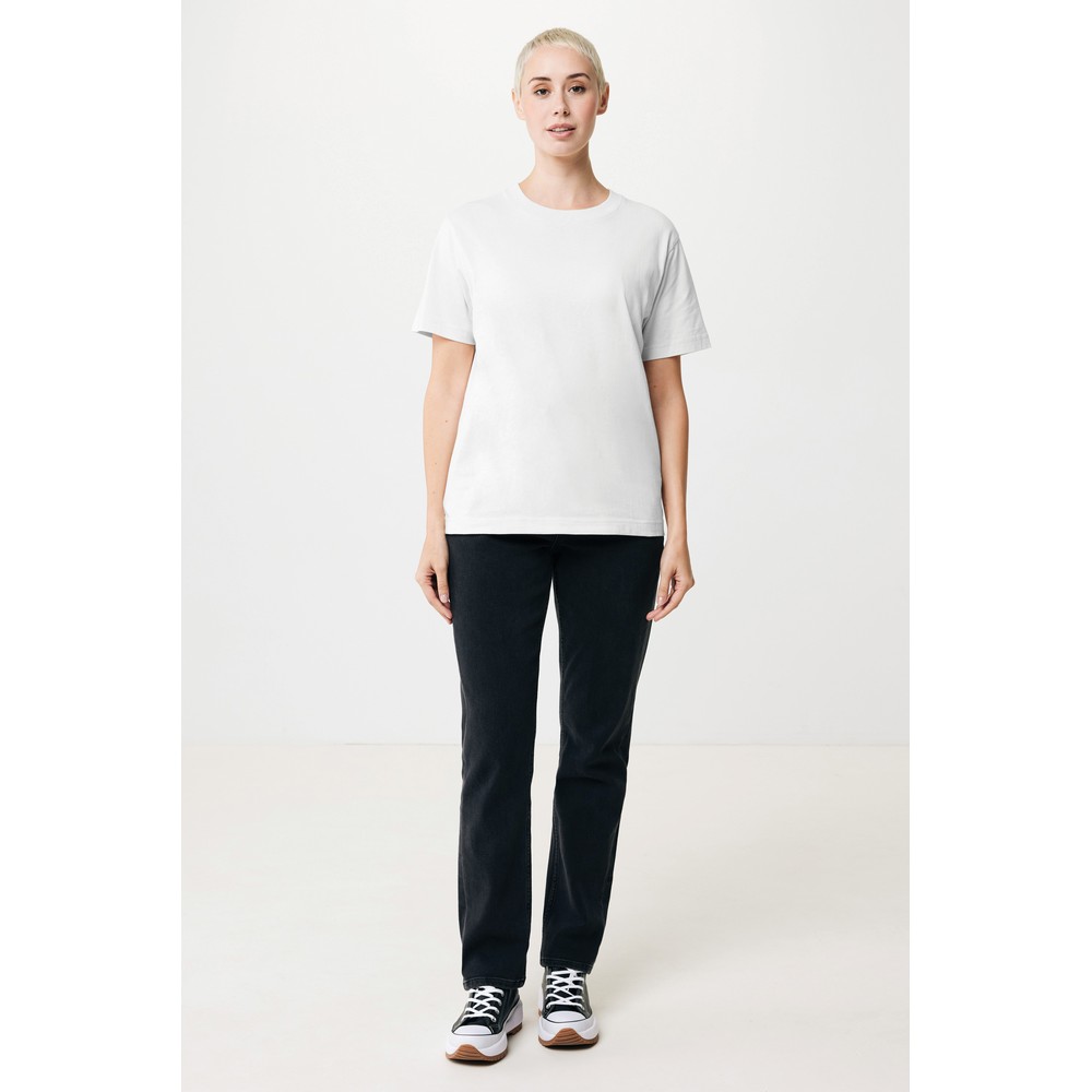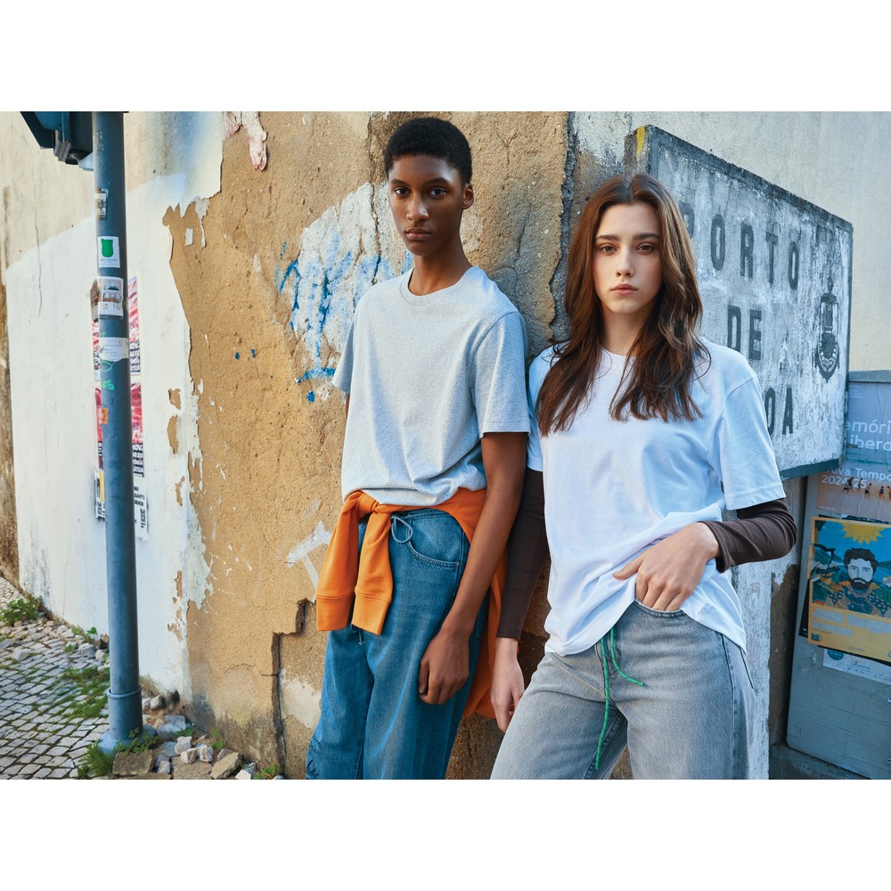Koszulka, unisex, luźny krój, okrągły dekolt, krótkie rękawy, wykonana w 50% z bawełny z recyklingu i w 50% z bawełny organicznej o gramaturze 180 g/m2, posiada wbudowany znacznik AWARE™, który potwierdza wykorzystanie materiałów z recyklingu, posiada kod QR na metce, który prowadzi do cyfrowego paszportu produktu, 2% wpływów z każdego sprzedanego produktu z kolekcji Impact jest przekazywane na rzecz Water.org