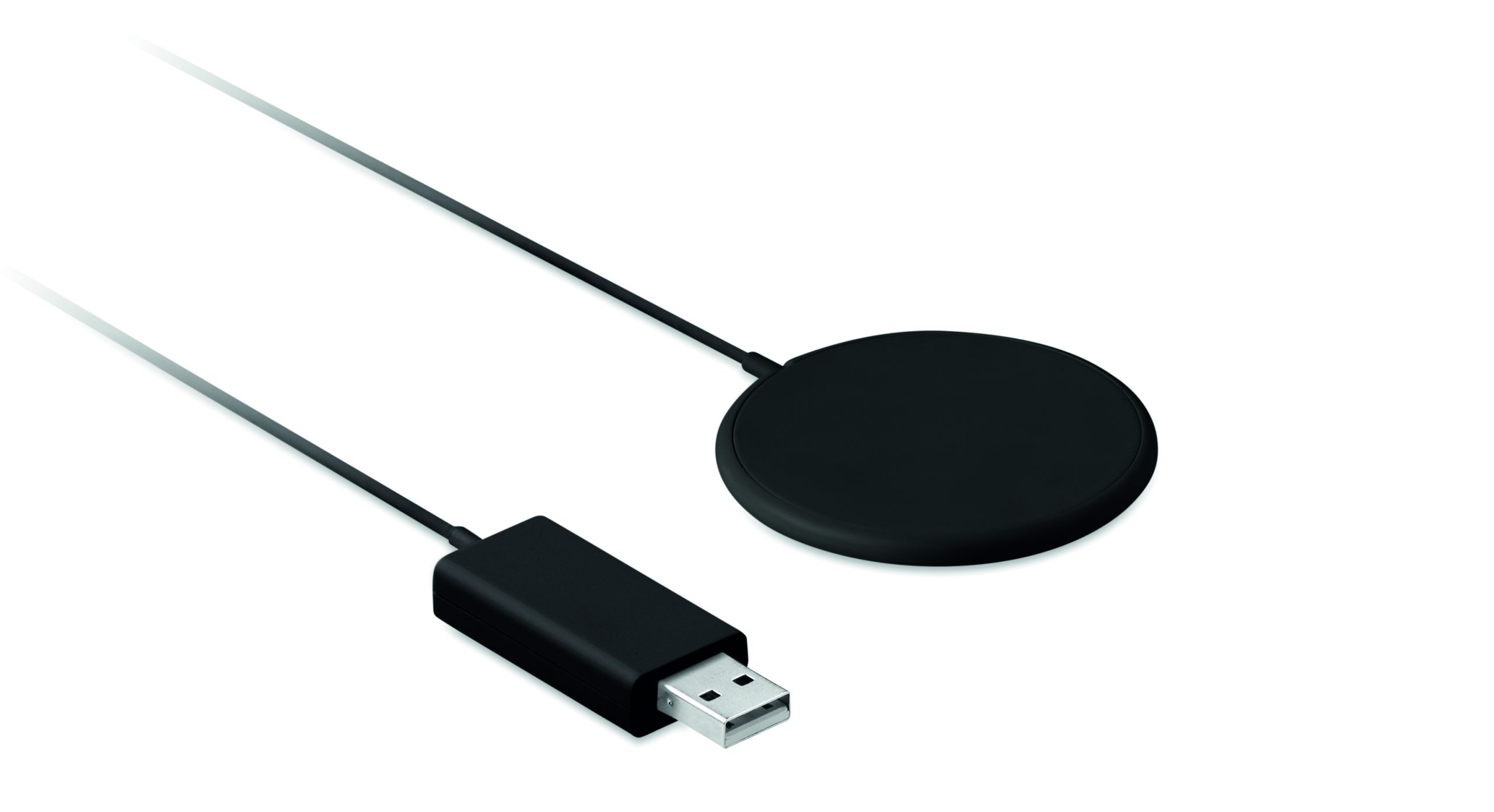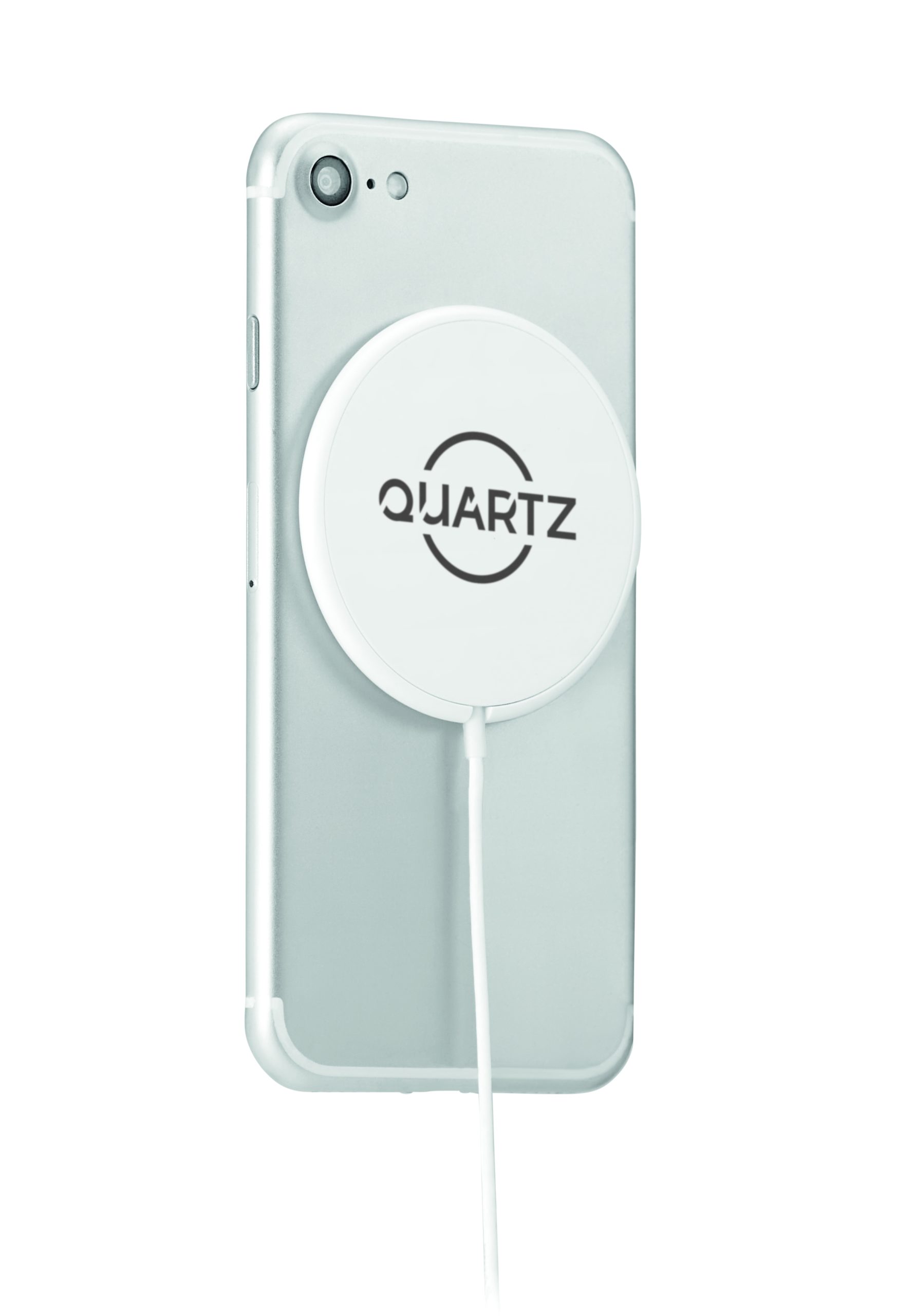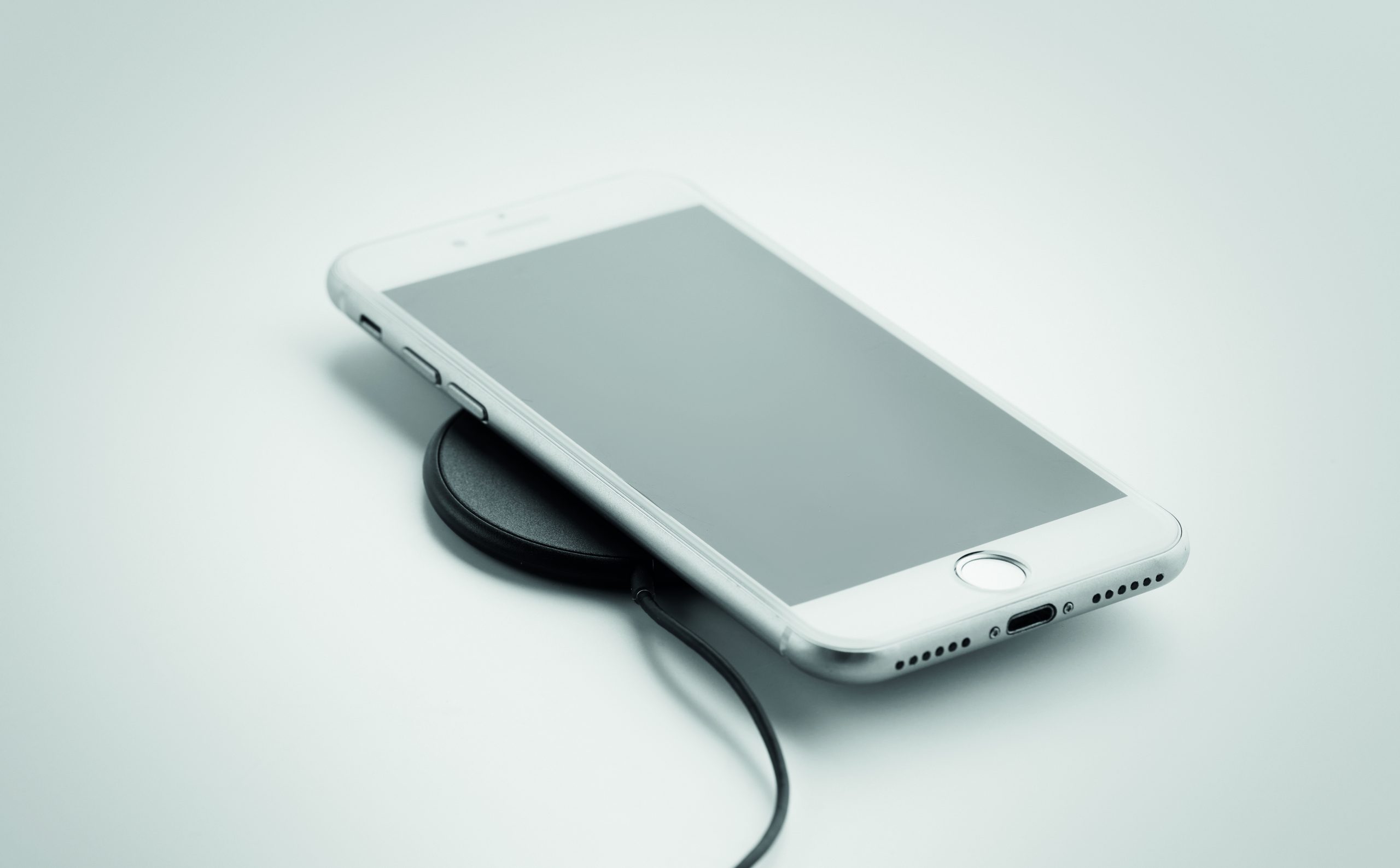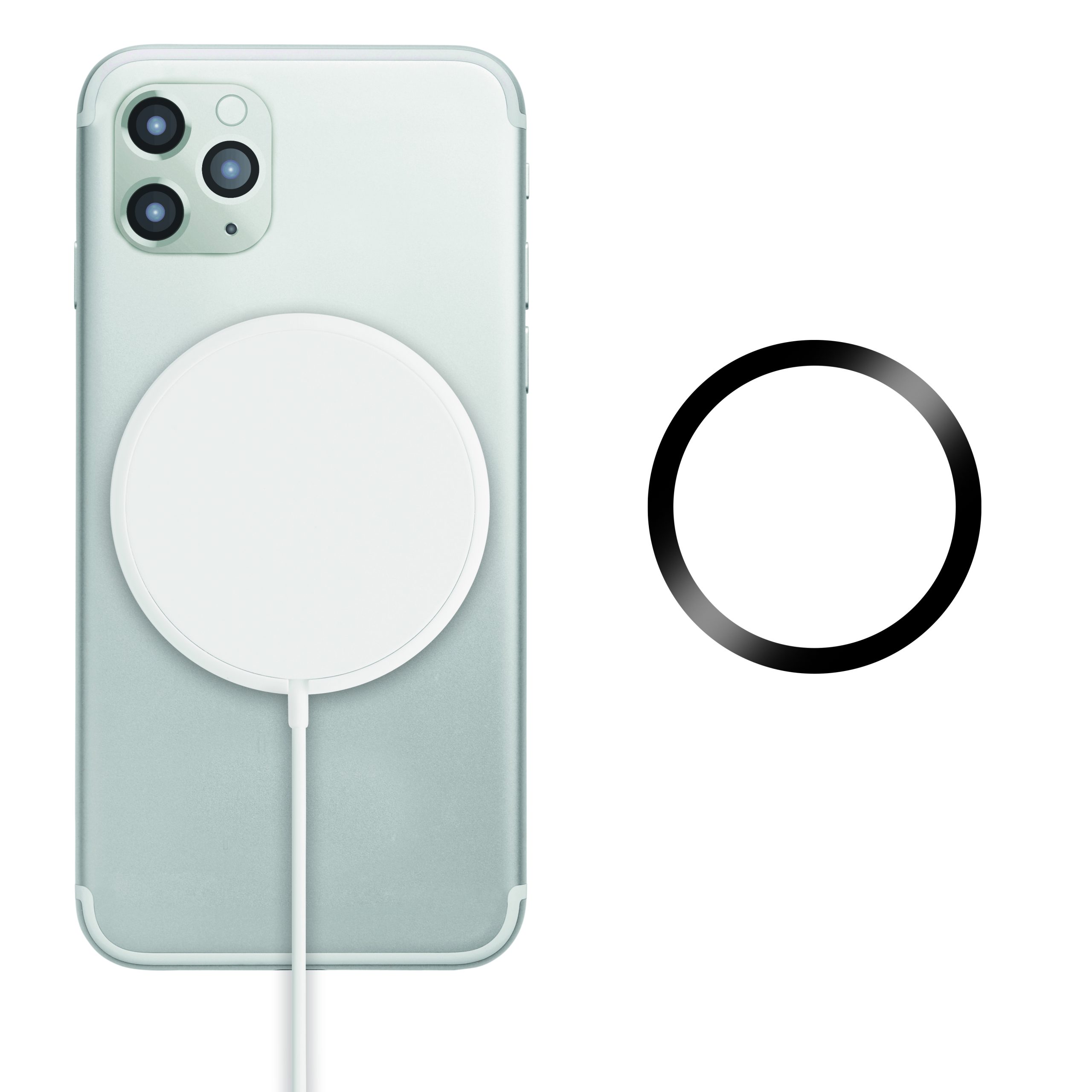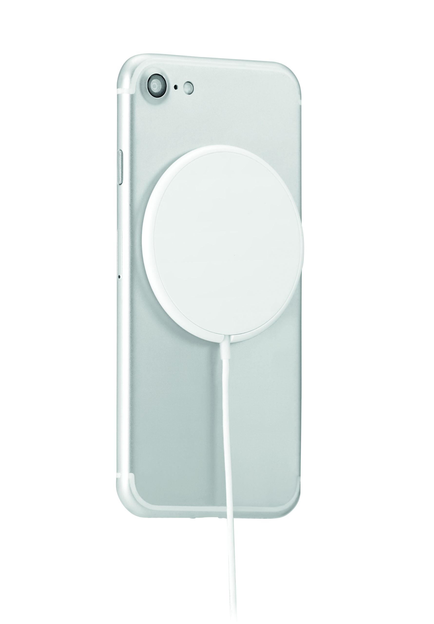 Magnetyczna ładowarka bezprzewodowa z ABS. Wyjście: DC 9V/1.1A (10W) do szybkiego ładowania. W tym dodatkowo magnetyczny metalowy pierścień do ładowania innych niemagnetycznych telefonów z możliwością bezprzewodowego ładowania.