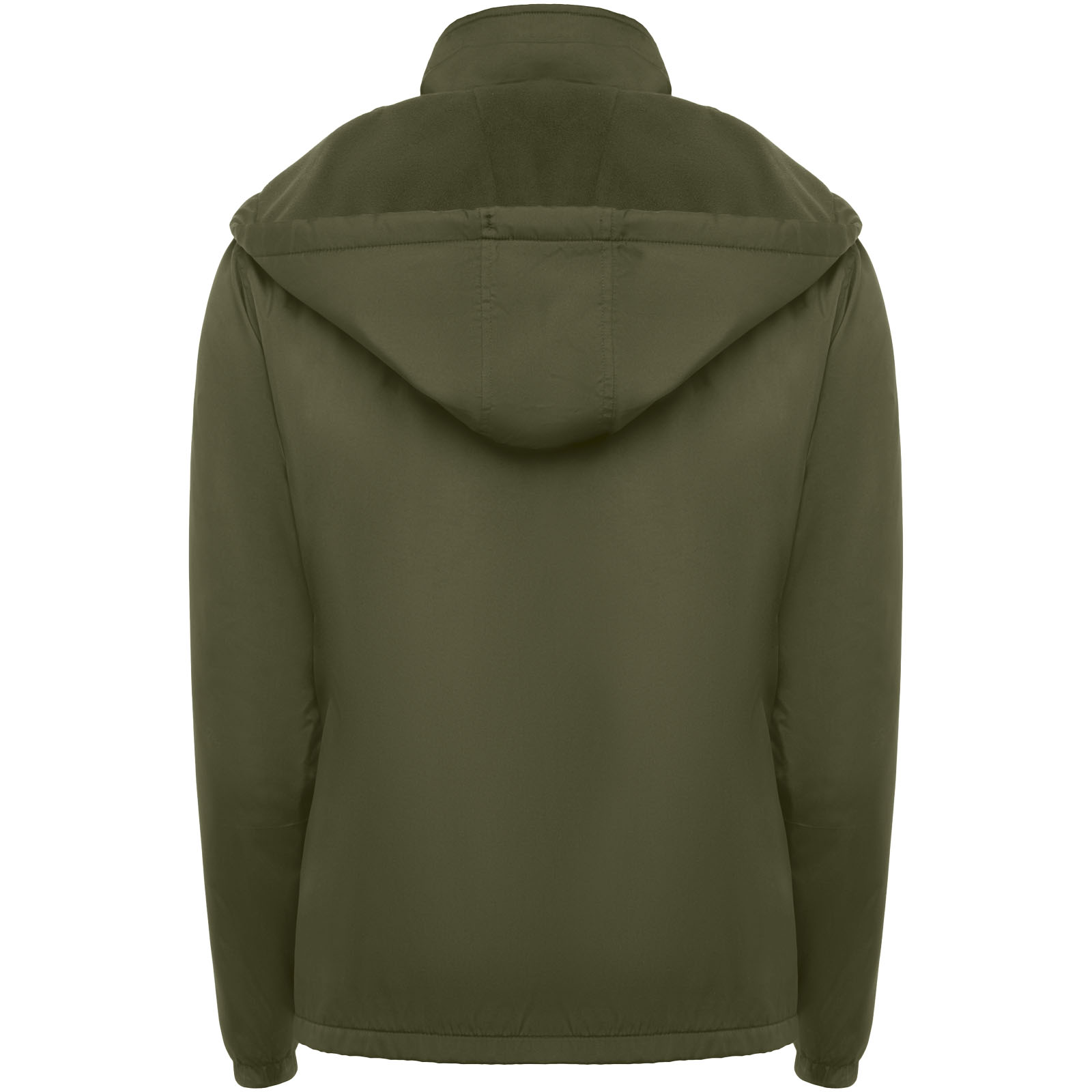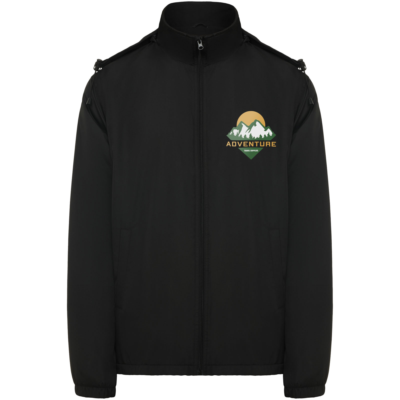 Lekka wodoodporna kurtka. Wysoki kołnierz i zwijany kaptur z regulacją. Podszewka z mikropolaru. Zamek błyskawiczny z przodu i osłona podbródka. Elastyczne mankiety. Dwie kieszenie boczne zapinane na zamek. Wewnętrzna kieszeń na lewej piersi. Usuwalna metka. Wodoodporna. Wiatroszczelna.