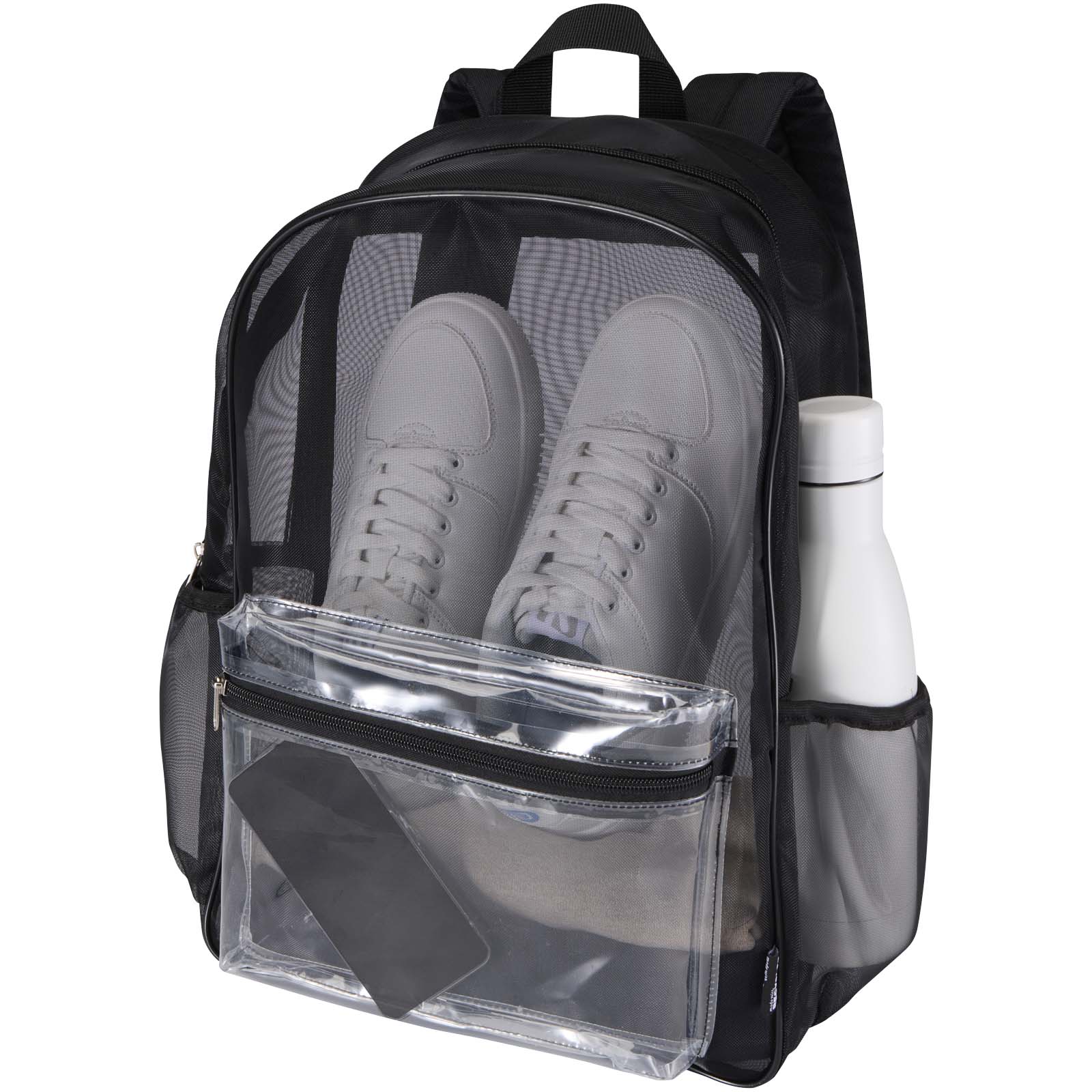Ten plecak, wykonany z siateczki z poliestru pochodzącego z recyklingu, stanowi bardziej ekologiczną opcję bez uszczerbku dla praktyczności i stylu. Posiada pojemną komorę główną o pojemności 18 litrów, w której zmieszczą się niezbędne przedmioty codziennego użytku, przednią kieszeń zapinaną na zamek na drobniejsze rzeczy oraz dwie kieszenie boczne, idealne na butelkę z wodą lub parasol. Wyściełane, regulowane paski na ramiona zapewniają wygodę noszenia przez cały dzień. Przezroczysta konstrukcja z siateczki nadaje plecakowi elegancki, nowoczesny wygląd, a jednocześnie zapewnia doskonałą widoczność zawartości – dzięki czemu sprawdzi się idealnie w miejscach pracy, na imprezach i w szkołach, gdzie obowiązują zasady dotyczące przezroczystych toreb.
