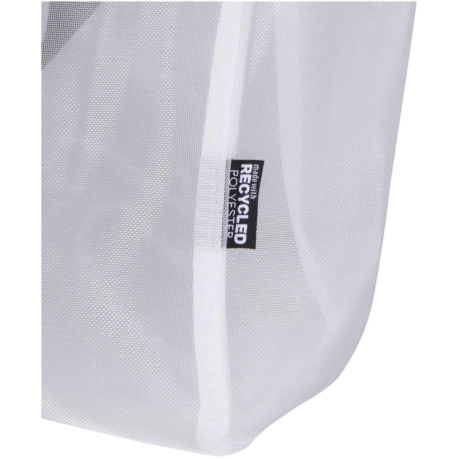 Ta pojemna torba o pojemności 23 litrów, wykonana z siatki z poliestru pochodzącego z recyklingu, stanowi bardziej ekologiczny wybór bez uszczerbku dla praktyczności. Torba wyposażona jest w bezpieczną główną komorę zapinaną na zamek, kieszeń przednią i dwie kieszenie boczne, w których można przechowywać niezbędne rzeczy w porządku, natomiast gładkie uchwyty do noszenia (o długości 30 cm) zapewniają wygodę użytkowania. Przezroczysta konstrukcja z siatki nadaje jej schludny, nowoczesny wygląd i pozwala na łatwy podgląd zawartości – idealna do pracy, podróży, na siłownię lub na imprezy, na których obowiązują zasady dotyczące przezroczystych toreb. Wytrzymałość do 15 kg.