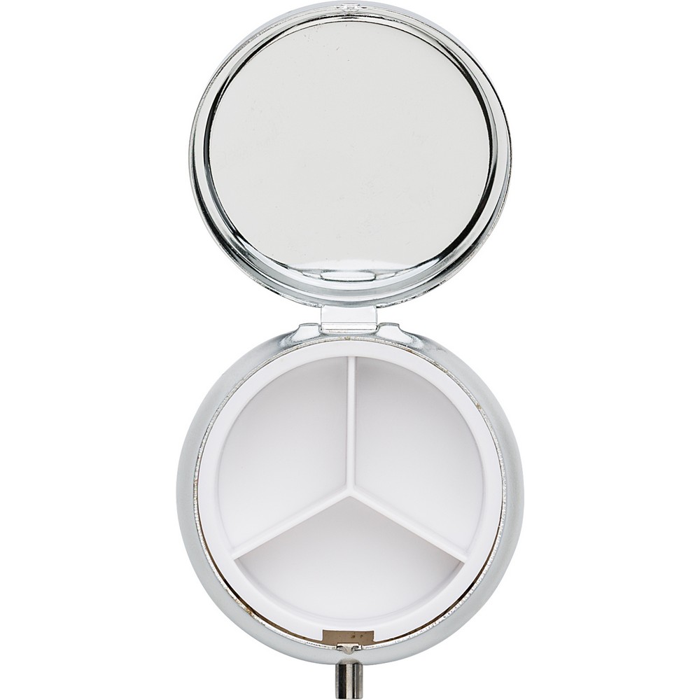 Metalowy pojemnik na tabletki z 3 przegrodami, lusterko