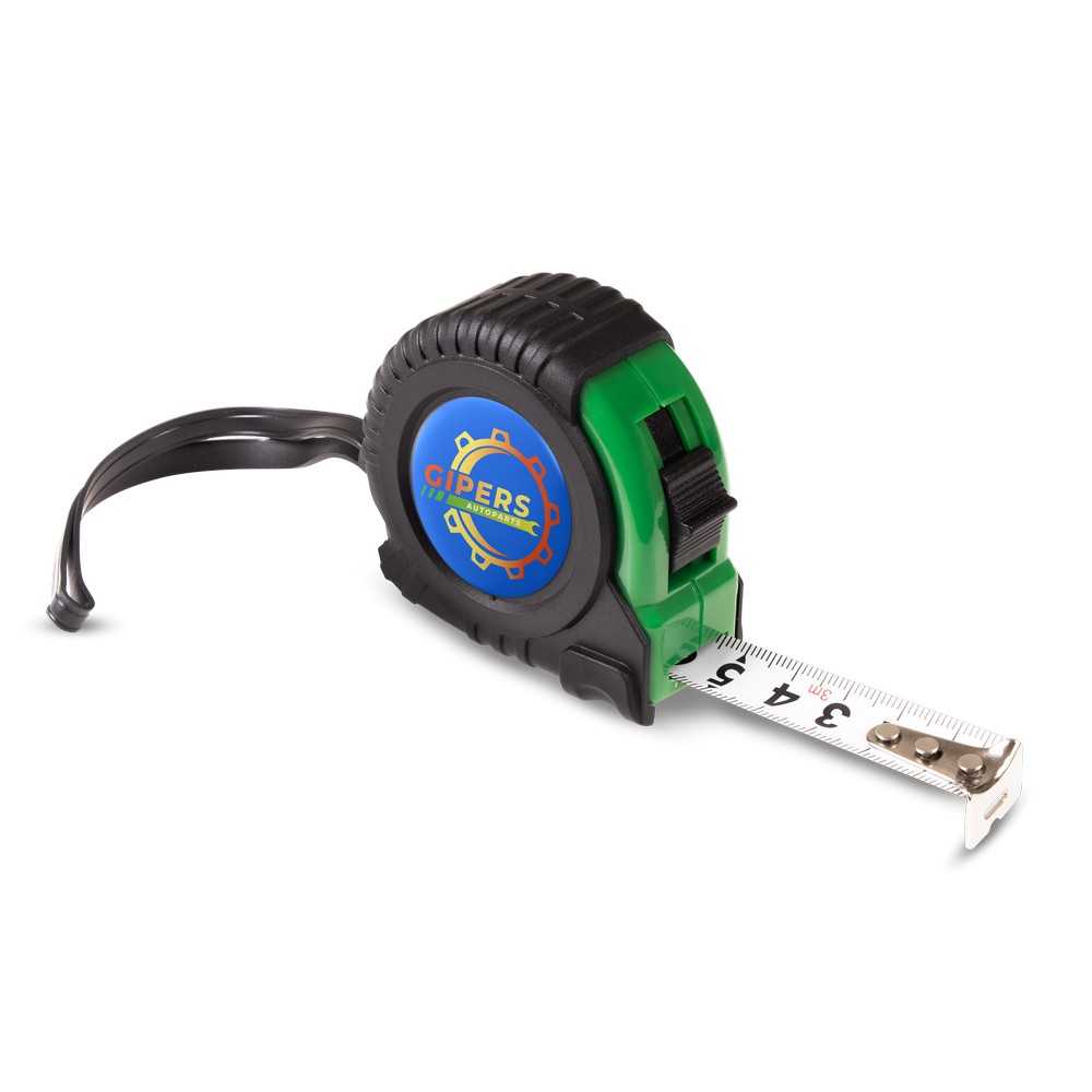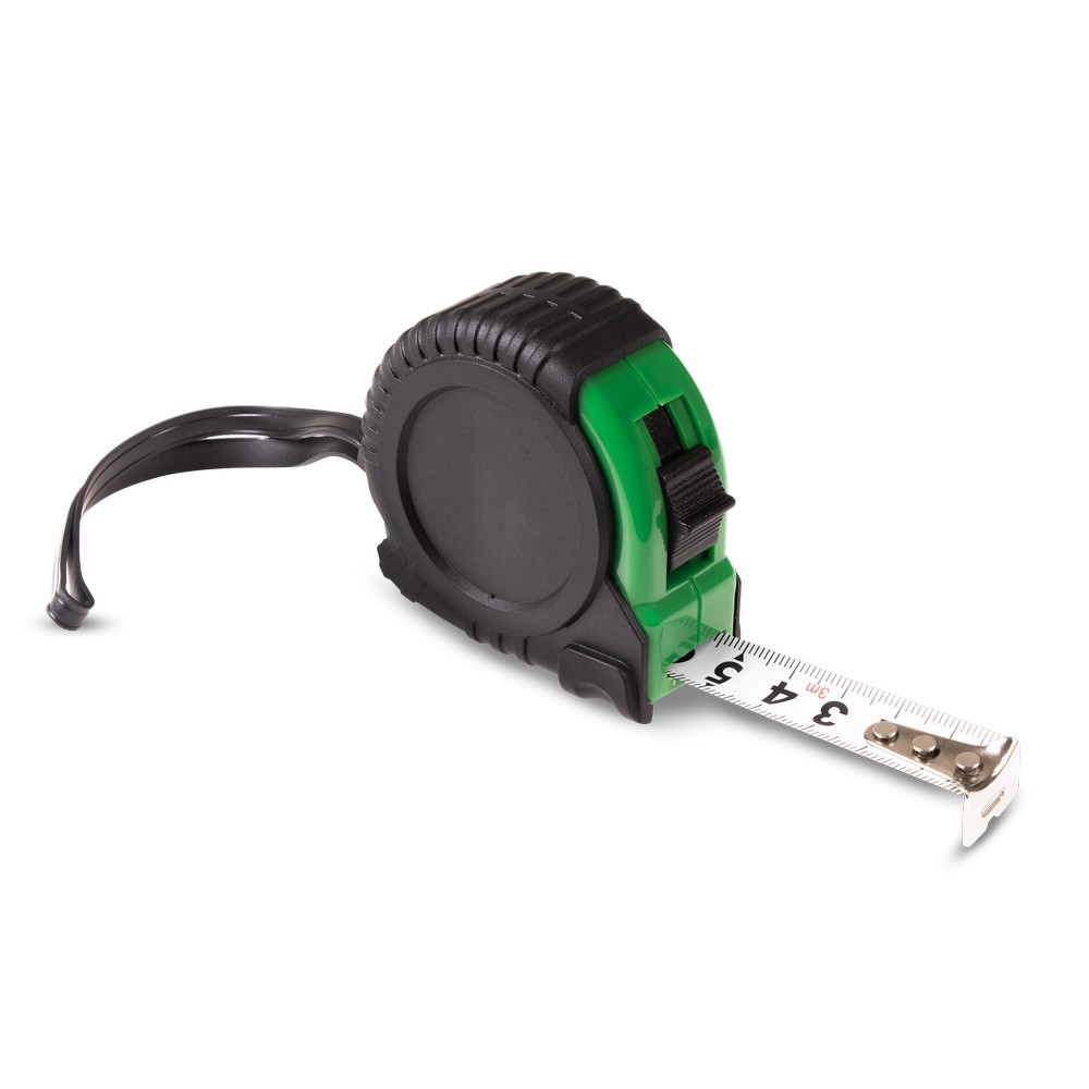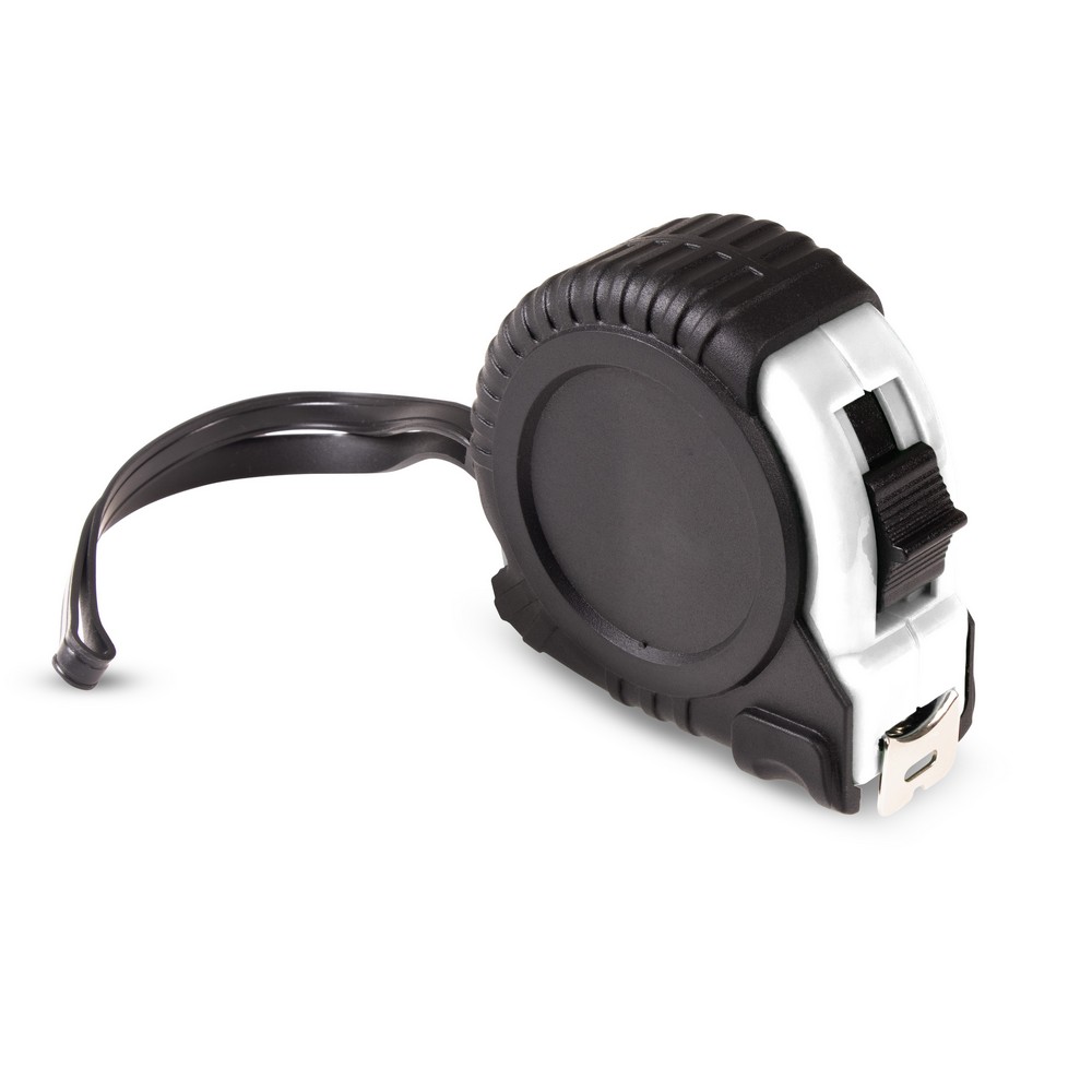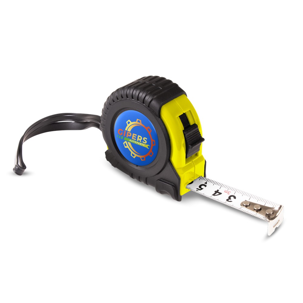 Miara 3 m z uchwytem ułatwiającym noszenie, klipem umożliwiającym przypięcie np. do paska, mechanizmem blokującym, korpusem pokrytym gumą, produkt wykonany z PP