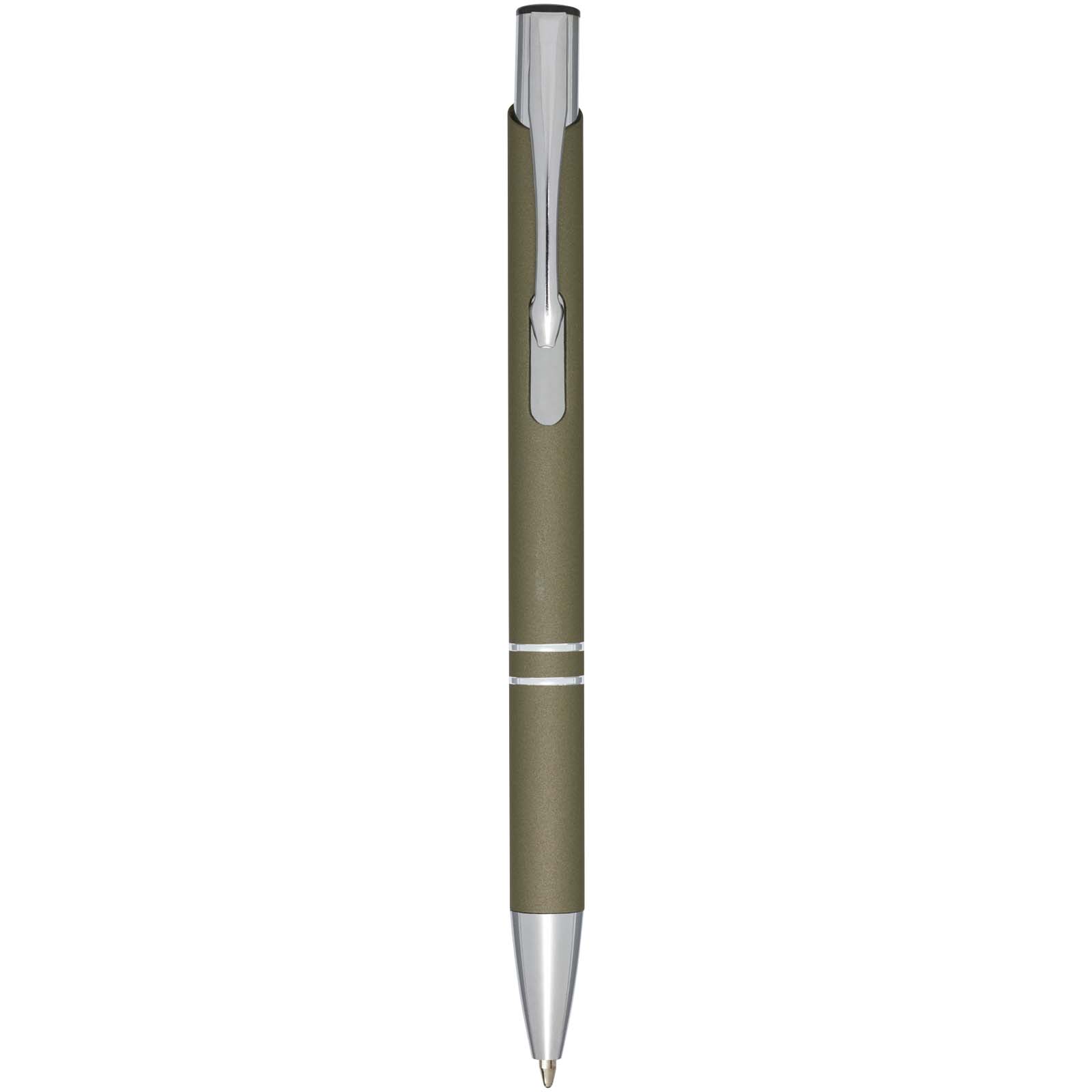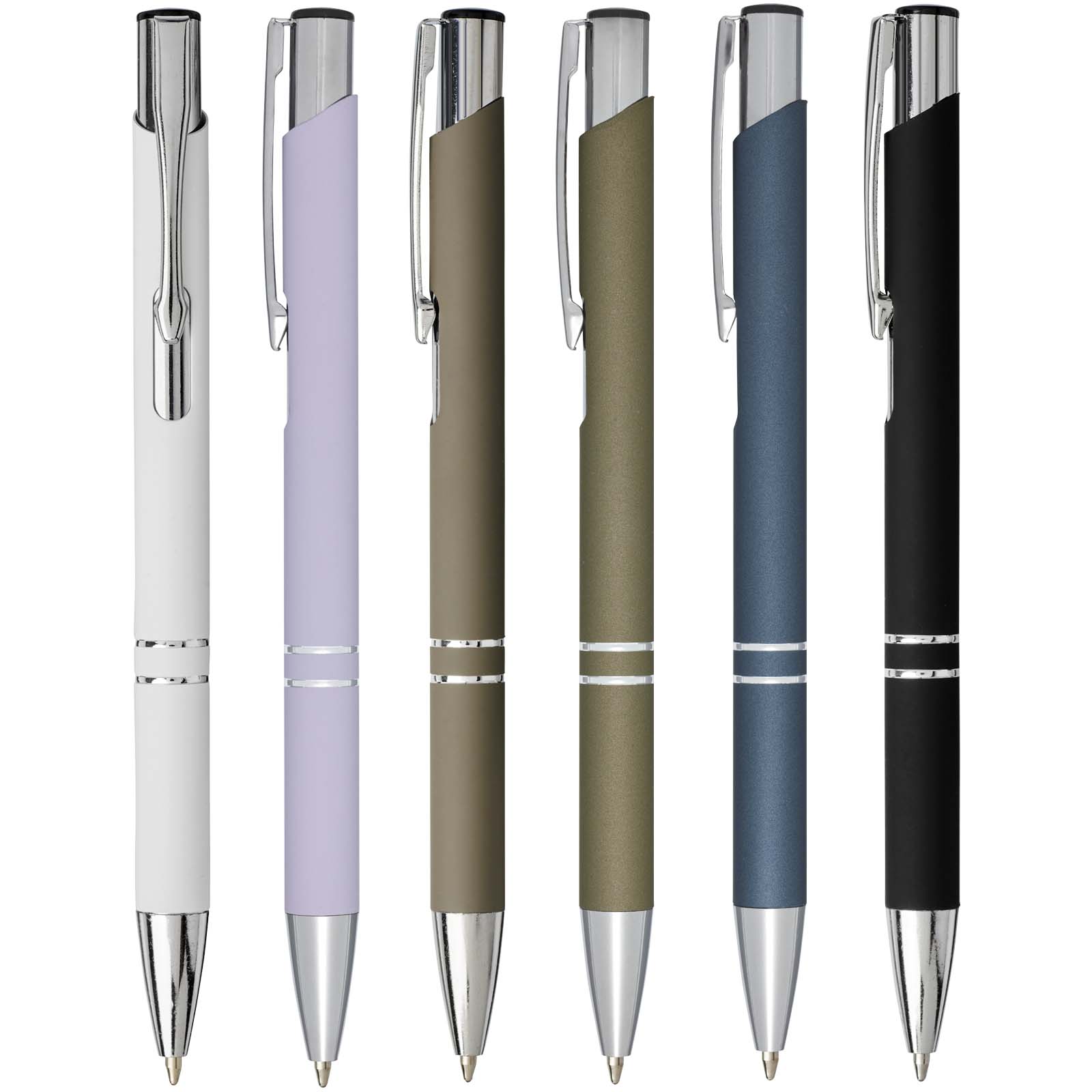 Gumowa powłoka sprawia, że długopis jest miękki w dotyku, a po wygrawerowaniu laserem ukazuje się srebrna warstwa spodnia. Długopis automatyczny z czarną gumową powłoką i chromowanymi wykończeniami oraz czarną górą z plastiku ABS. Bogaty i popularny asortyment Moneta jest dostępny w wielu różnych stylach i wykończeniach.