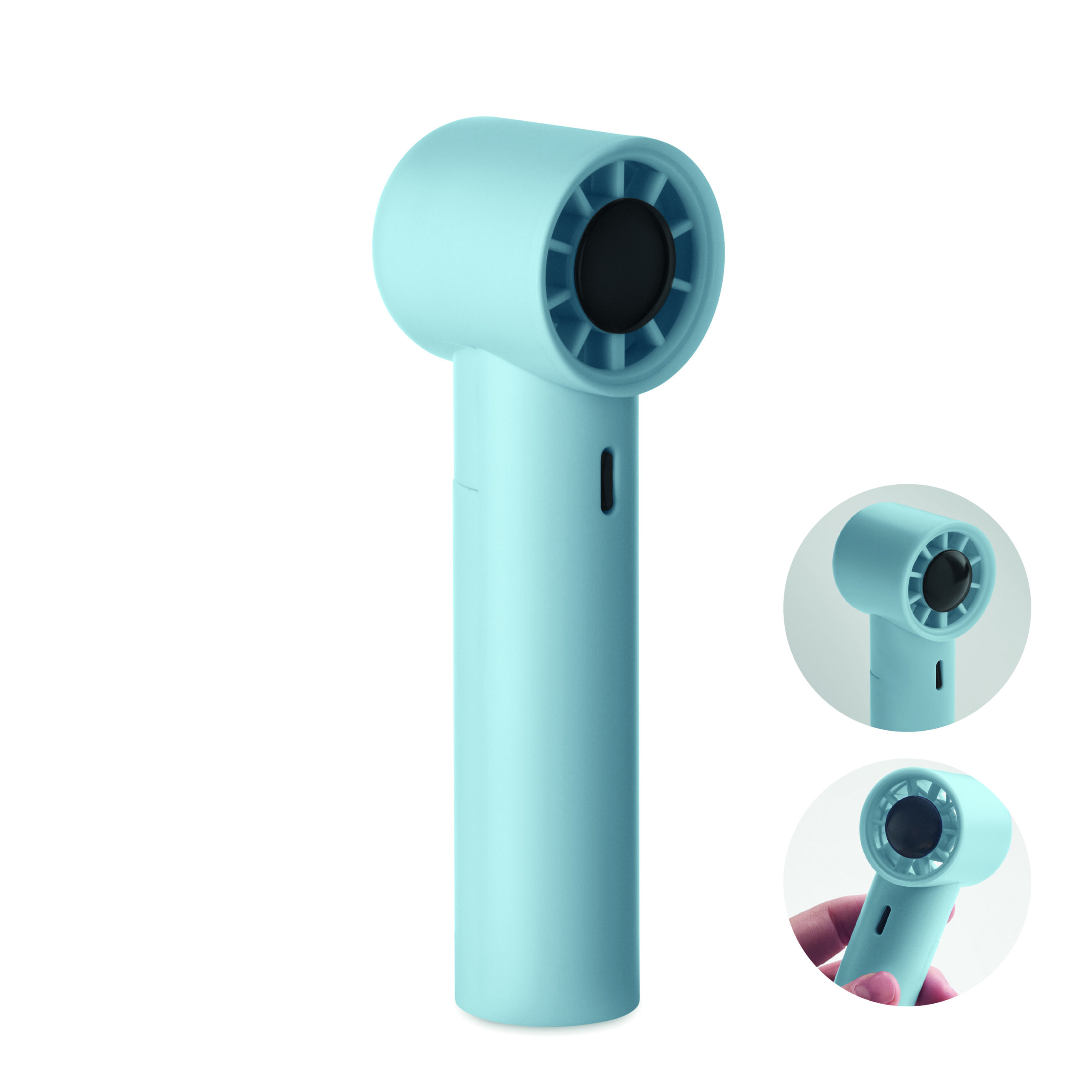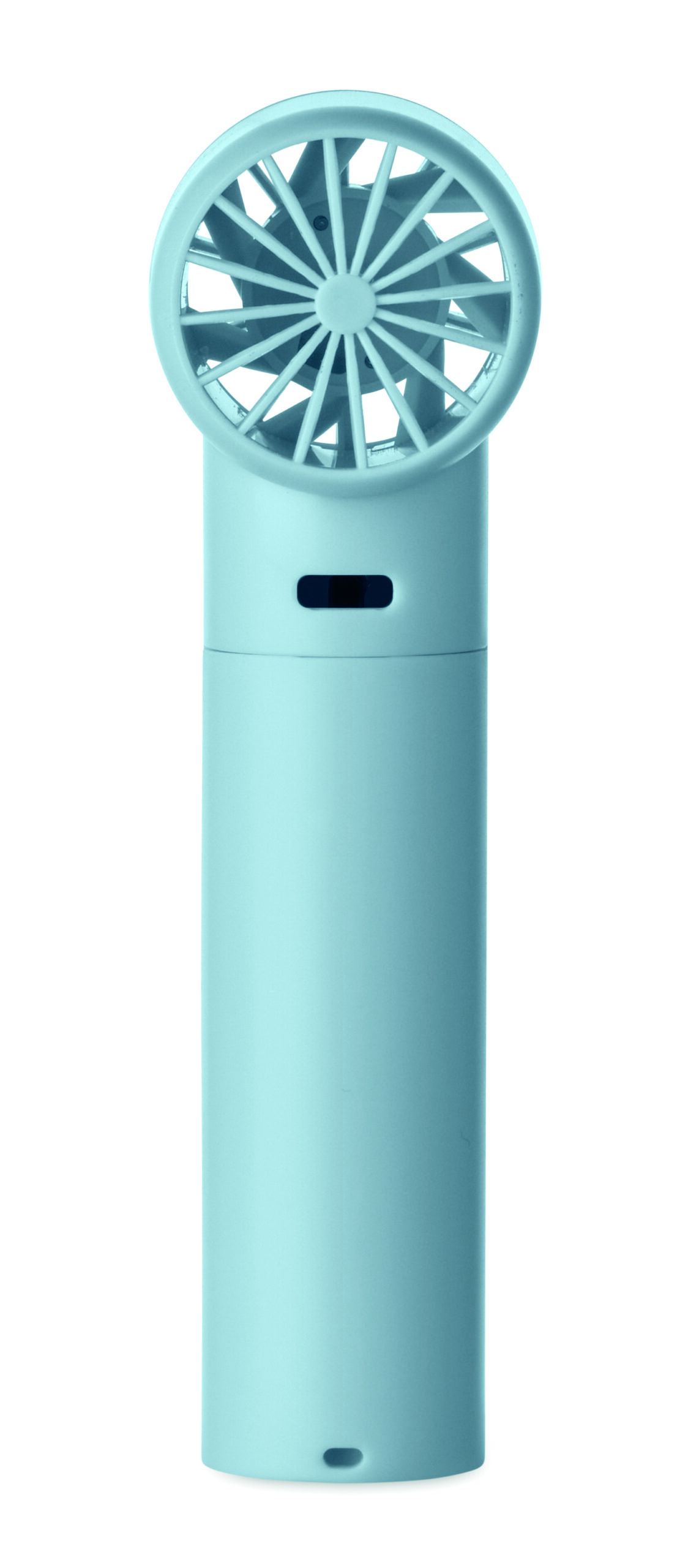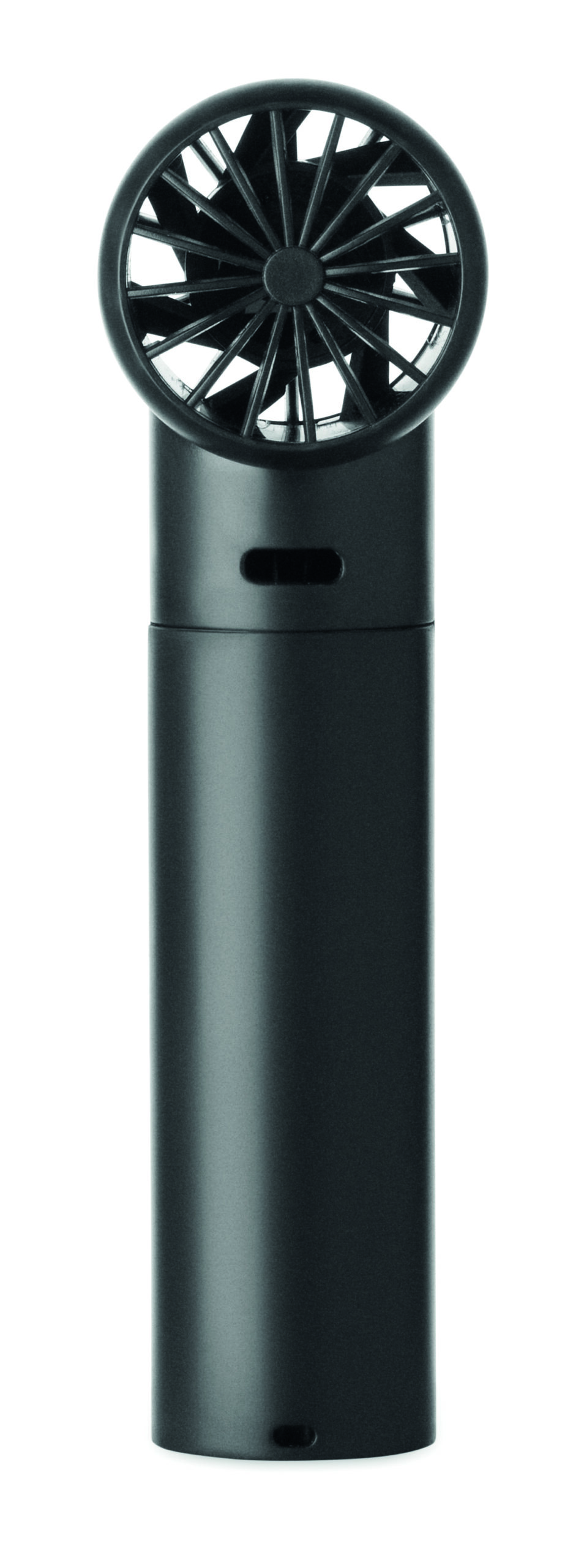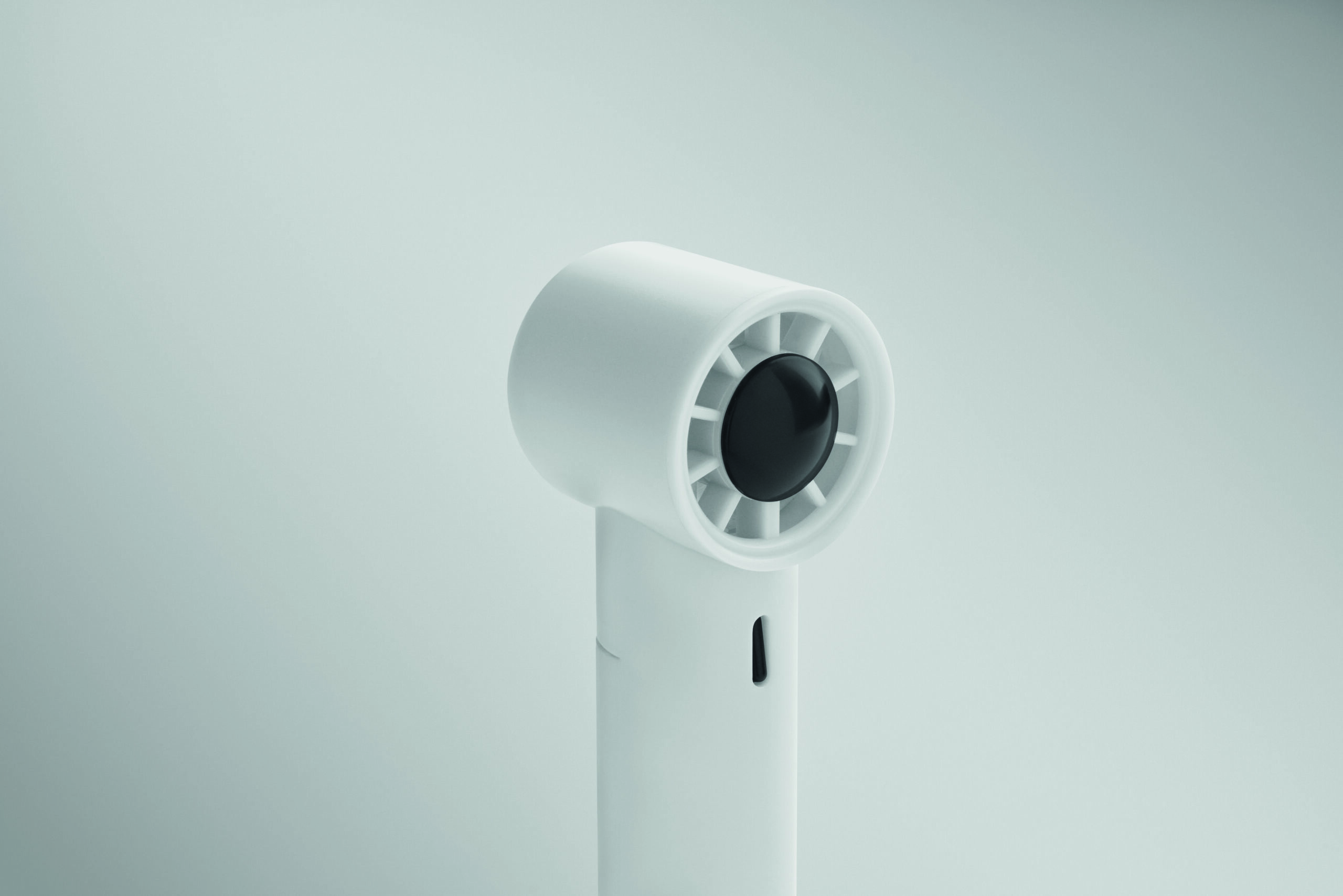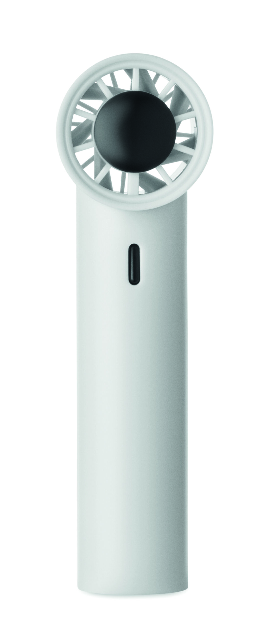 Mini wentylator ręczny z tworzywa ABS z wyświetlaczem i 5 ustawieniami prędkości. Zawiera wymienny akumulator litowy o pojemności 2600 mAh.