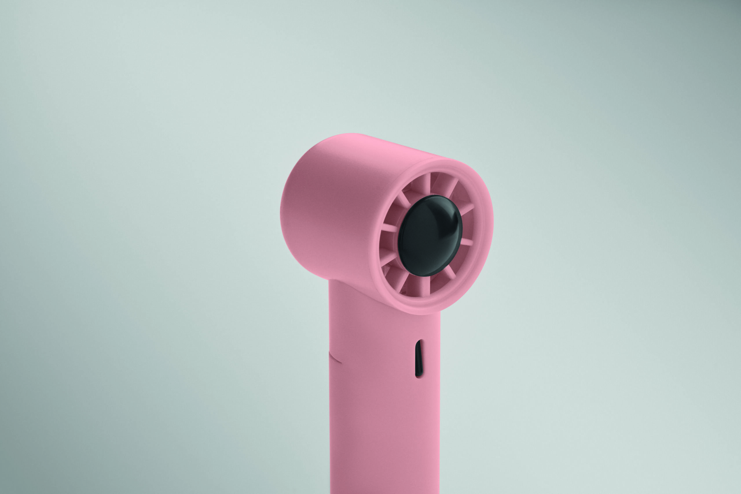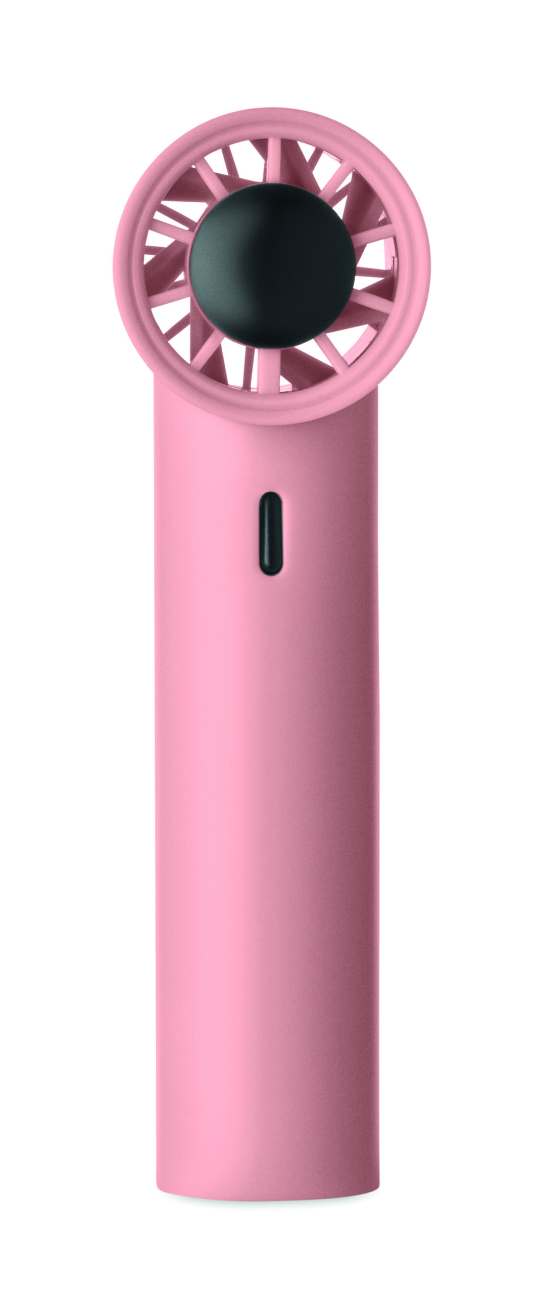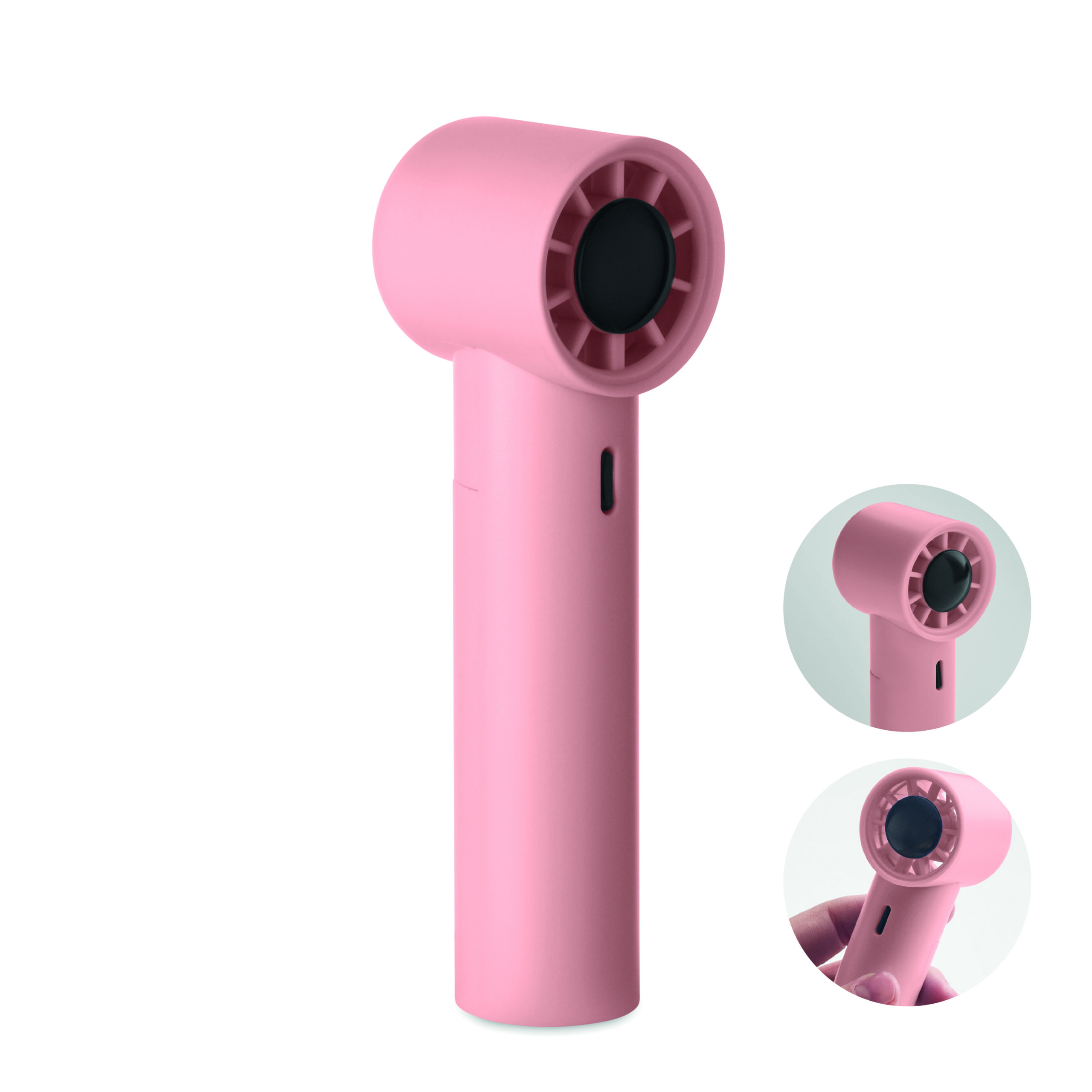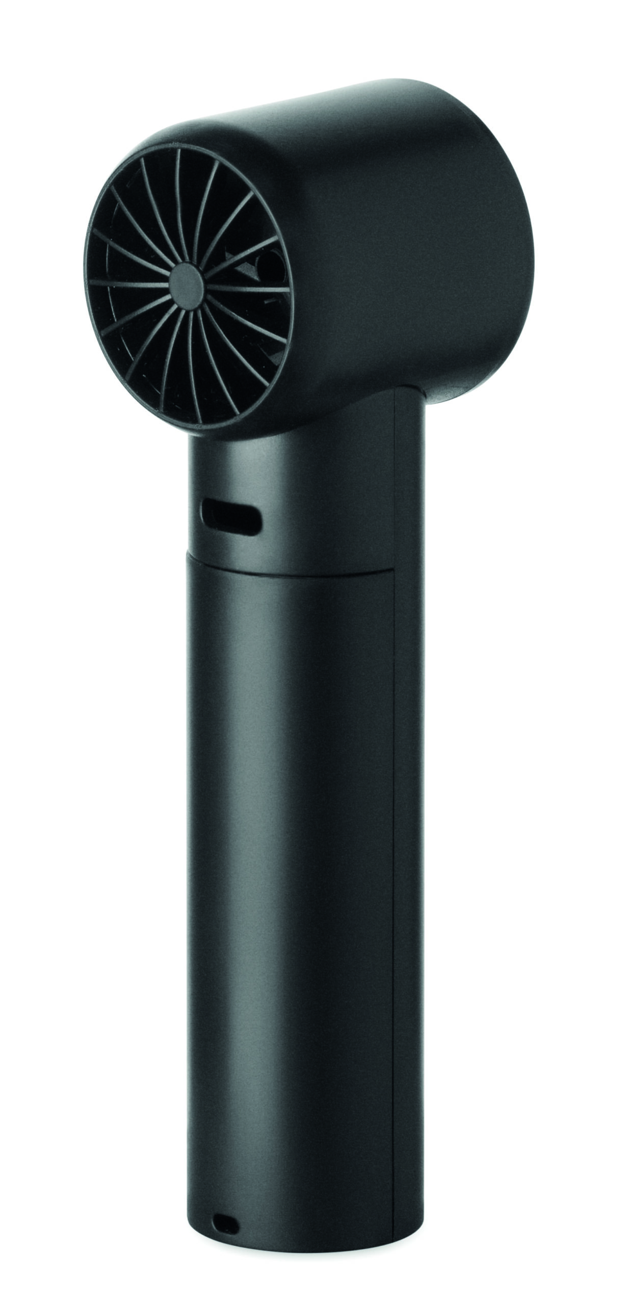 Mini wentylator ręczny z tworzywa ABS z wyświetlaczem i 5 ustawieniami prędkości. Zawiera wymienny akumulator litowy o pojemności 2600 mAh.