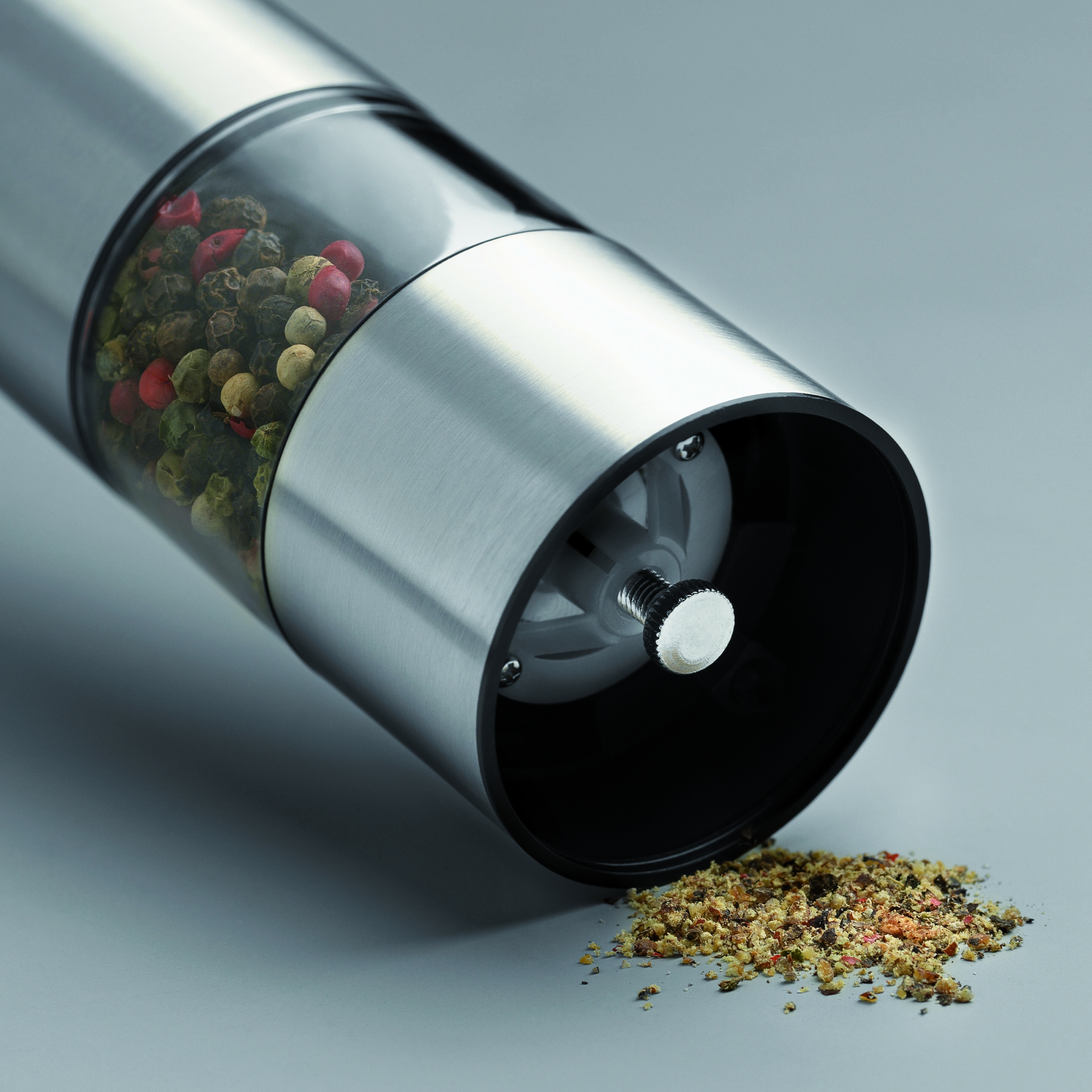 Elektryczny młynek do soli lub pieprzu ze stali nierdzewnej. Ceramiczny młynek. wymagane 4 baterie AA (brak w zestawie)