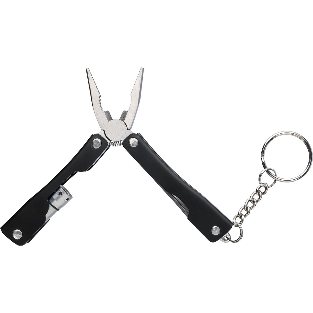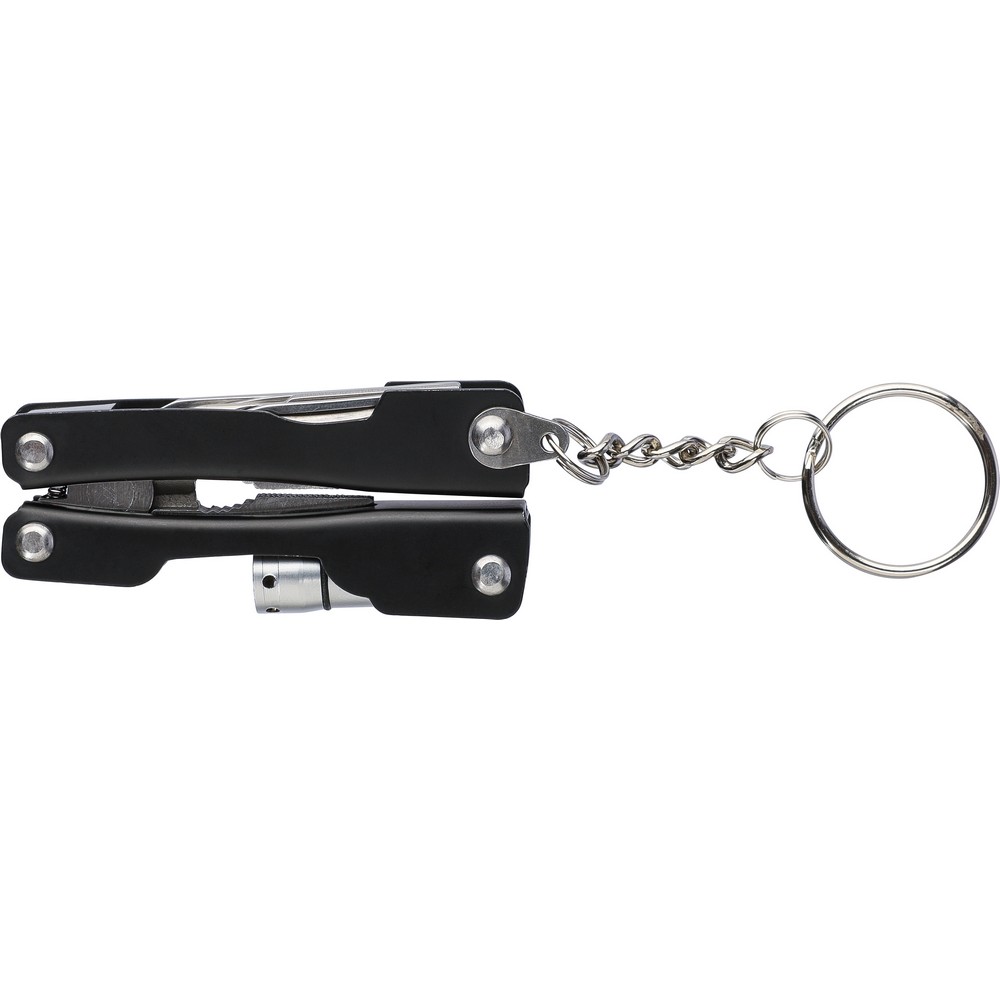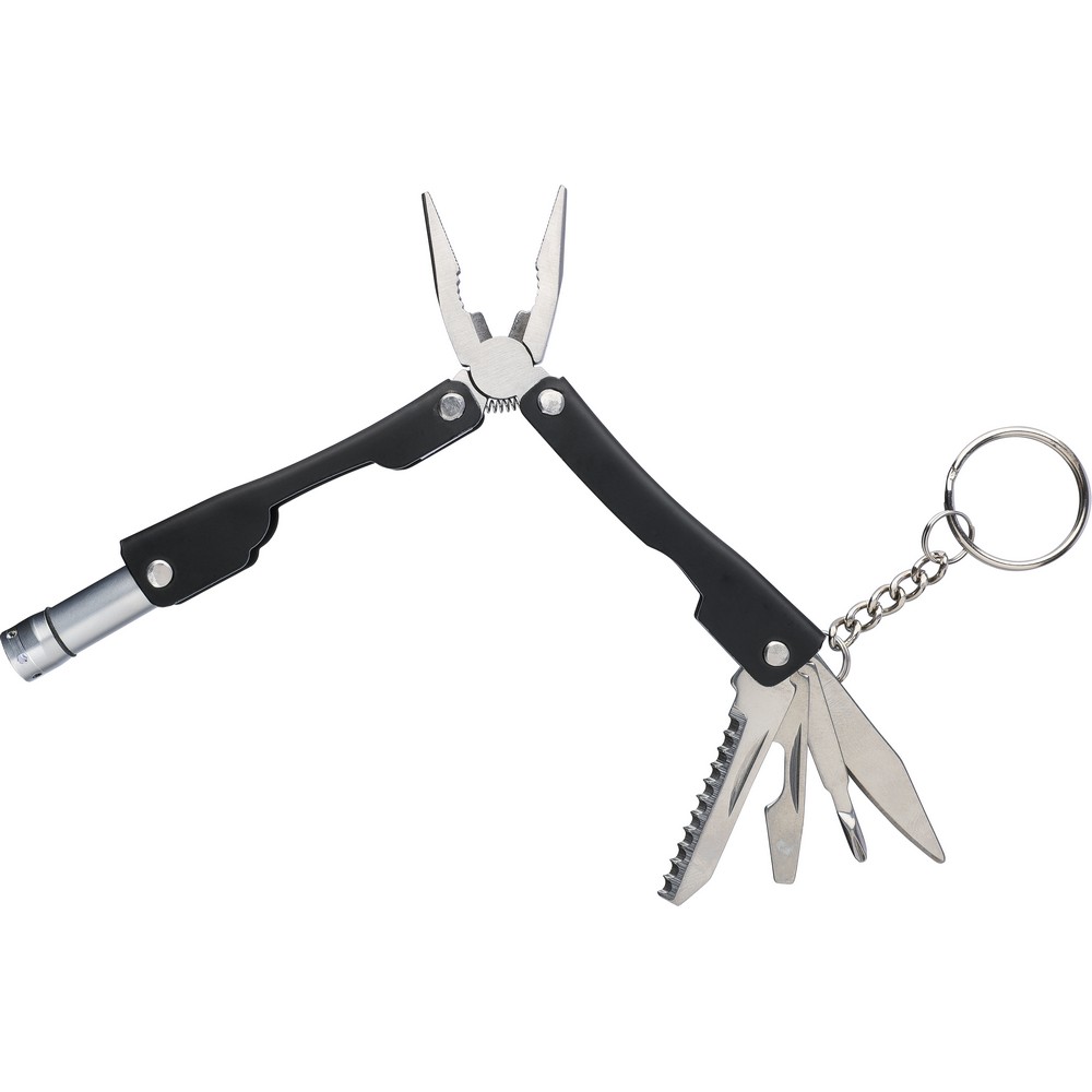 Narzędzie wielofunkcyjne, 10 funkcji: latarka, etui zapinane na rzep w zestawie (możliwe przymocowanie do paska), narzędzie zapakowane w brązowy kartonik, produkt wykonany ze stali nierdzewnej