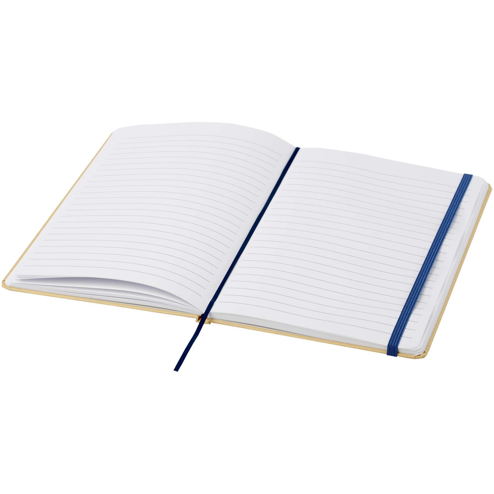 Notatnik A5 w twardej oprawie, wykonany z kartonu pochodzącego z recyklingu, zawierający 80 kartek w linie o gramaturze papieru 70 g/m². Notatnik posiada elastyczne zamknięcie, wstążkę i zaokrąglone rogi.