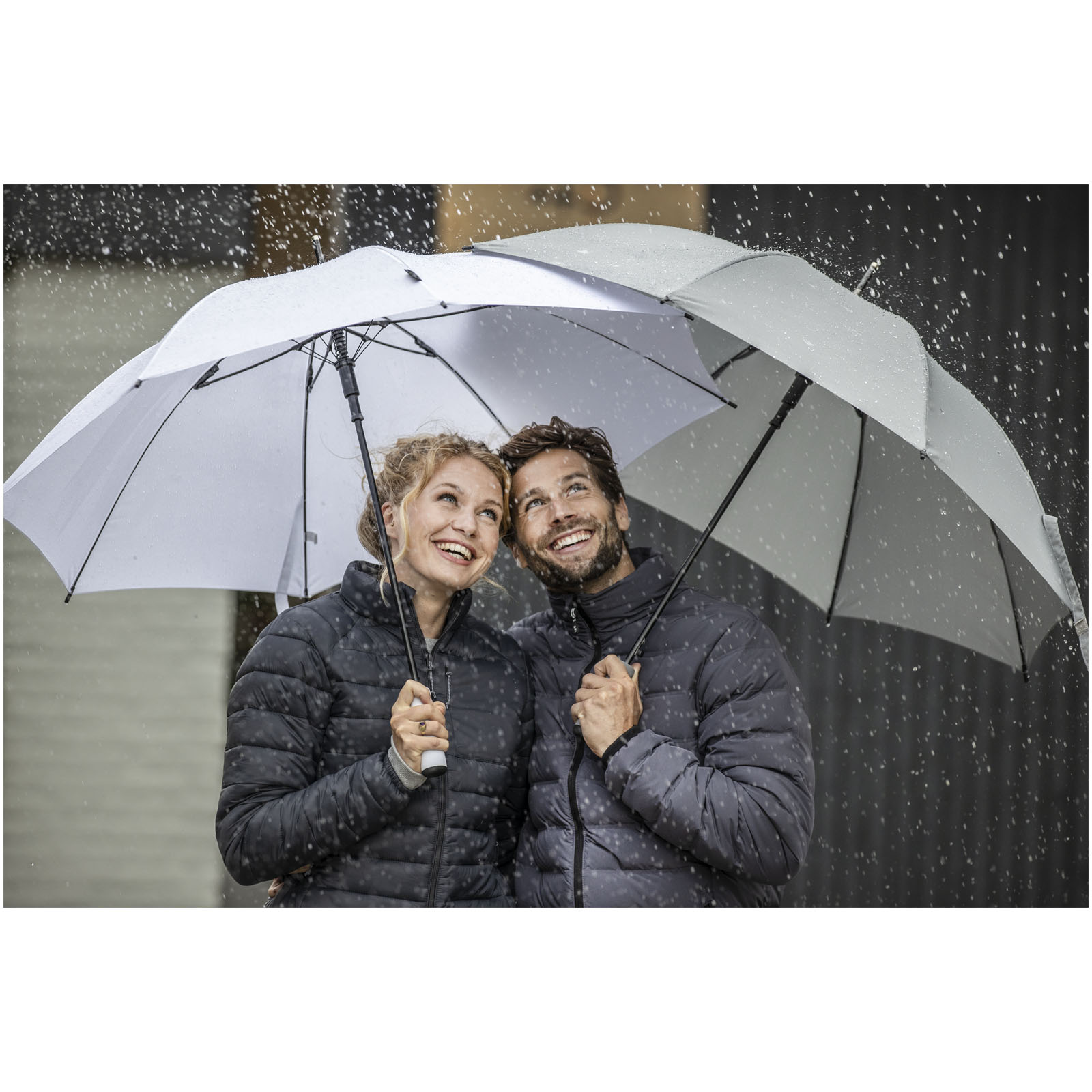 Automatycznie otwierany parasol o średnicy 58,42 cm z czaszą z poliestru Pongee z plastiku PET z recyklingu. Posiada solidny metalowy trzonek, ramę z włókna szklanego i wygodny uchwyt EVA z dopasowaną kolorystycznie końcówką. Duży obszar nadruku na każdym z paneli.