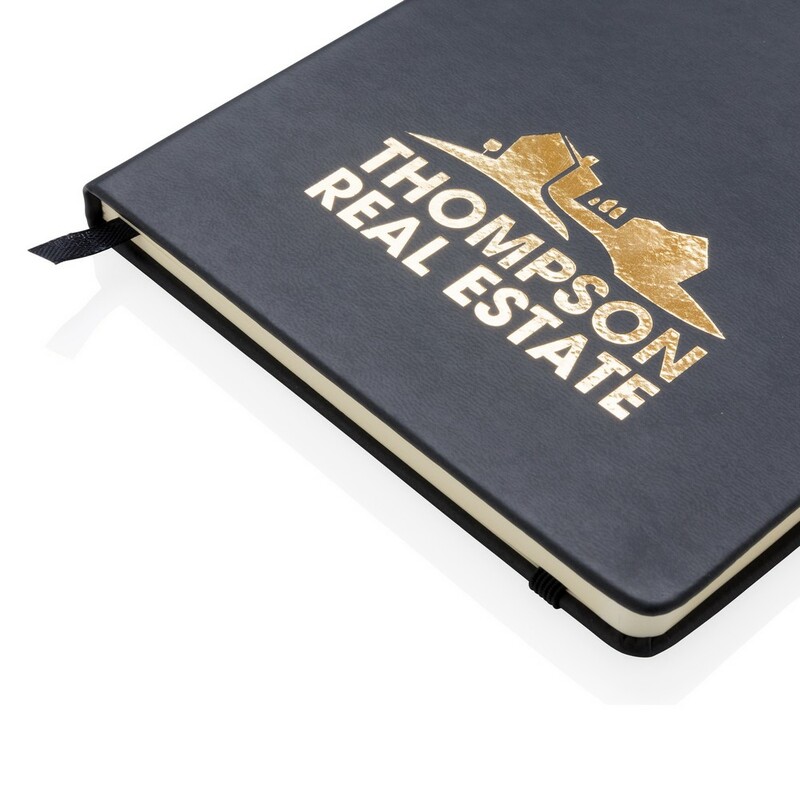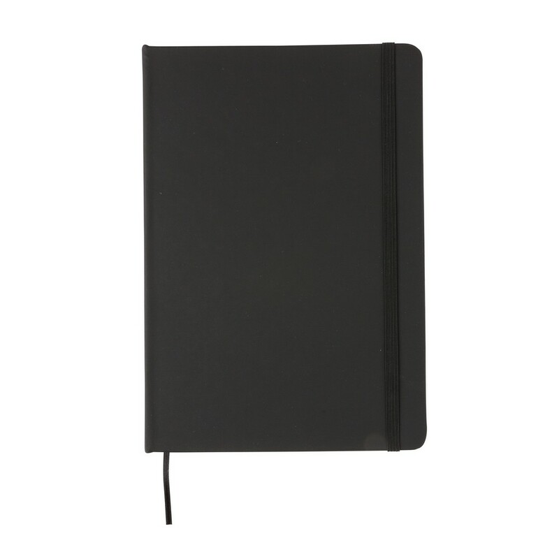 Notatnik A5 (72 kremowe kartki 70 g/m2 w linie), twarda okładka wykonana z PU, tasiemka zakładkowa oraz elastyczna opaska do zamykania, ślad węglowy produktu: 0,63 kg CO2