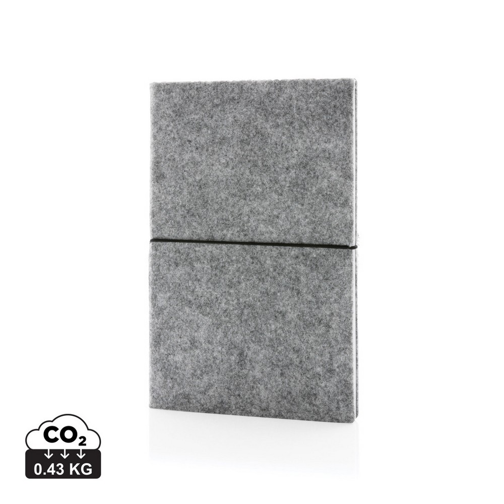 Notatnik (80 kartek 70g/m2 w linie), wykonany z materiałów pochodzących z recyklingu z certyfikatem GRS, całkowita zawartość materiałów z recyklingu obliczona na podstawie wagi całkowitej produktu: 99%, ślad węglowy produktu: 0,43 kg CO2