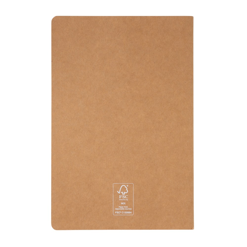 Notatnik A5, (46 kremowych kartek w linie), miękka okładka, okładka oraz strony wewnętrzne posiadają certyfikat FSC® (Forest Stewardship Council), ślad węglowy produktu: 0,25 kg CO2