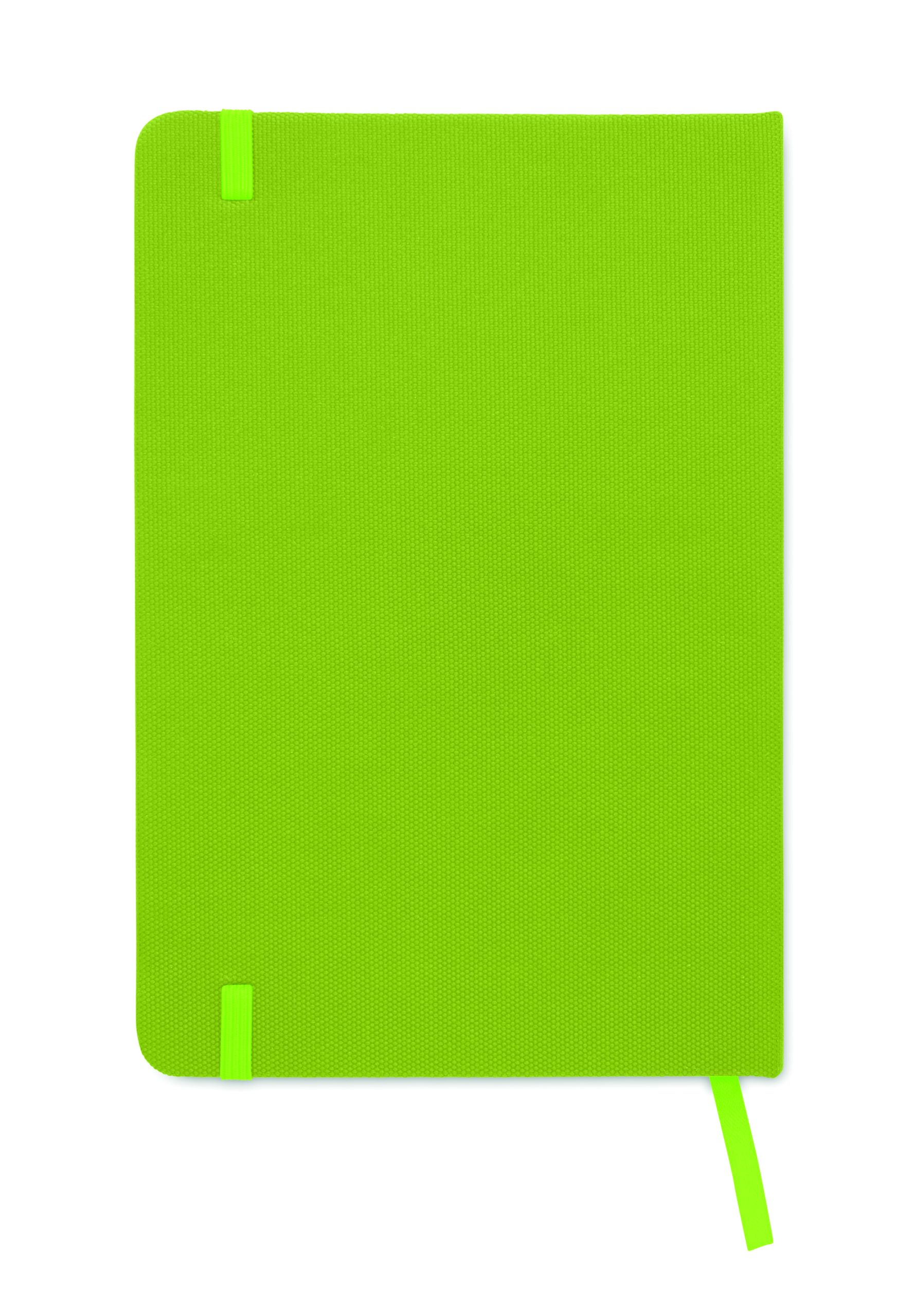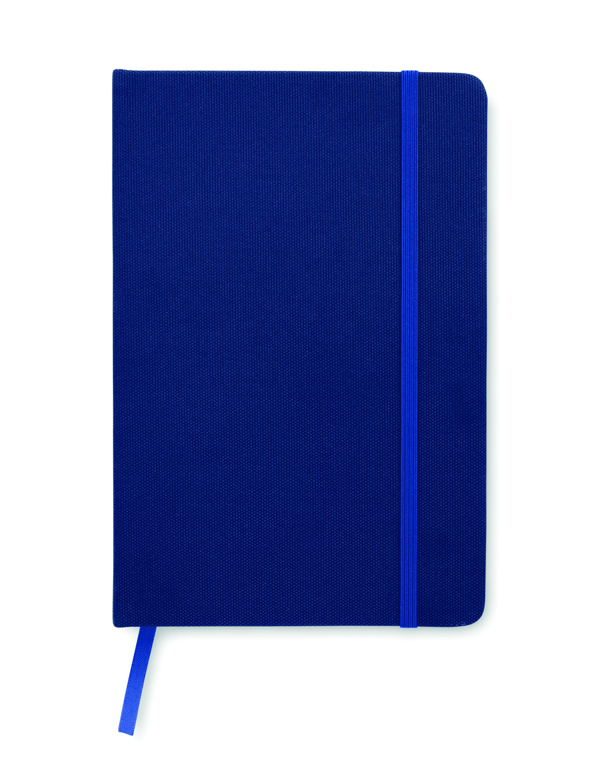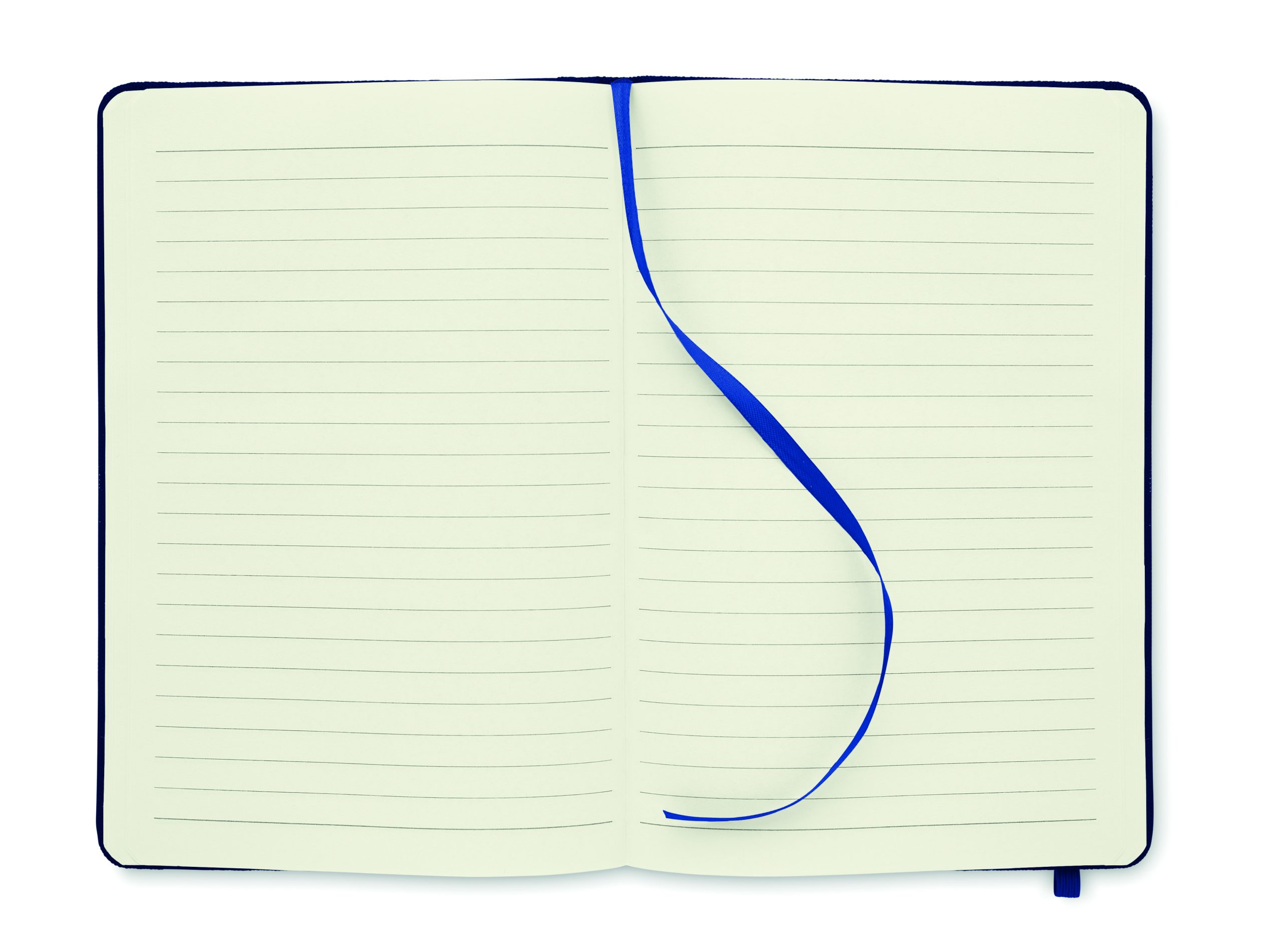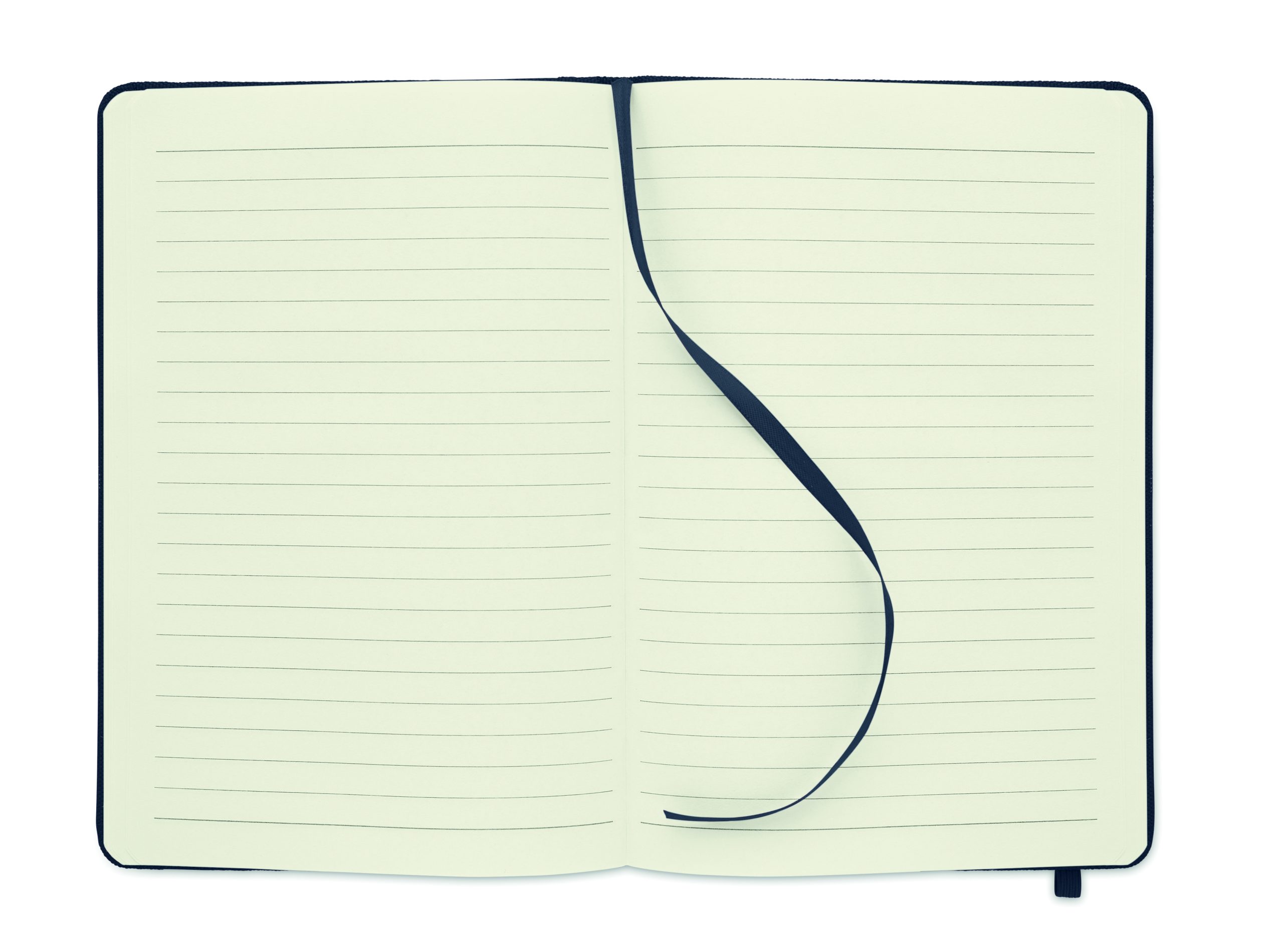 Notatnik A5 z twardą okładką 600D RPET. 160 stron (80 kartek) w linie z papieru ekologicznego. Dopasowany elastyczny pasek zamykający i zakładka z tasiemki. FSC®-certified | FSC MIX CREDIT, P7.1, FSC-C213206