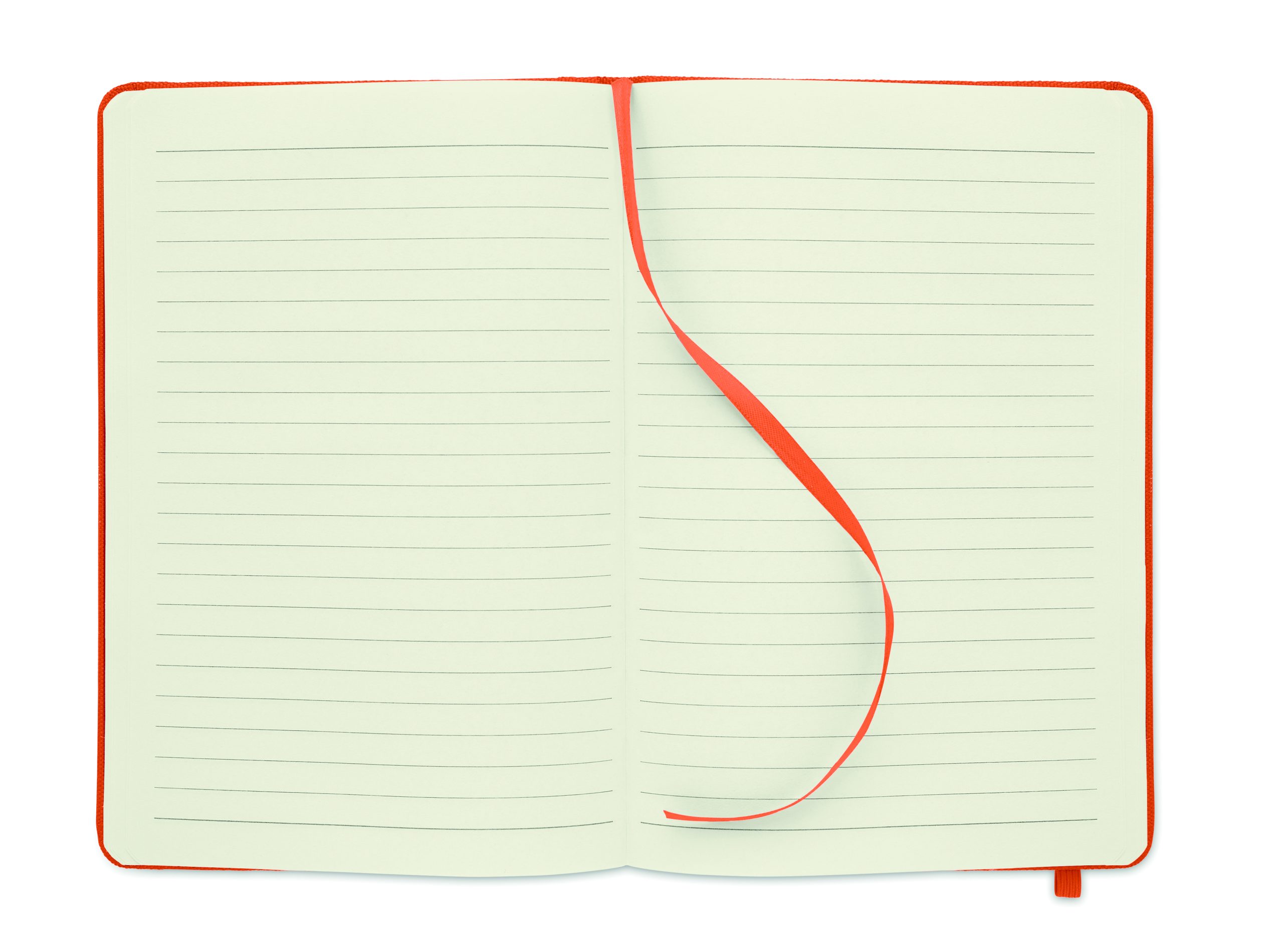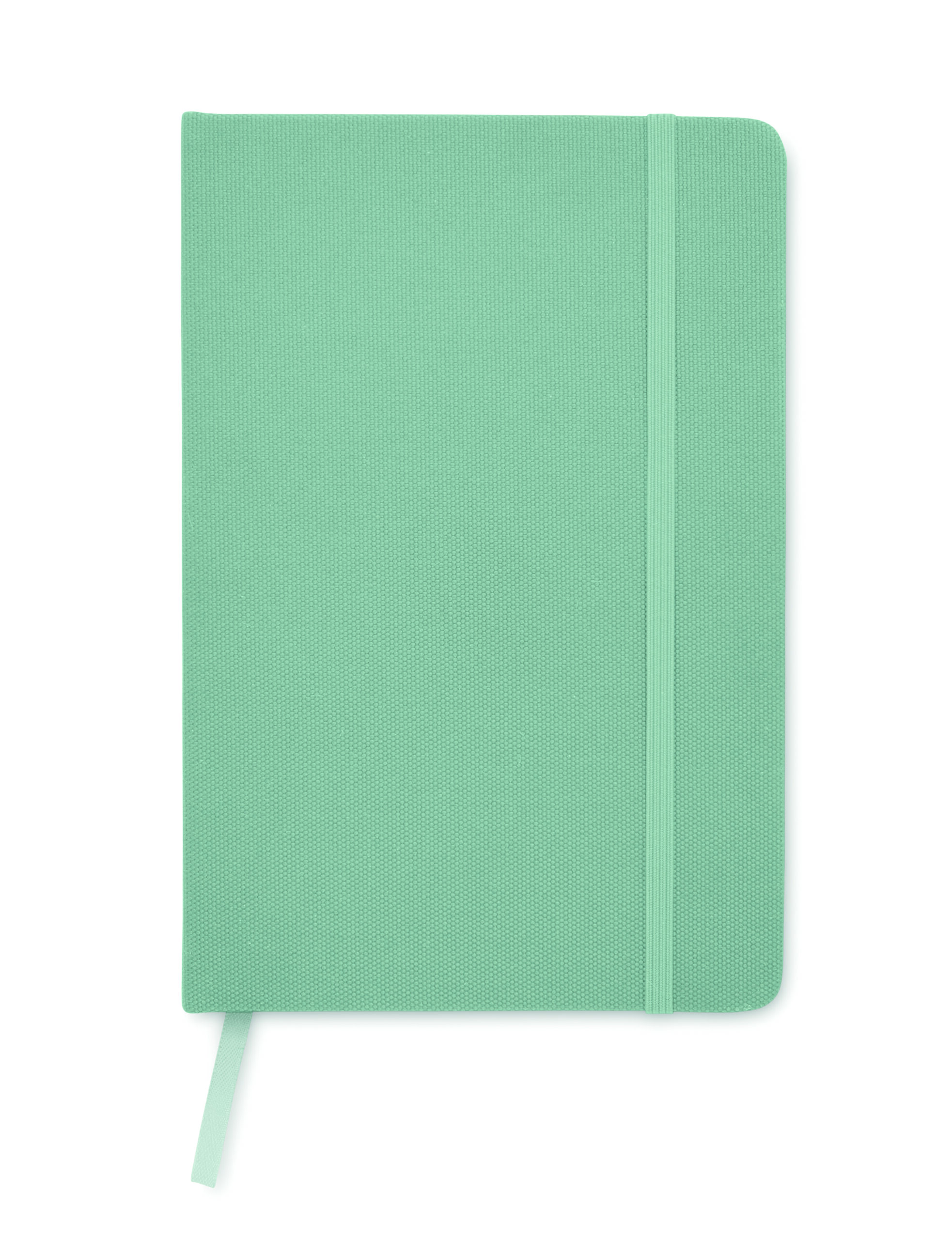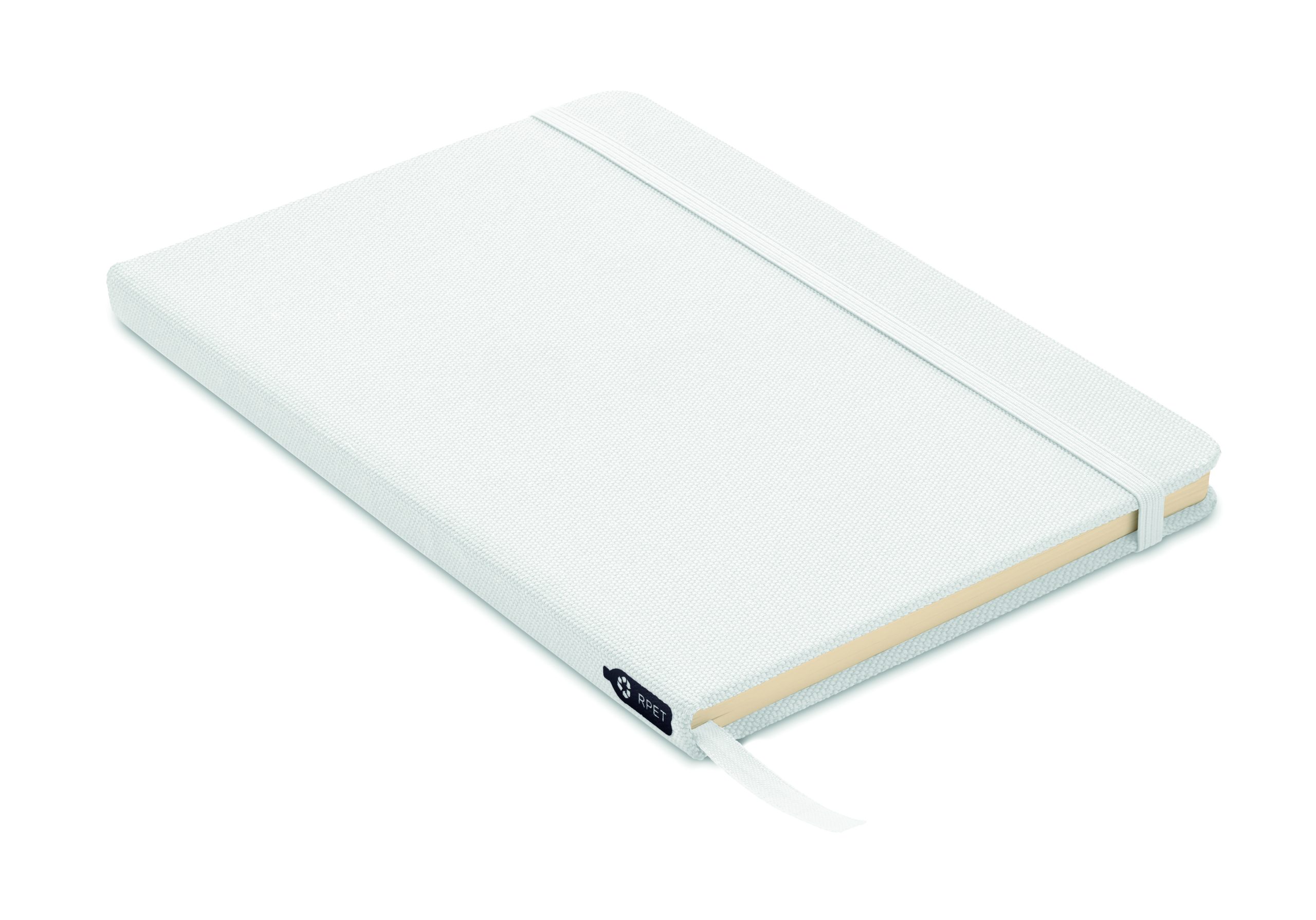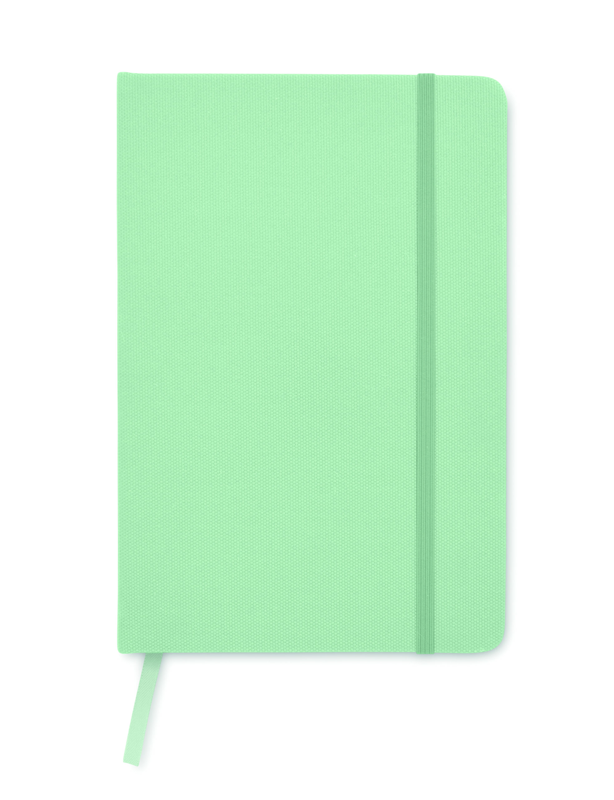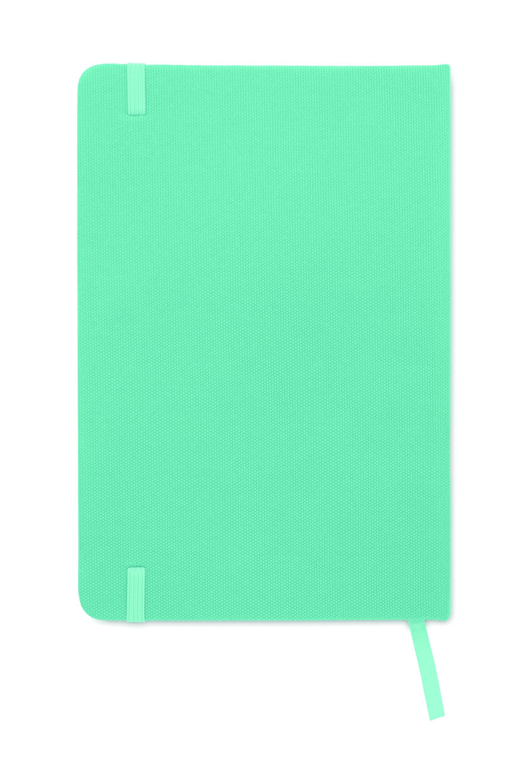 Notatnik A5 z twardą okładką 600D RPET. 160 stron (80 kartek) w linie z papieru ekologicznego. Dopasowany elastyczny pasek zamykający i zakładka z tasiemki. FSC®-certified | FSC MIX CREDIT, P7.1, FSC-C213206