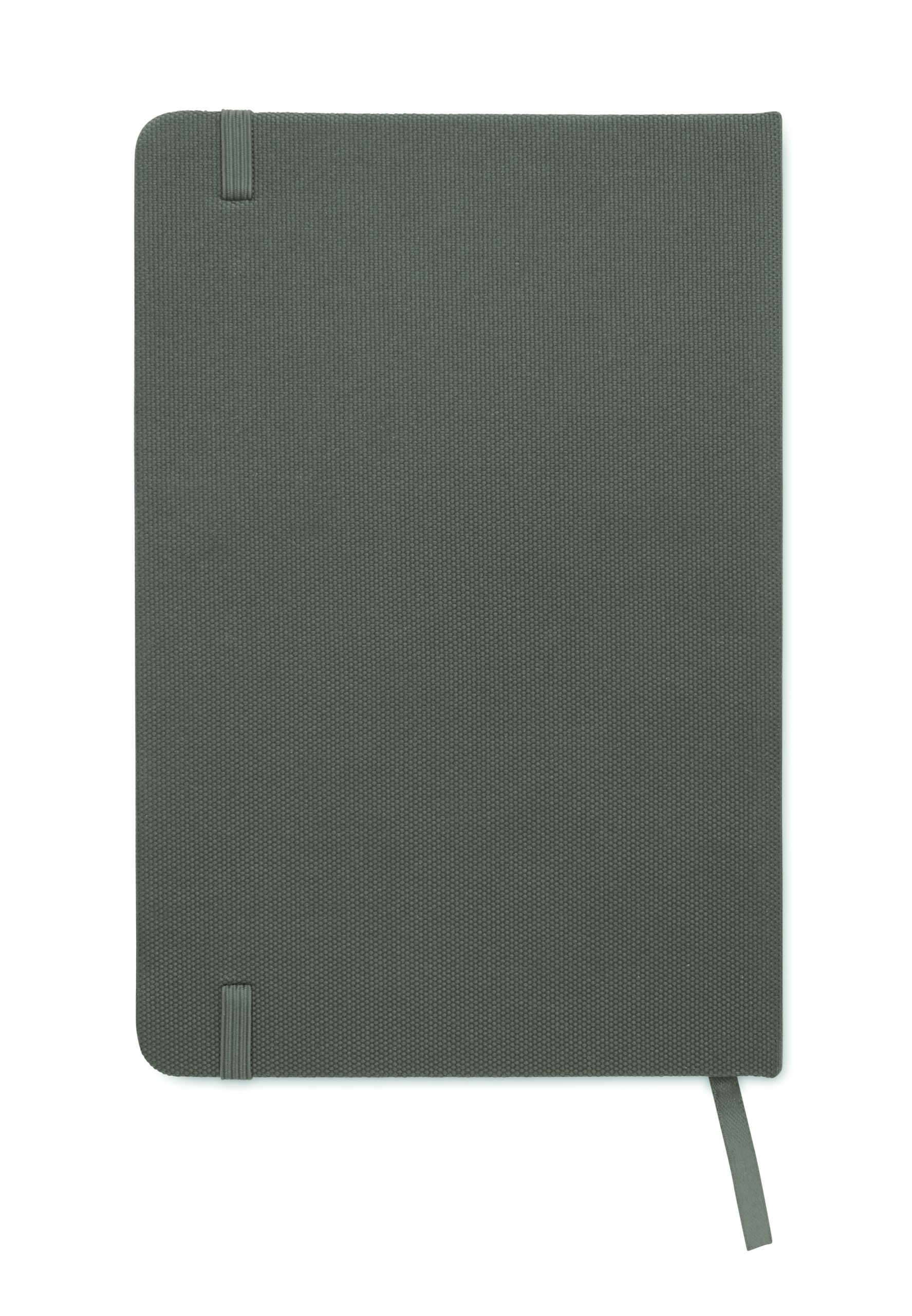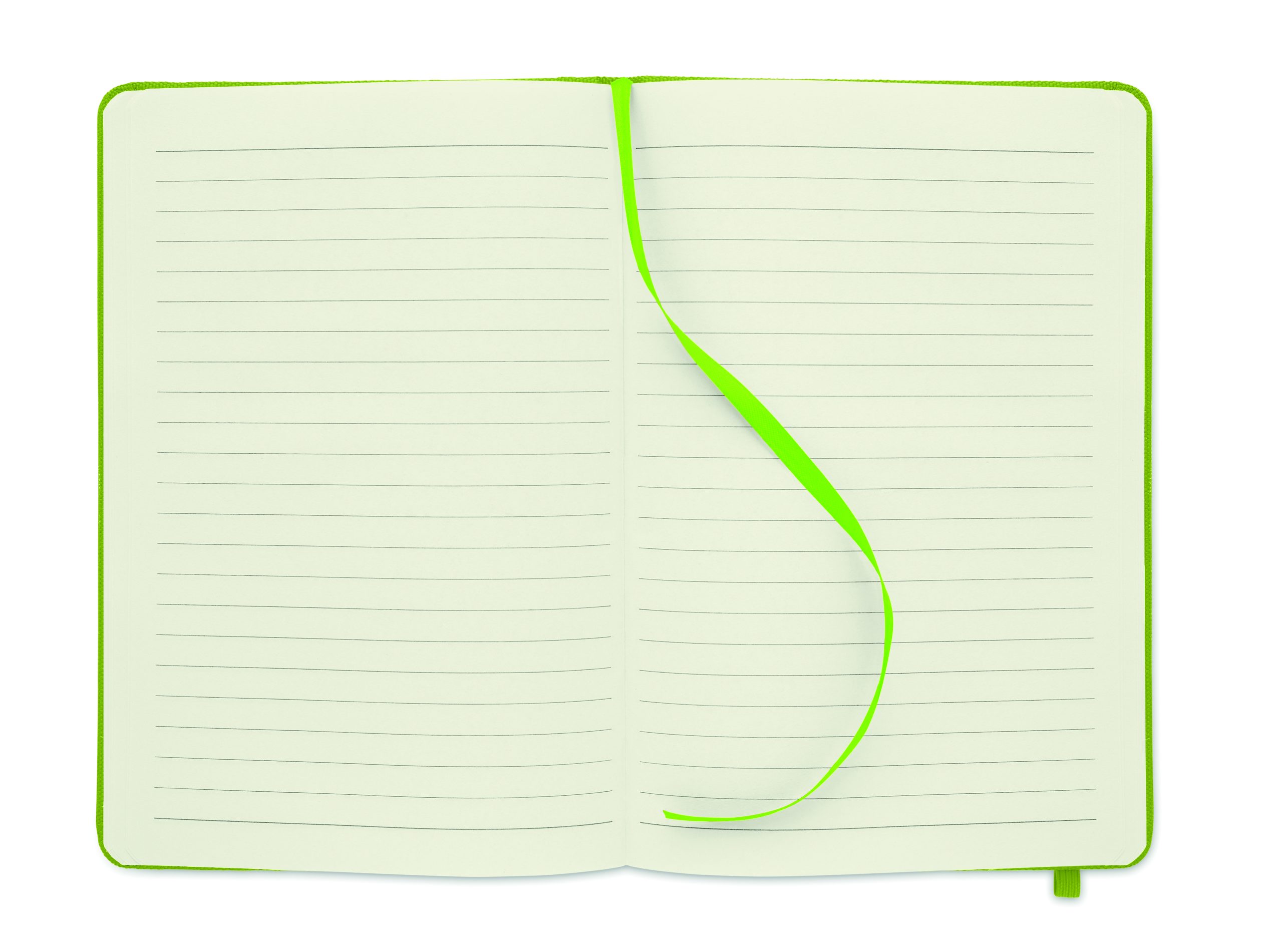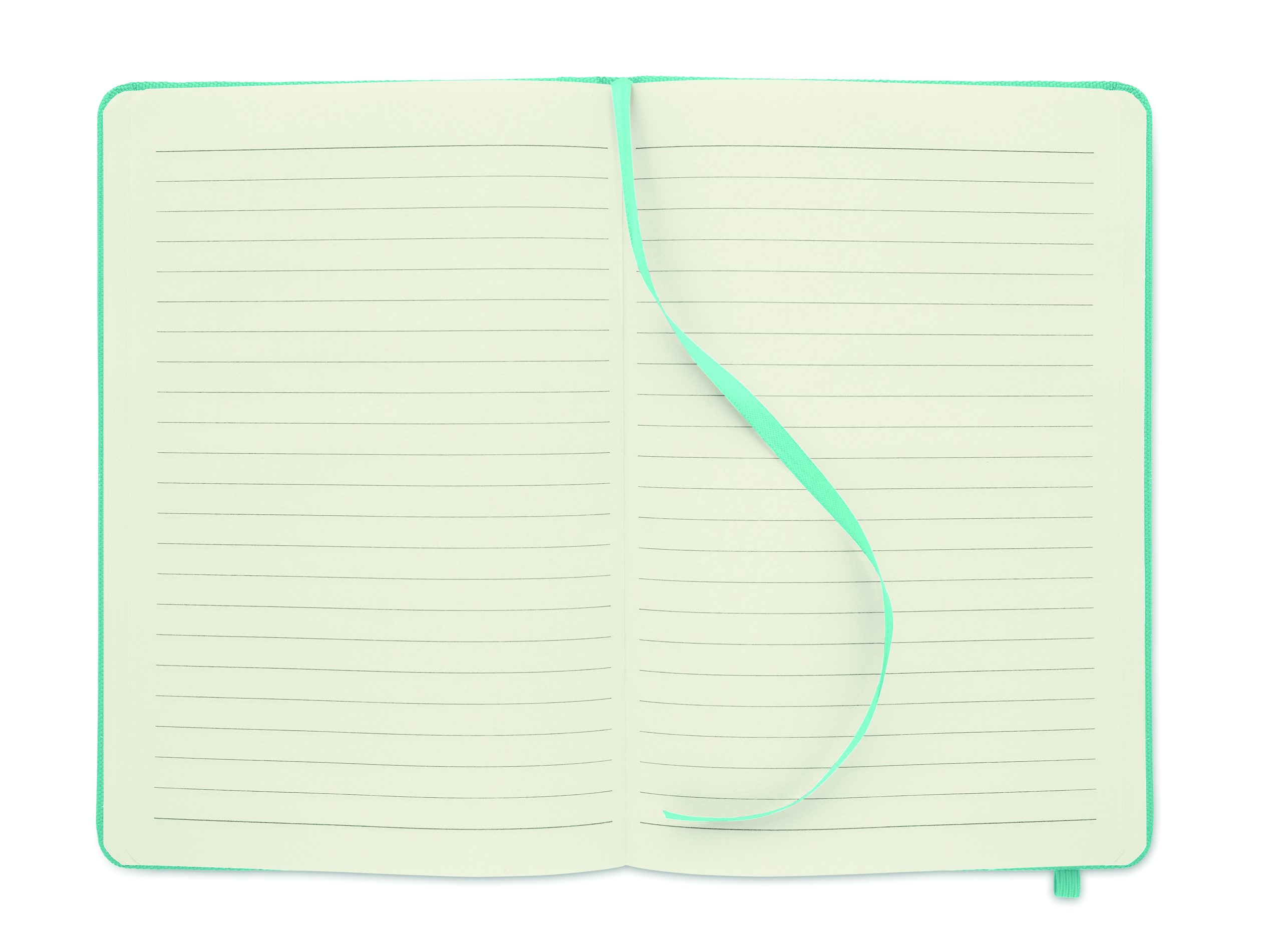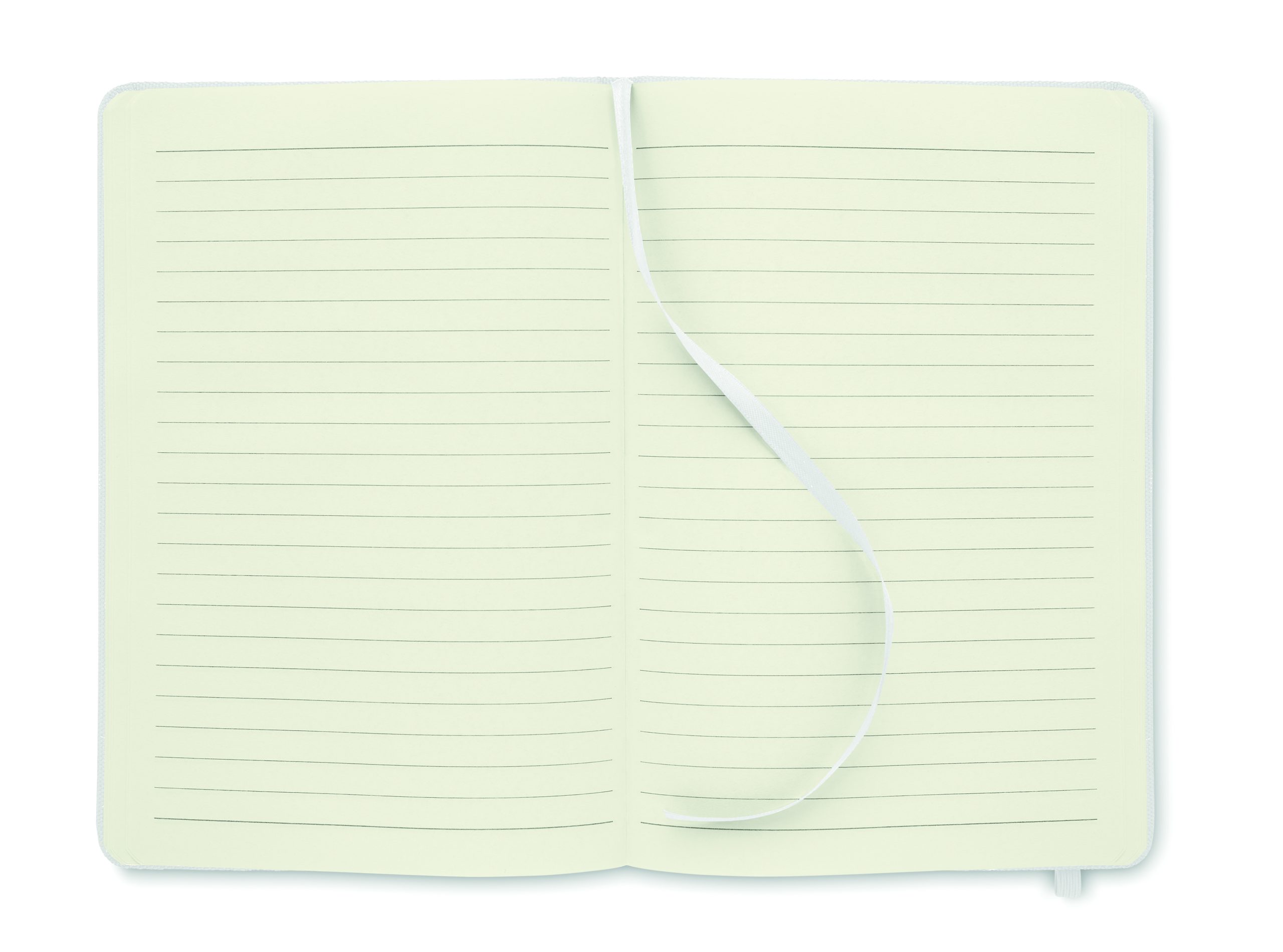 Notatnik A5 z twardą okładką 600D RPET. 160 stron (80 kartek) w linie z papieru ekologicznego. Dopasowany elastyczny pasek zamykający i zakładka z tasiemki. FSC®-certified | FSC MIX CREDIT, P7.1, FSC-C213206