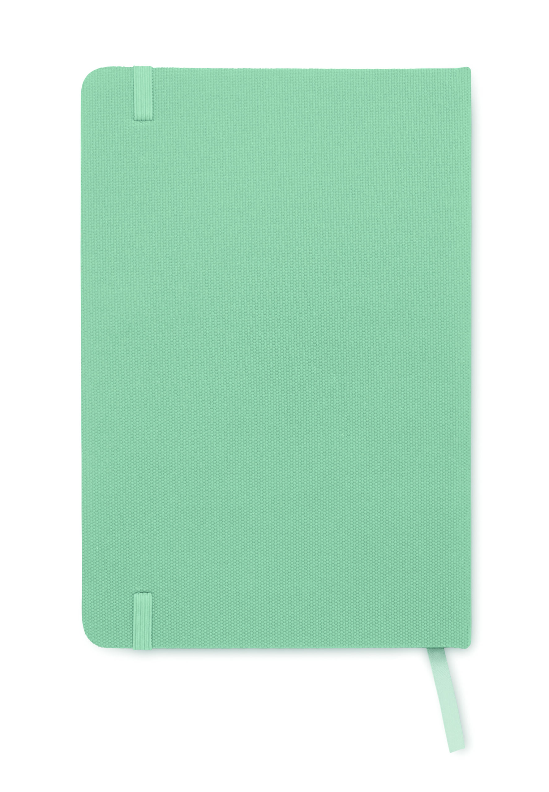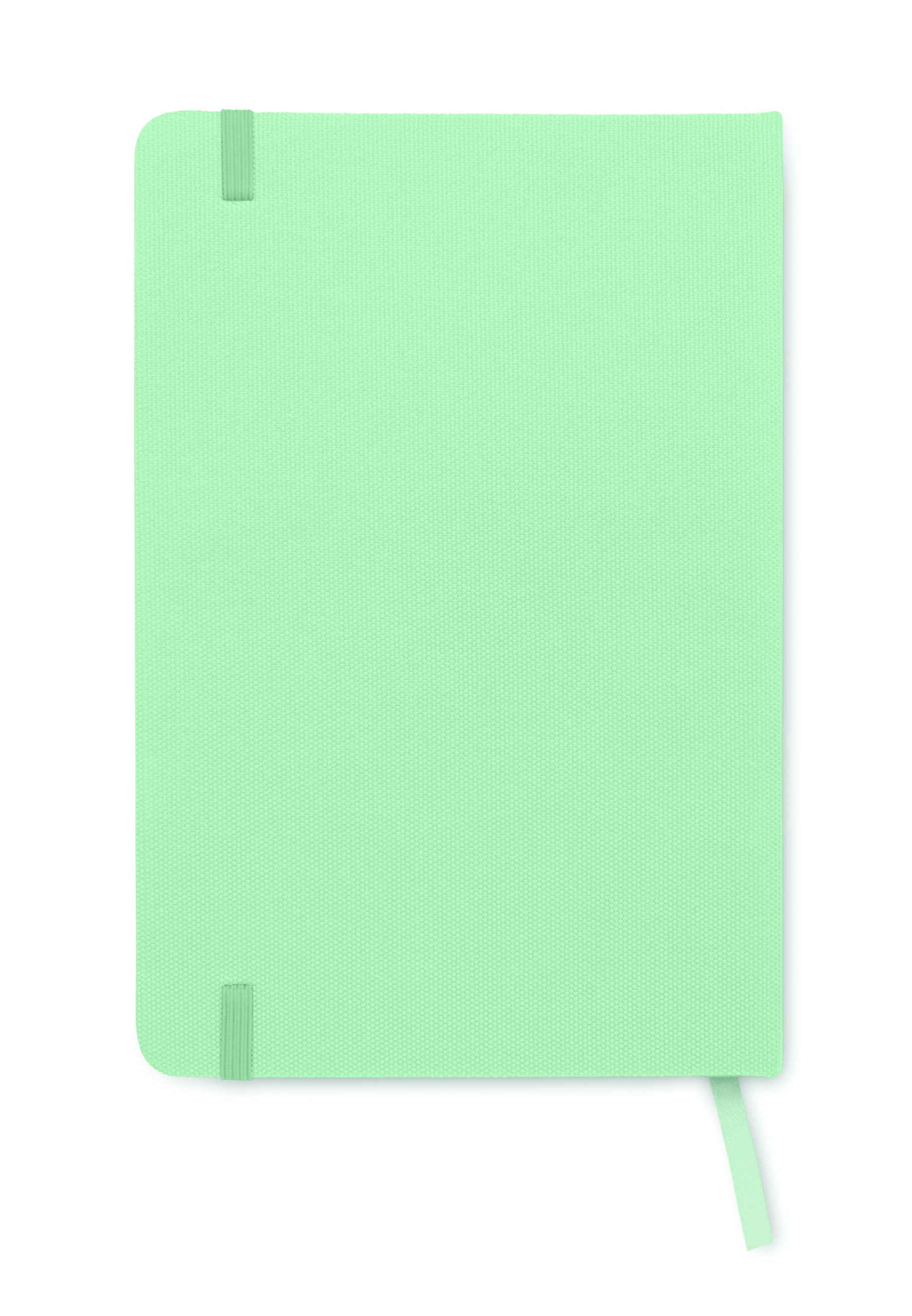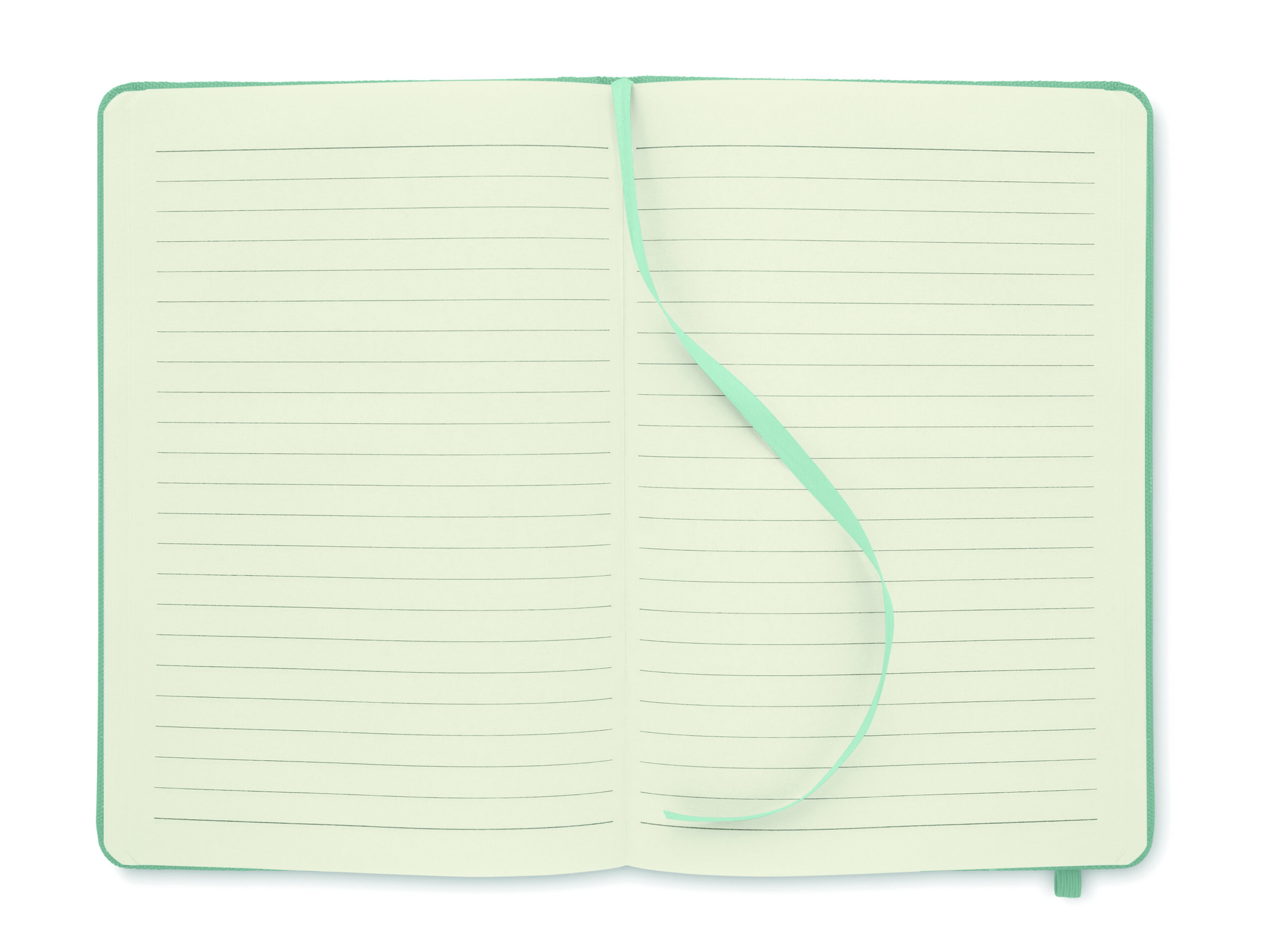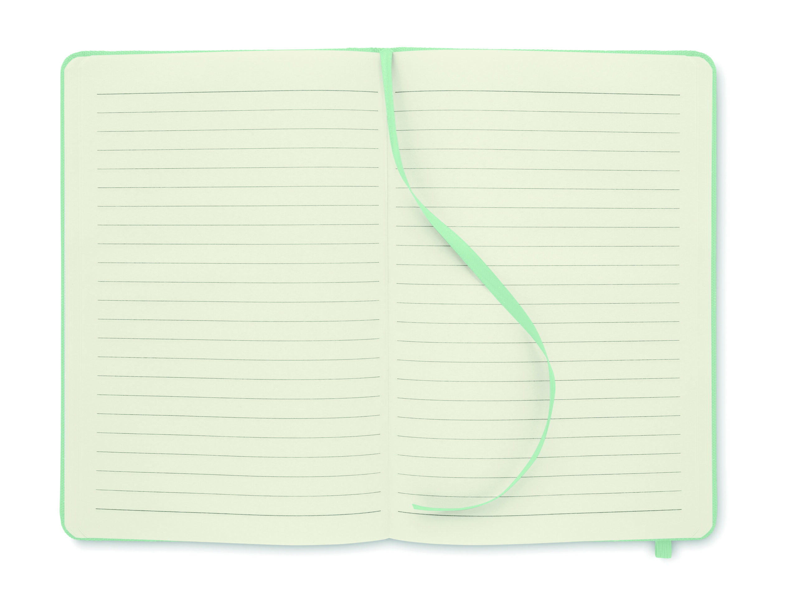 Notatnik A5 z twardą okładką 600D RPET. 160 stron (80 kartek) w linie z papieru ekologicznego. Dopasowany elastyczny pasek zamykający i zakładka z tasiemki. FSC®-certified | FSC MIX CREDIT, P7.1, FSC-C213206
