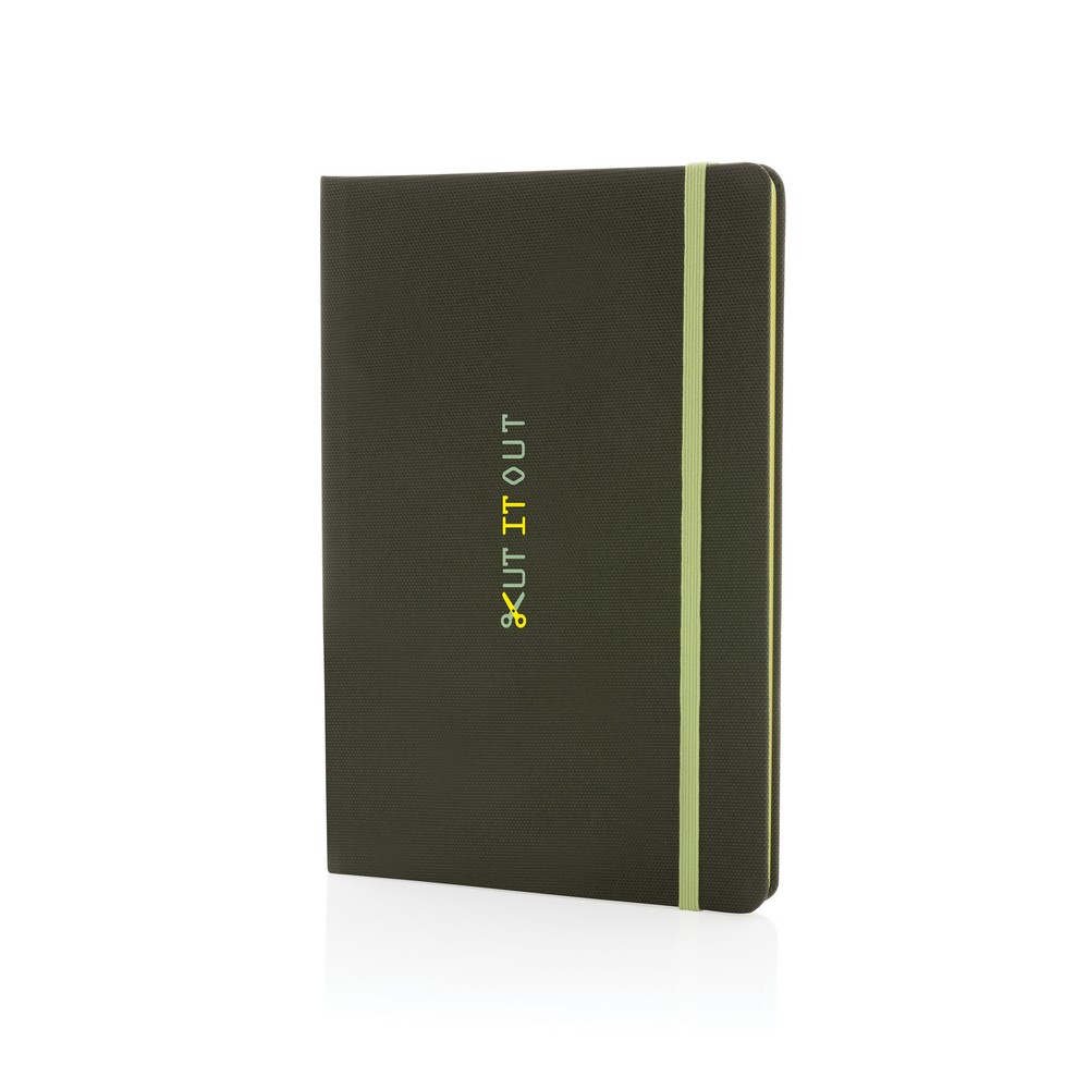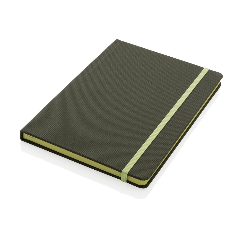 Notatnik (80 kartek 70g/m2 w linie), wykonany z materiałów pochodzących z recyklingu z certyfikatem GRS, całkowita zawartość materiałów z recyklingu obliczona na podstawie wagi całkowitej produktu: 68%, ślad węglowy produktu: 0,65 kg CO2