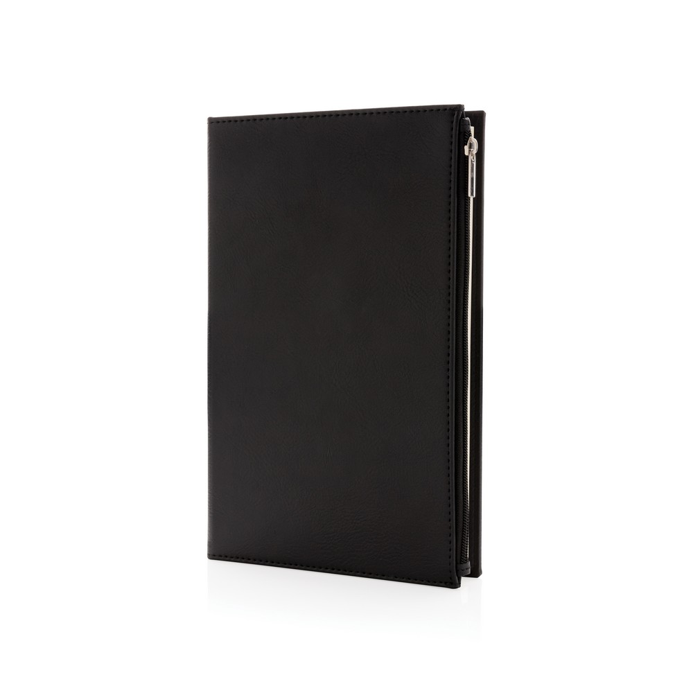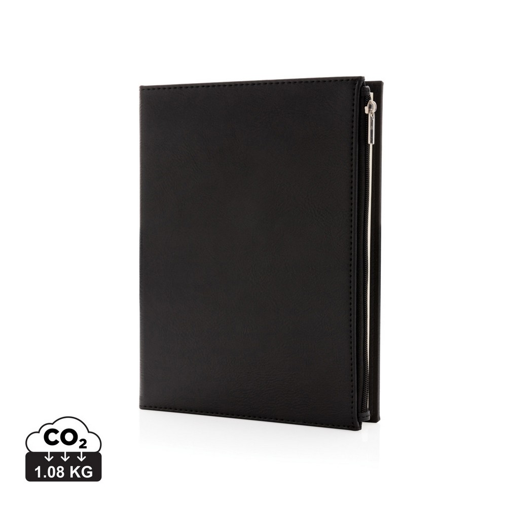 Notatnik A5 (80 kremowych kartek 80 g/m2 w linie), kieszeń na zamek błyskawiczny na przedniej okładce, w ozdobnym pudełku, ślad węglowy produktu: 1,08 kg CO2
