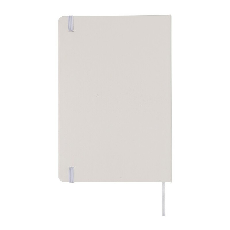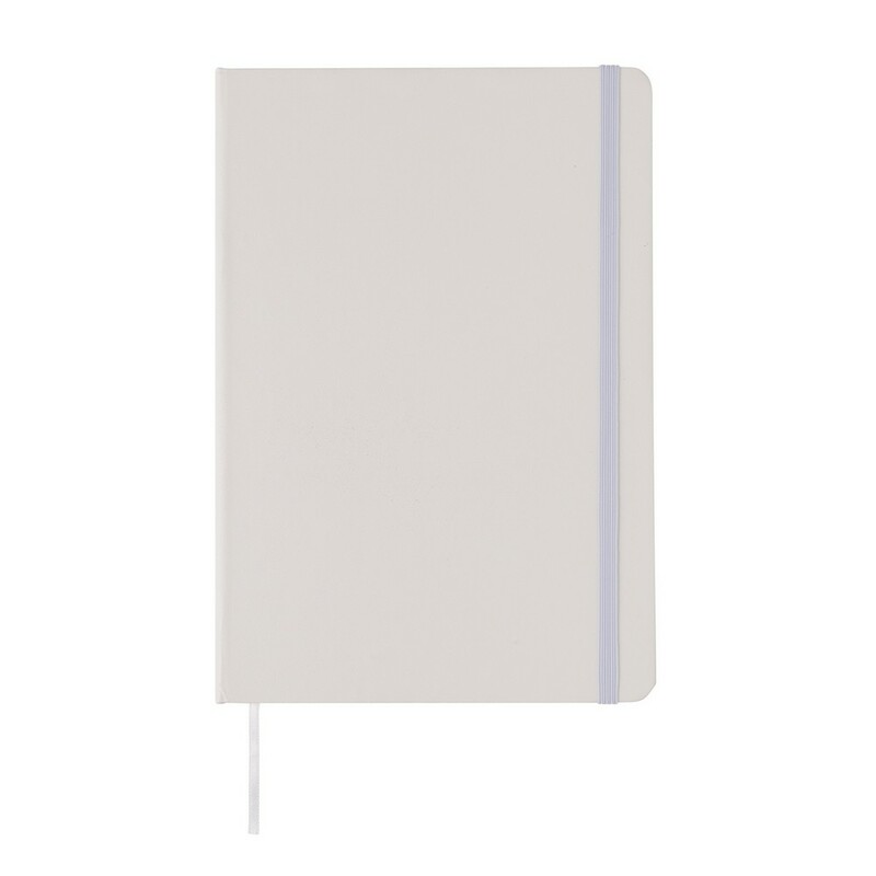Notatnik A5 (72 puste kartki 70 g/m2 w kolorze kremowym), szkicownik, twarda okładka, tasiemka zakładkowa oraz elastyczna opaska do zamykania, ślad węglowy produktu: 0,54 kg CO2