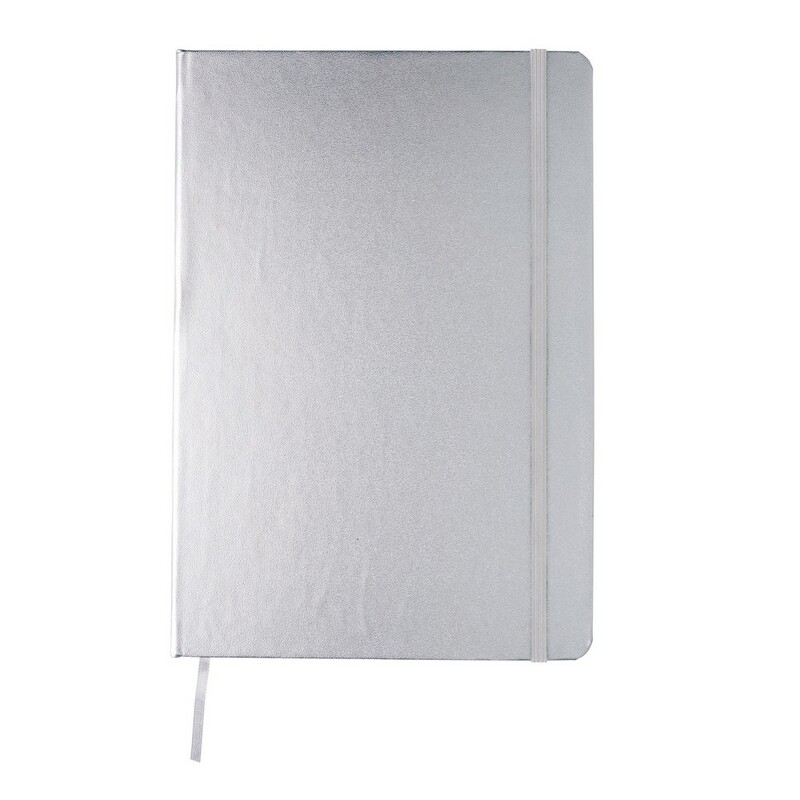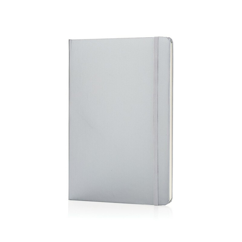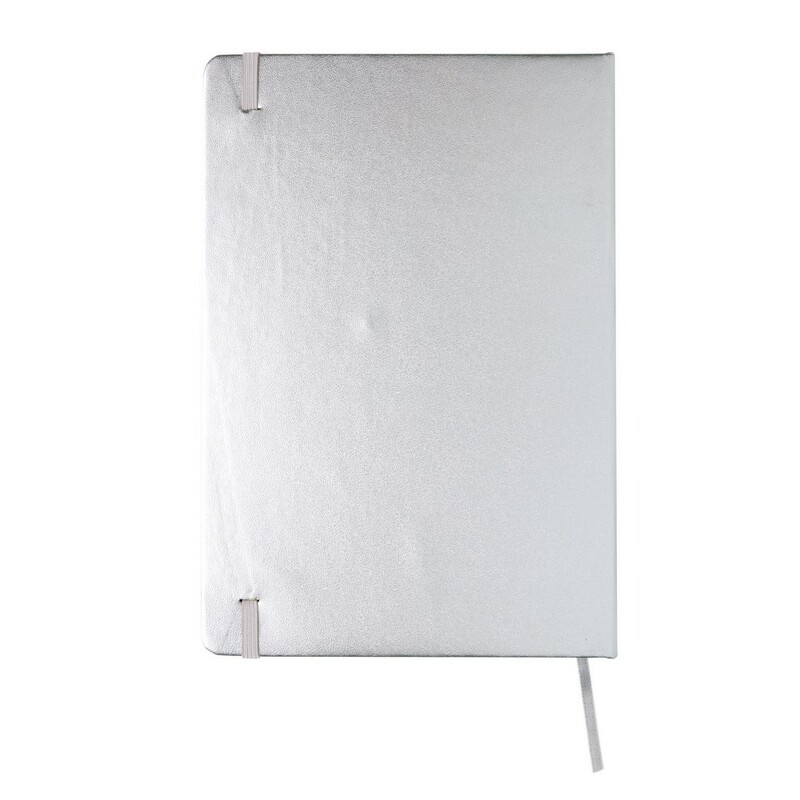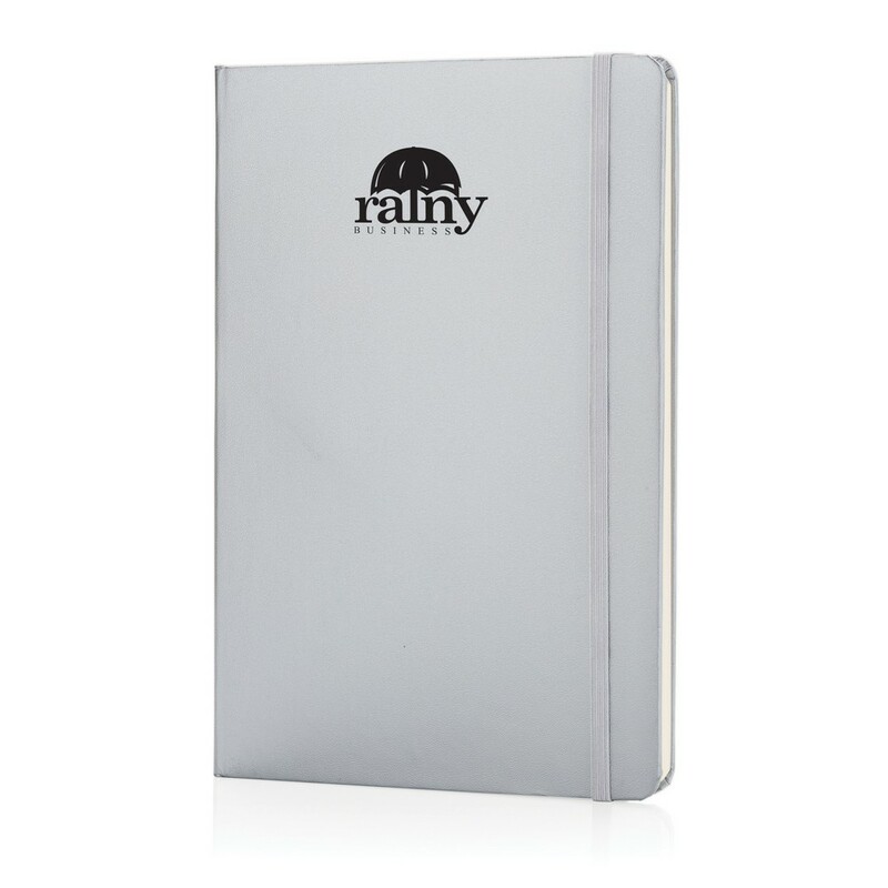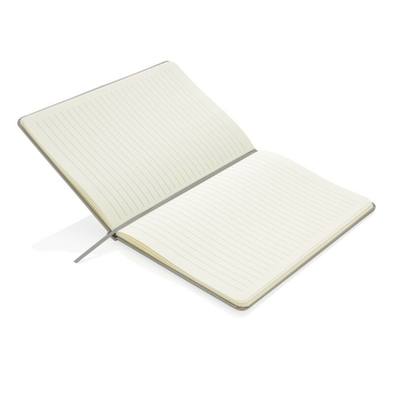 Notatnik A5 (72 kremowe kartki 70 g/m2 w linie), twarda okładka, tasiemka zakładkowa i elastyczna opaska do zamykania, ślad węglowy produktu: 0,54 kg CO2