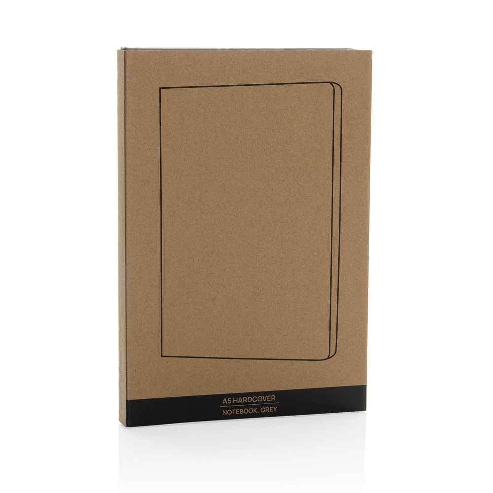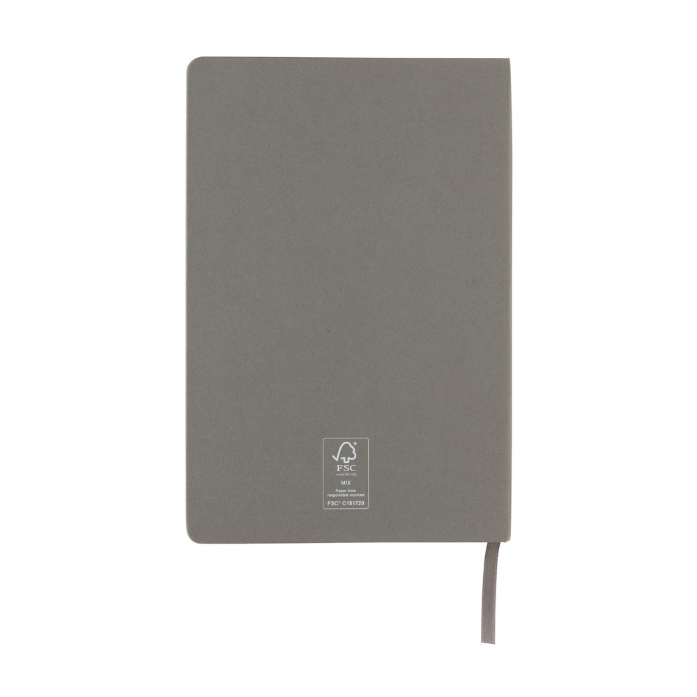 Notatnik A5, (80 kremowych kartek w linie), twarda okładka, okładka oraz strony wewnętrzne posiadają certyfikat FSC® (Forest Stewardship Council), tasiemka zakładkowa, ślad węglowy produktu: 0,52 kg CO2