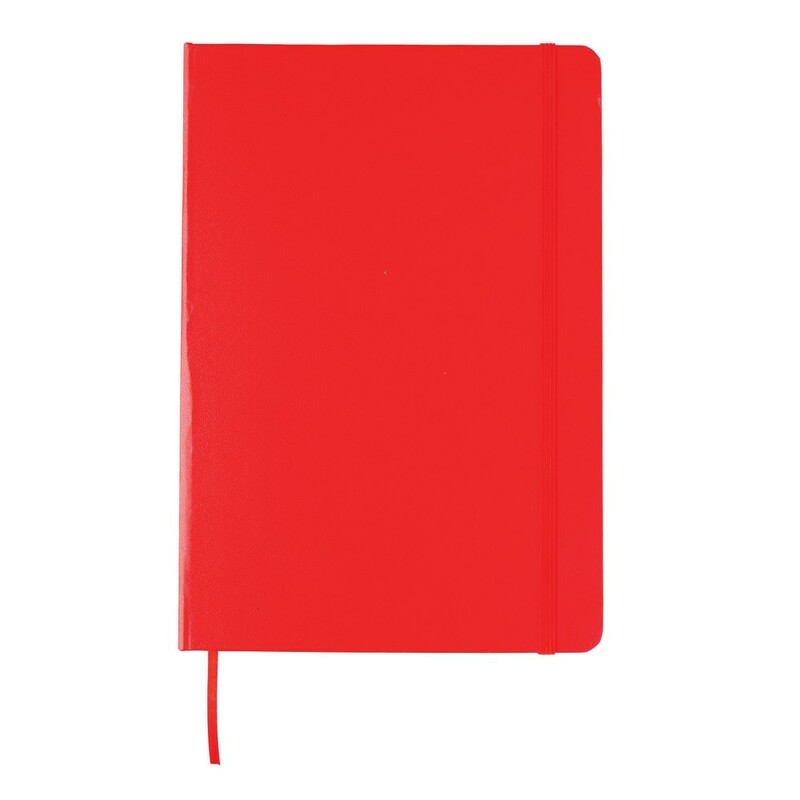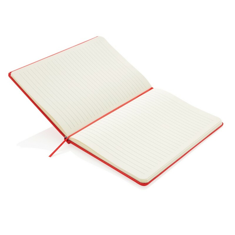 Notatnik A5 (72 kremowe kartki 70 g/m2 w linie), twarda okładka, tasiemka zakładkowa i elastyczna opaska do zamykania, ślad węglowy produktu: 0,54 kg CO2