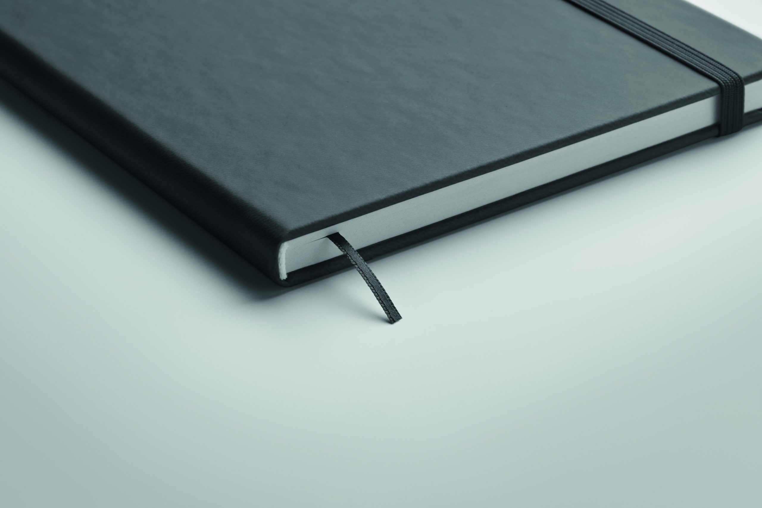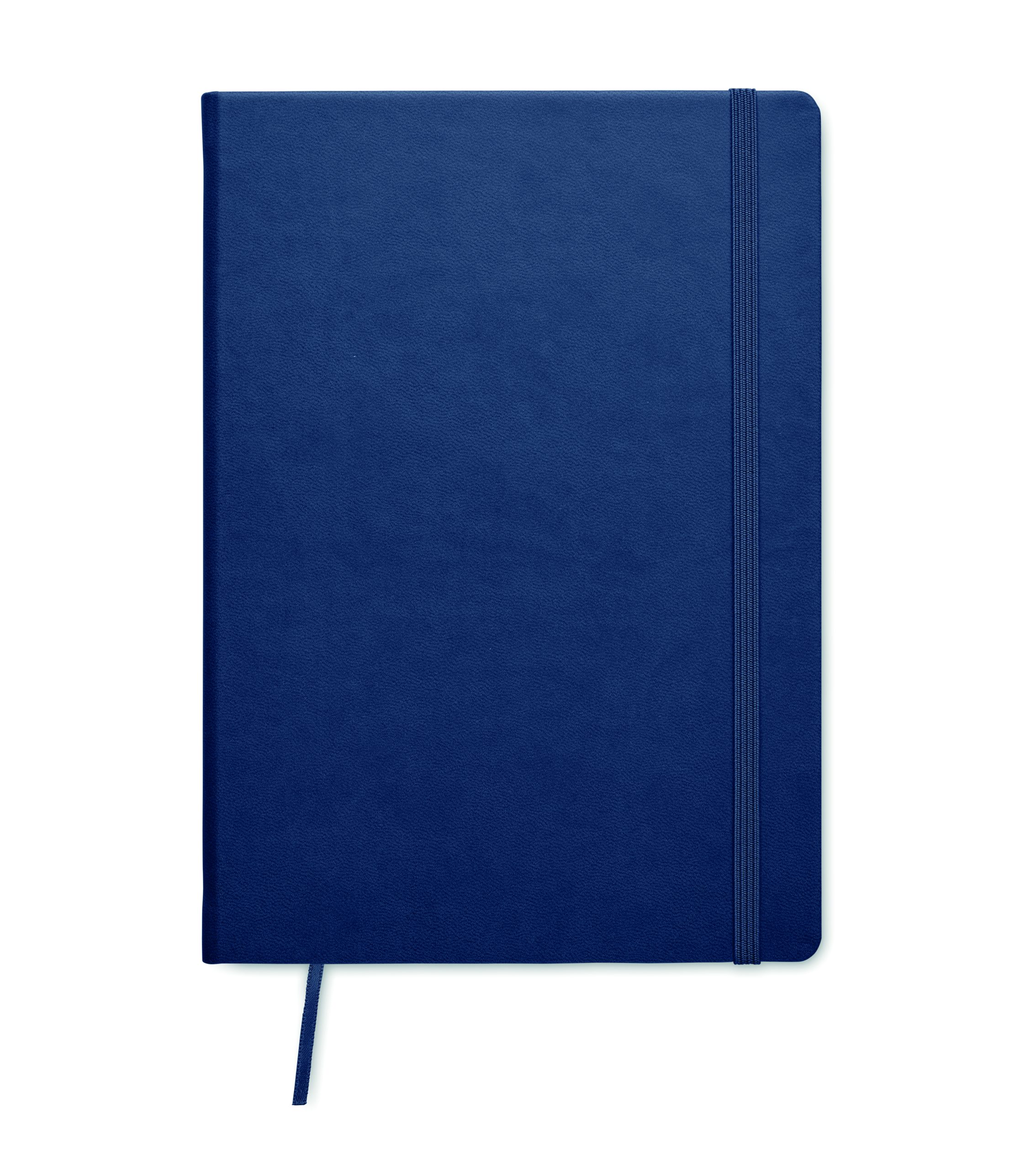 Notatnik A5 z twardą okładką z PU. 200 strony w linie (100 kartek) z papieru z recyklingu (80 g/m²). Dopasowana gumka zamykająca i tasiemka do zaznaczania stron. Wyprodukowano w UE.