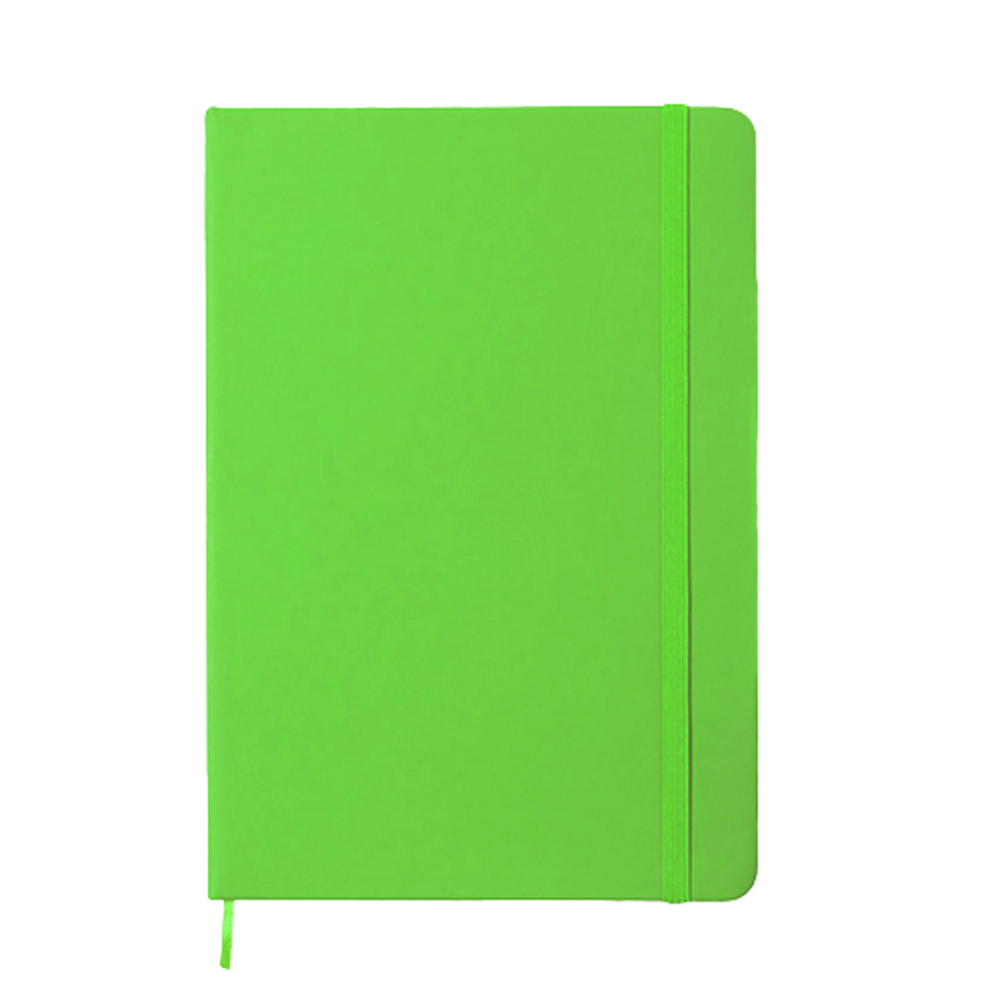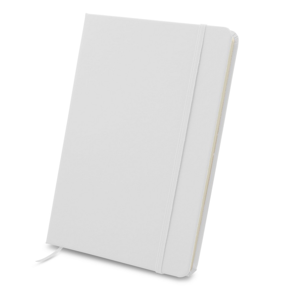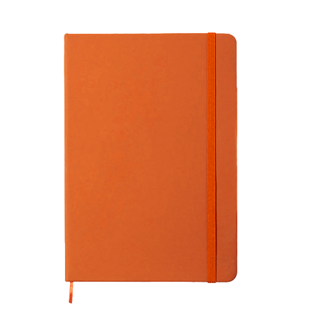 Notatnik w formacie A5, posiada 100 pustych kartek, twarda okładka, tasiemka zakładkowa umożliwia wygodne zaznaczanie ostatniej strony lub ważniejszych notatek, dodatkowe zamknięcie w postaci dopasowanej kolorystycznie elastycznej opaski, produkt wykonany z PU