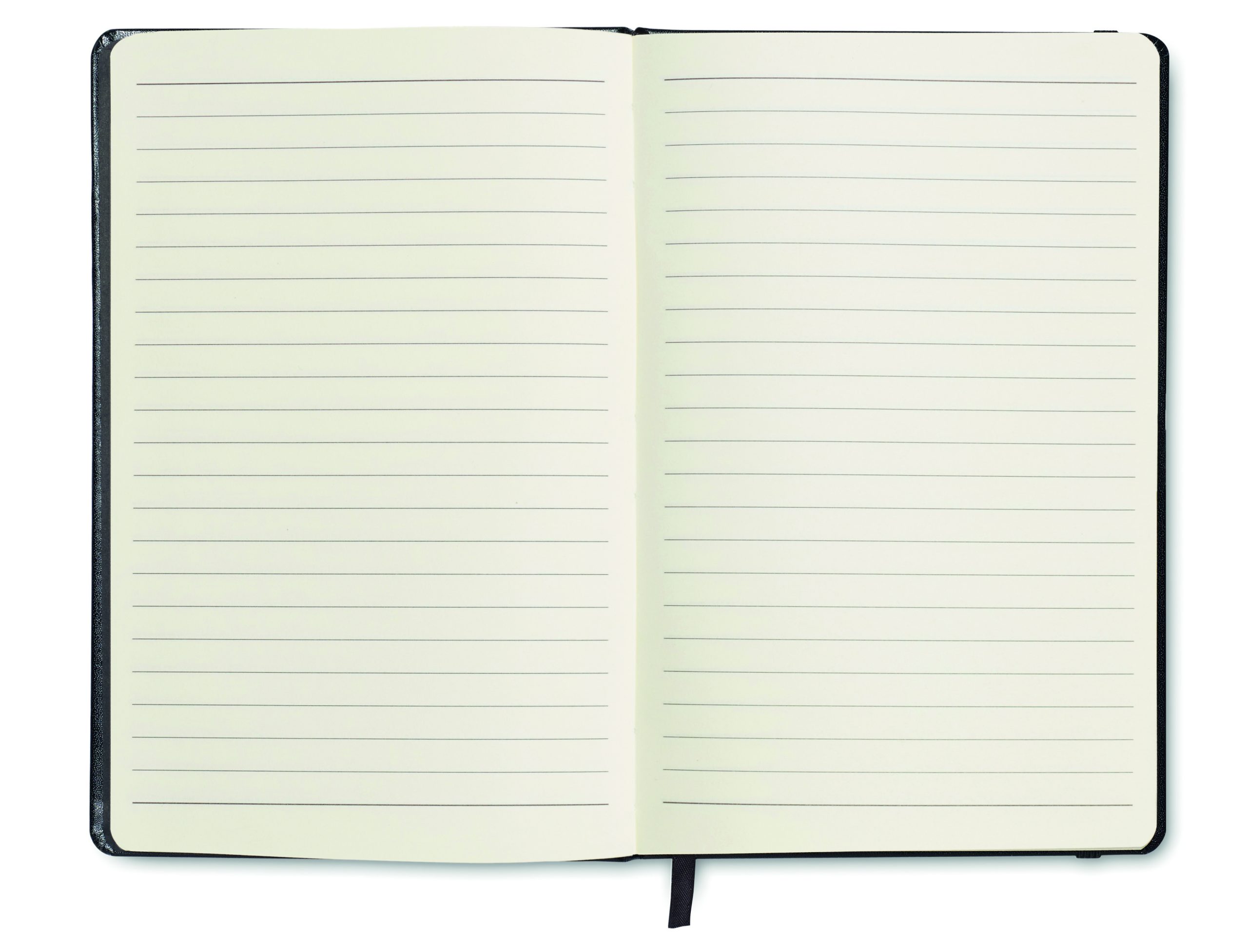 Notes A6 w twardej okładce z PU. 192 strony w linie (96 kartek). Dopasowany elastyczny pasek zamykający i tasiemka do oznaczania stron. FSC®-certified | FSC MIX CREDIT, P7.1, FSC-C213206