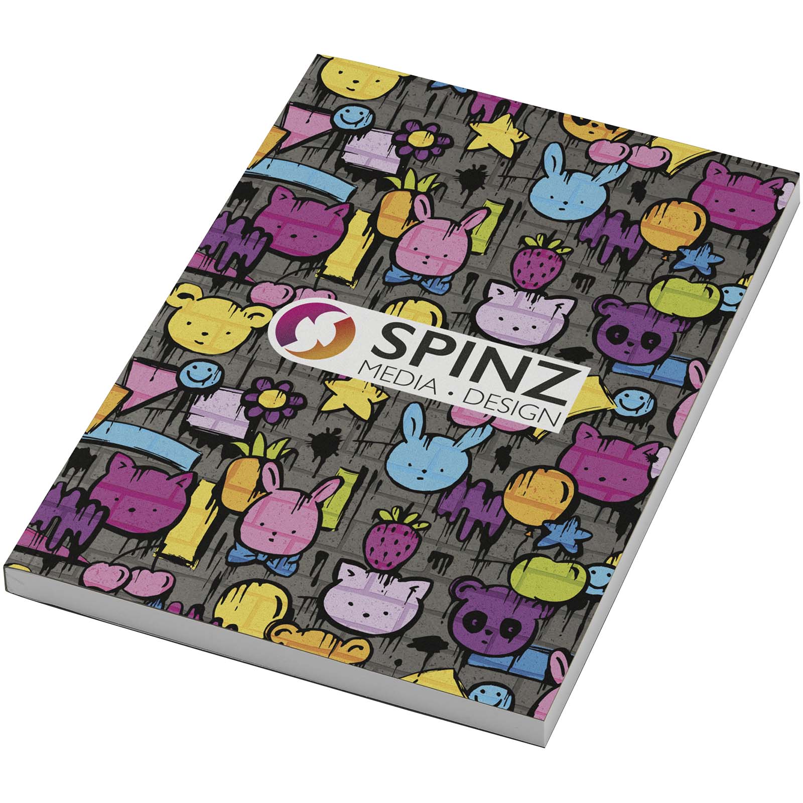 Notatnik Novella Austen A5 w miękkiej okładce to fantastyczny prezent papierniczy dzięki swojej wszechstronności. Notatnik zawiera 100 kartek białego papieru pochodzącego z recyklingu o gramaturze 80 g/m2. Arkusze są standardowo gładkie lub możesz dodać do nich wybrany wzór, taki jak linie, kwadraty lub własny projekt. Oferujemy również strony tip-in z błyszczącym wykończeniem z przodu notesu, idealne do przekazywania dodatkowych informacji. Okładka wykonana jest z kartonu o gramaturze 300 g/m2 w różnych kolorach. Aby uzyskać prawdziwy „efekt wow”, możesz również dodać pełnokolorowy nadruk na całej okładce (przód, tył, grzbiet). Wyprodukowano w Wielkiej Brytanii.