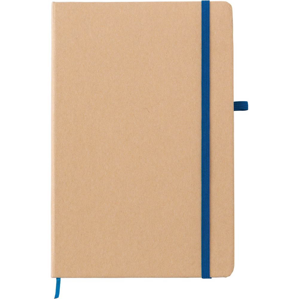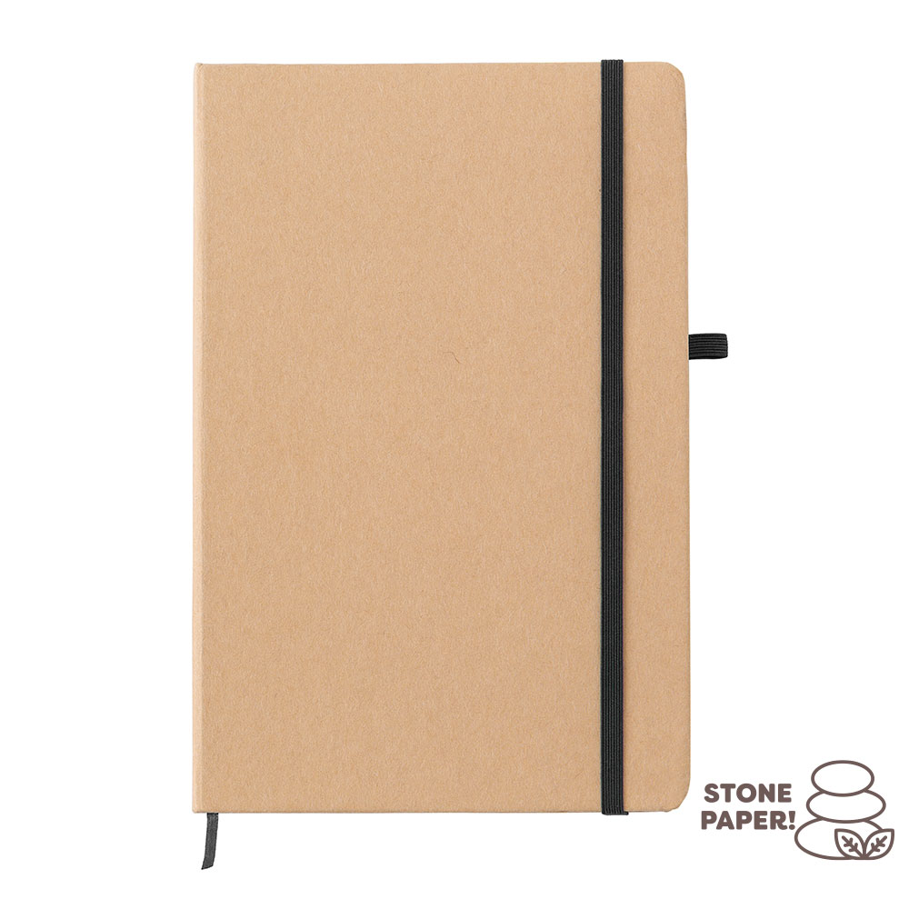 Notatnik (ok. A5, 80 kartek w linie z papieru kamiennego), okładka z papieru kraftowego, elastyczna opaska do zamykania, miejsce na przybory do pisania