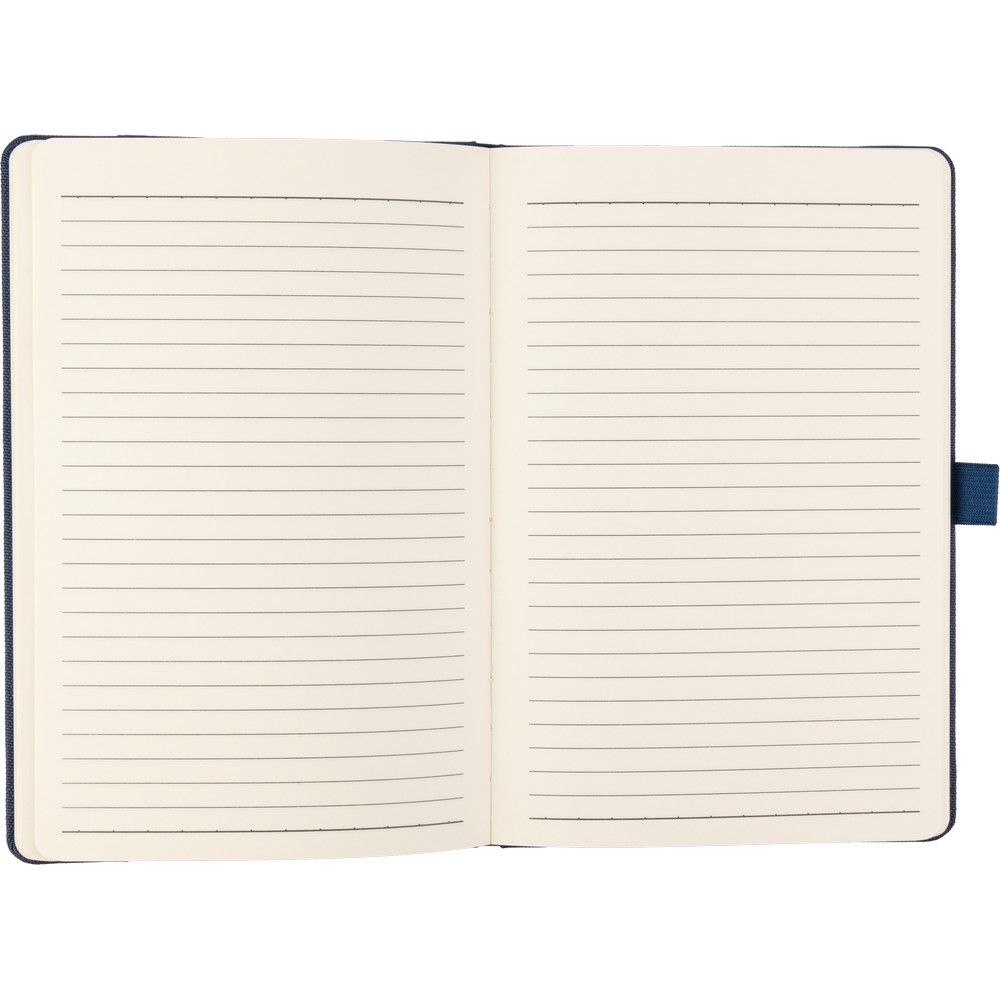 Notatnik w formacie ok. A5, posiada 100 stron w linie, zmieści się do szkolnego plecaka, pakowany pojedynczo w bibułkę, produkt wykonany z RPET