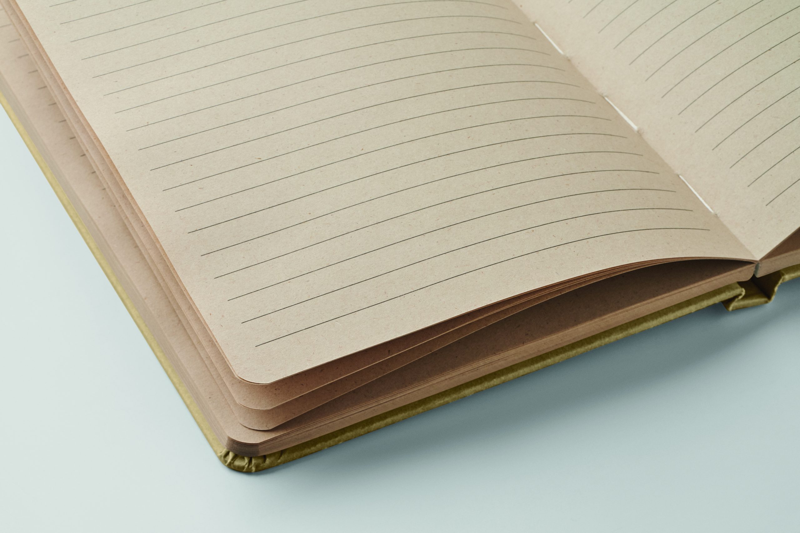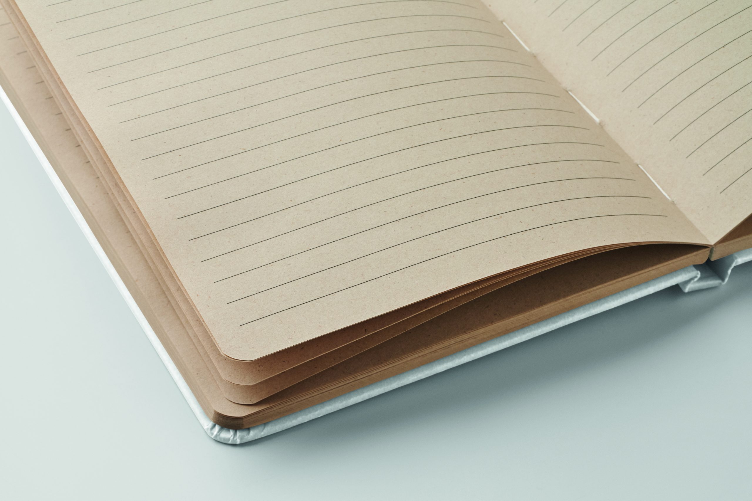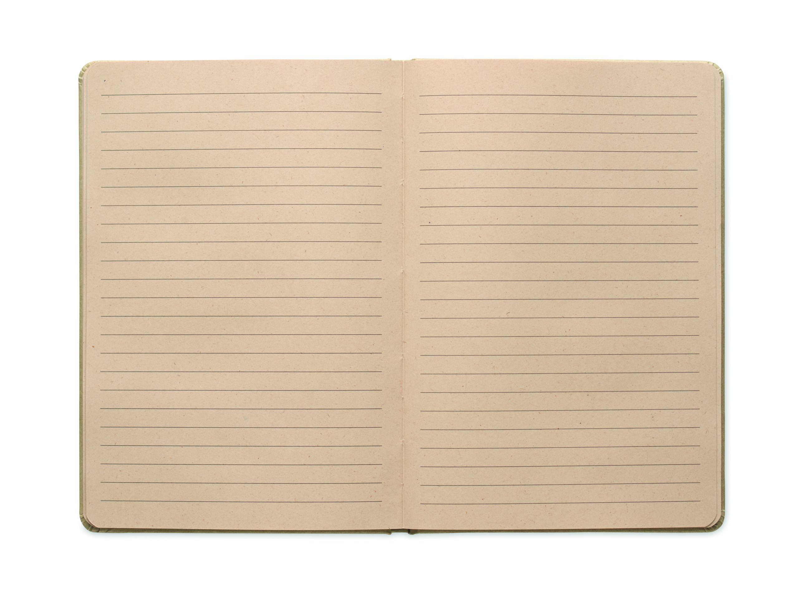 Notatnik A5 z twardą okładką i 160 stronami w linie (80 kartek) z trzciny cukrowej PLA (65% włókna trzciny cukrowej/35% papieru).