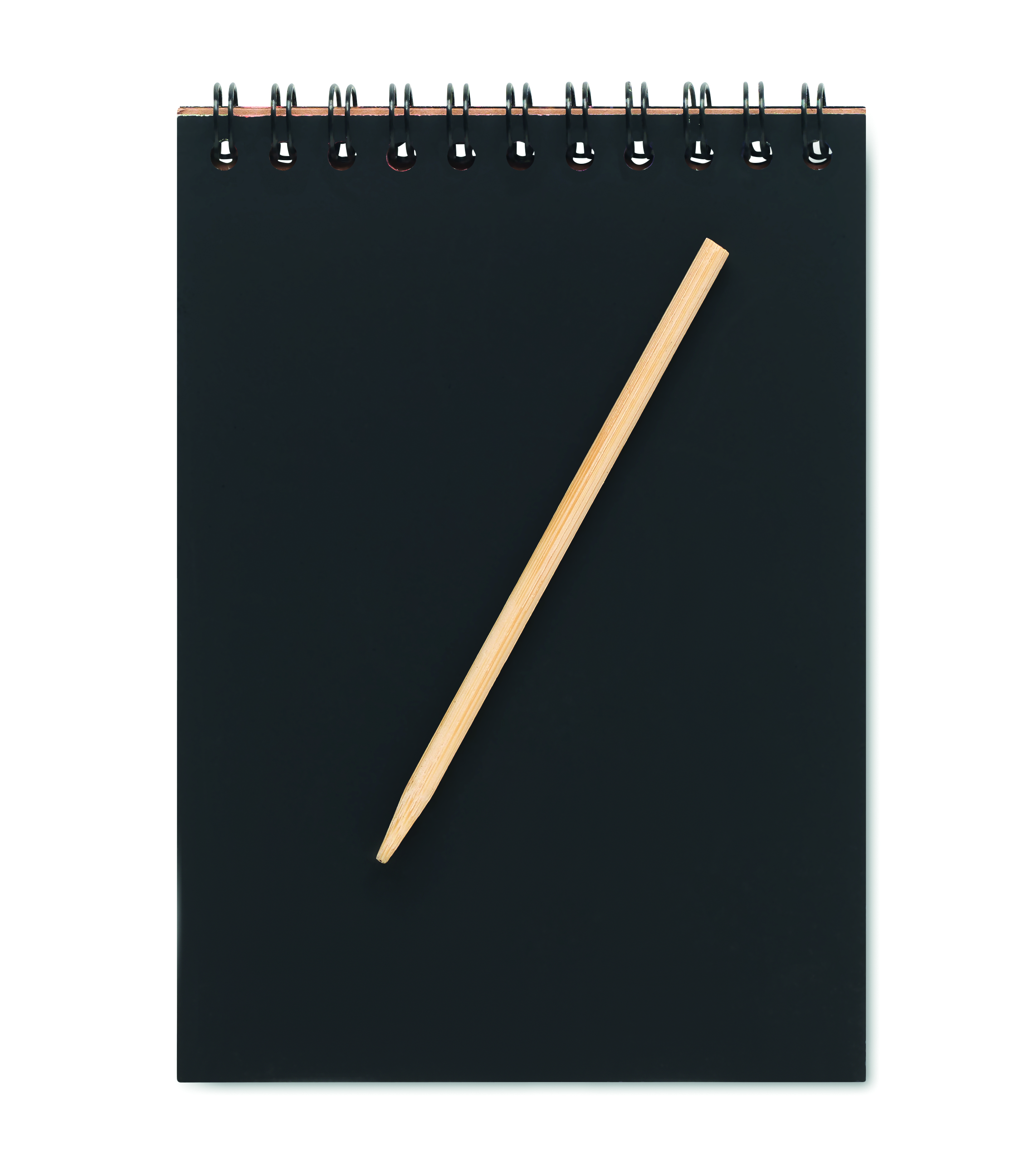 Notatnik do drapania z papieru kraft, zawierający 10 czarnych arkuszy papieru z recyklingu do drapania i drewniany długopis.