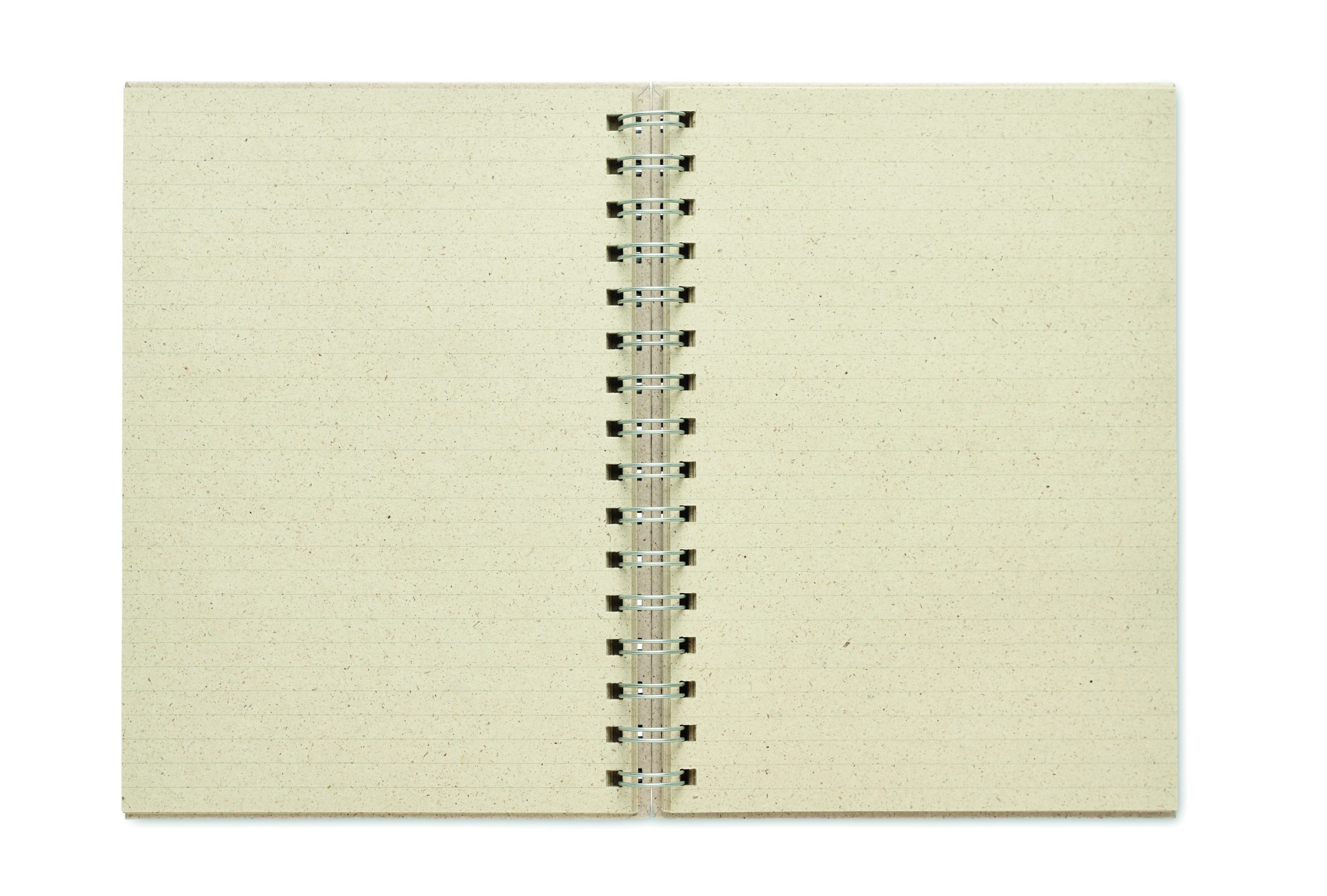 Notatnik A5 z 80 kartkami w kratkę, z kartonową okładką. Idealny na spotkania w biurze lub zajęcia w szkole. Papier z trawy to doskonały i świadomy upominek promocyjny. Proces produkcji jest zrównoważony od początku do końca i bardziej przyjazny dla środowiska niż tradycyjny papier drewnopochodny. Wyprodukowano w UE.