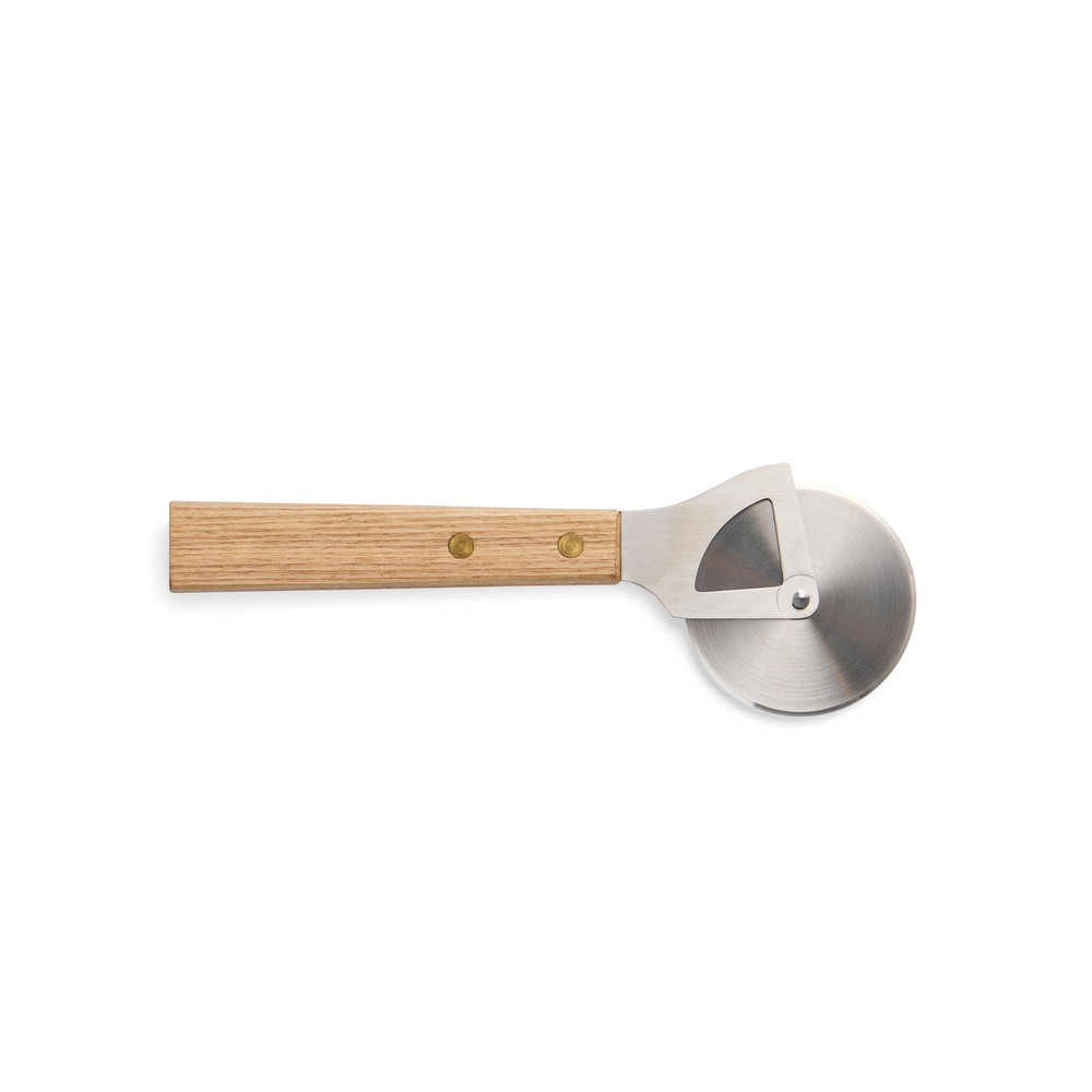 Nóż do pizzy, design inspirowany skandynawską prostotą, wykonany ze stali nierdzewnej oraz drewna jesionowego z certyfikatem FSC®