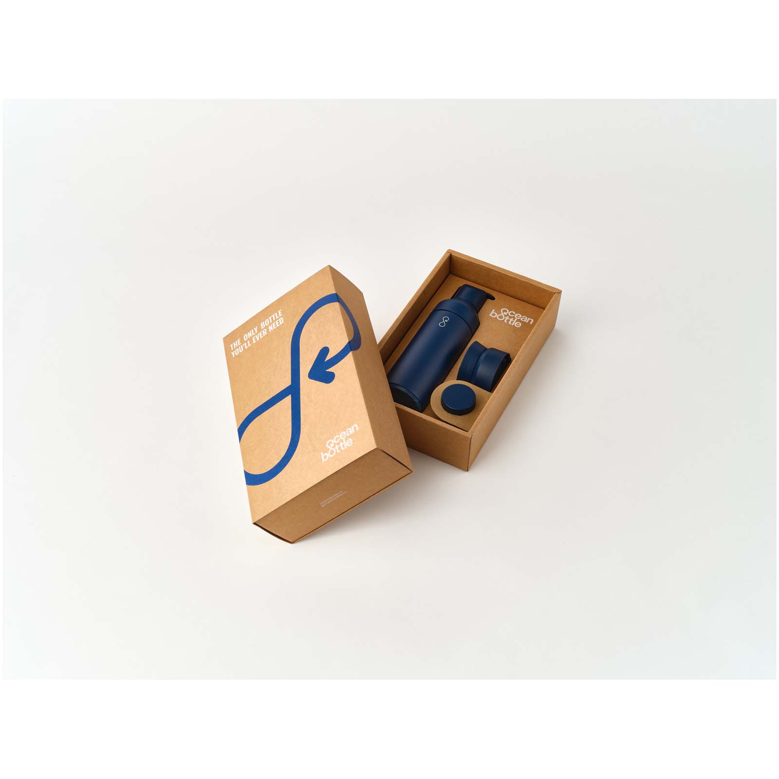 Zestaw upominkowy Ocean Bottle o pojemności 500 ml wyróżnia się pierwszym w swoim rodzaju modułowym systemem pokrywek, który umożliwia płynne przechodzenie z jednej aktywności do drugiej dzięki 3 wymiennym pokrywkom. Ten zestaw upominkowy składa się z Ocean Bottle o pojemności 500 ml z 3 pokrywkami: Oryginalna pokrywka (do codziennego picia bez przeciekania), pokrywka GO (z zamykaną zakrętką ze słomką) i pokrywka do parzenia napojów (do delektowania się gorącymi napojami w podróży). Ta modułowa butelka została zaprojektowana z funkcją podwójnego otwierania, co ułatwia napełnianie, czyszczenie i dodawanie lodu. Zestaw upominkowy został wykonany z materiałów pochodzących z recyklingu i można go myć w zmywarce. Zapakowany w pudełko upominkowe wykonane z kartonu z recyklingu.